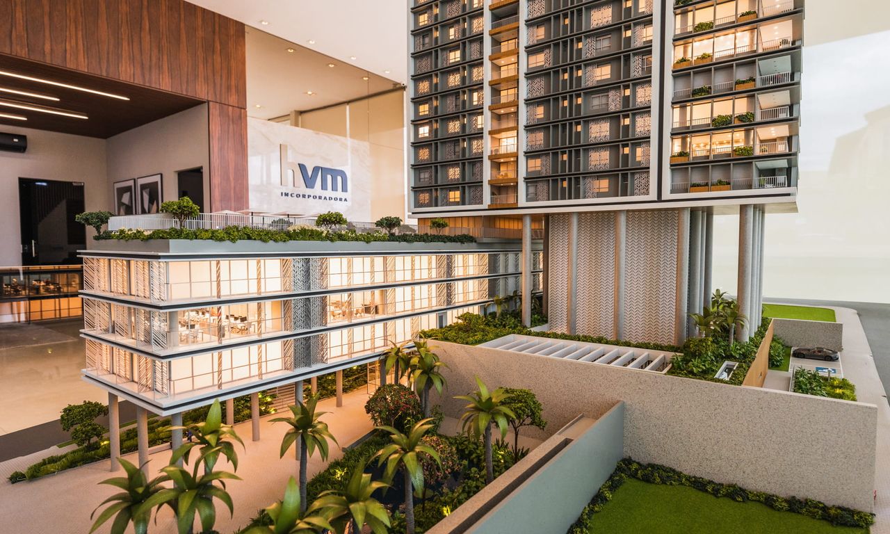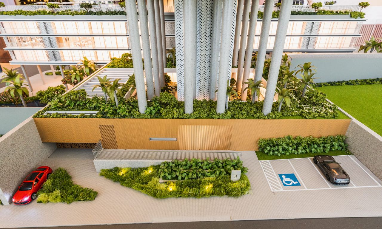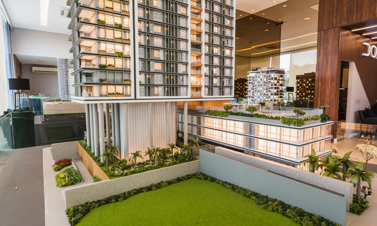 O Anthology é um projeto super rico, que mescla diferentes materiais com elementos arquitetônicos. Temos um jogo de volumes com pilotis que dão uma leveza parra esse gigante. Os brises, mais do que uma proteção contra o sol deixaram as fachadas ainda mais bonitas. A maquete conta com muito ambiente mobiliado e iluminado. Isso sem contar nas áreas externas de lazer que foram super humanizadas. No vídeo desse projeto conseguimos mostrar o que queríamos há bastante tempo, como é a instalação de uma maquete como essa. Confere na galeria.