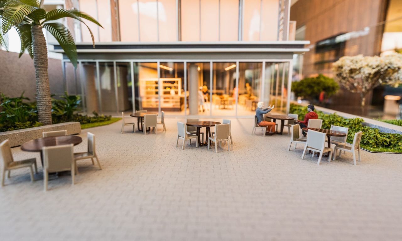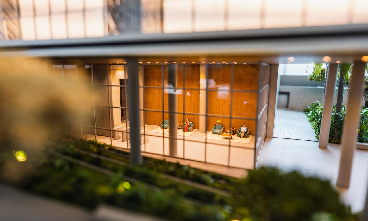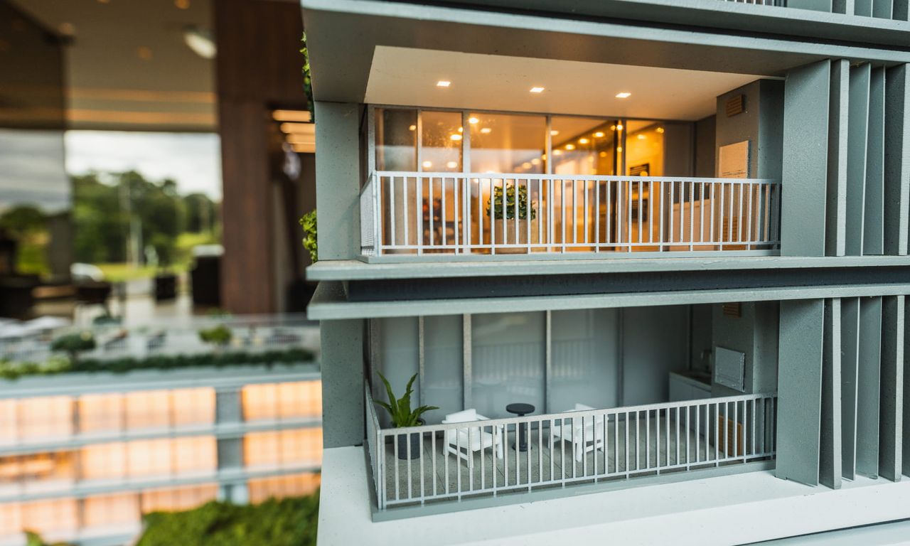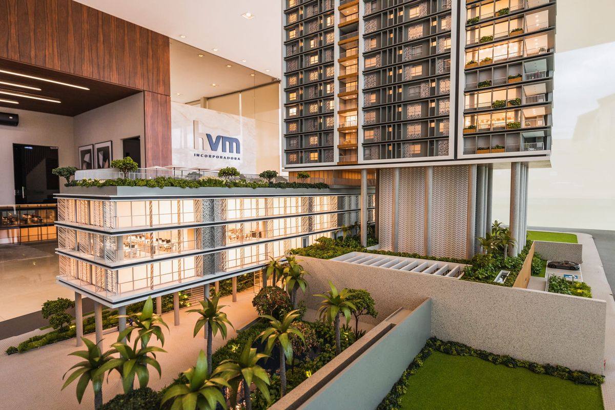 O Anthology é um projeto super rico, que mescla diferentes materiais com elementos arquitetônicos. Temos um jogo de volumes com pilotis que dão uma leveza parra esse gigante. Os brises, mais do que uma proteção contra o sol deixaram as fachadas ainda mais bonitas. A maquete conta com muito ambiente mobiliado e iluminado. Isso sem contar nas áreas externas de lazer que foram super humanizadas. No vídeo desse projeto conseguimos mostrar o que queríamos há bastante tempo, como é a instalação de uma maquete como essa. Confere na galeria.