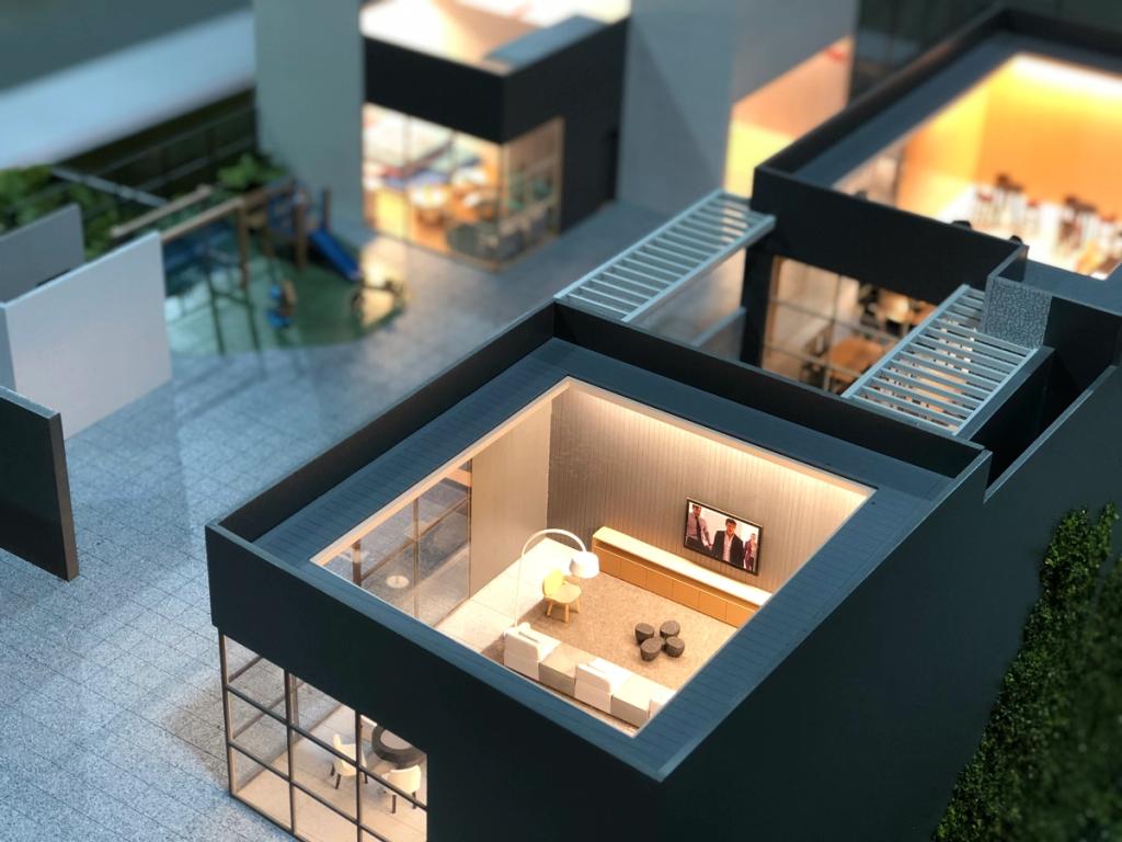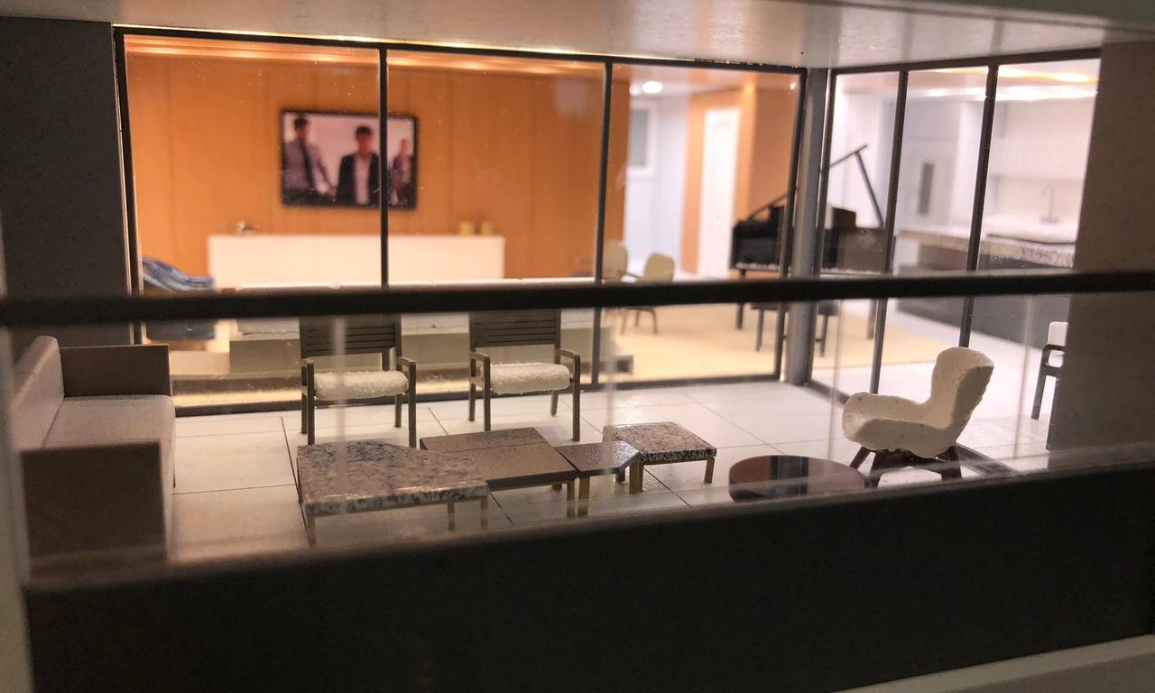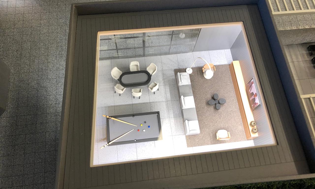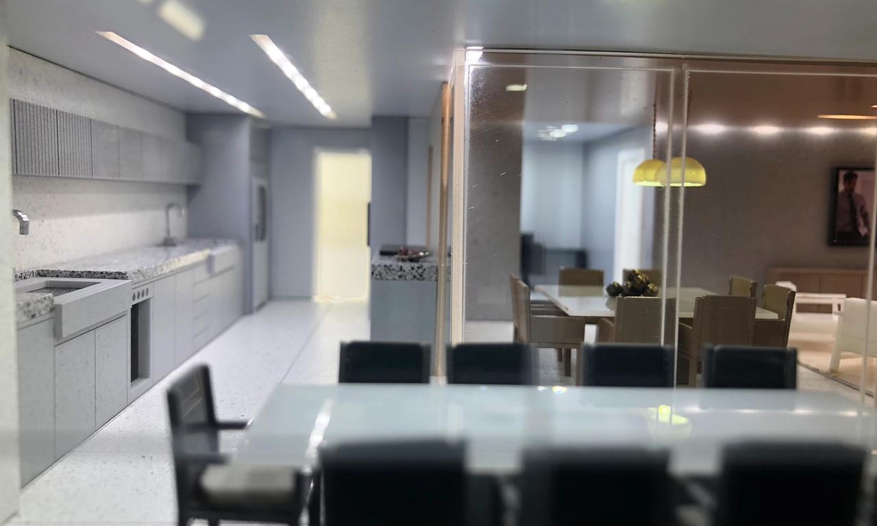 Mesmo com 3.50m de altura o Apogeo consegue ser uma maquete delicada e encantadora. Conseguimos impactar quem entra na sala com toda sua imponência e ao mesmo tempo encantar com o altíssimo grau de riqueza de detalhes por ser uma maquete muito mobiliada e iluminada. Em ambientes que não teriam uma boa visualização interna, abrimos rasgos na laje para não perdemos nenhum detalhes do projeto de interiores que ficou fantástico. Confira nas nossas fotos.