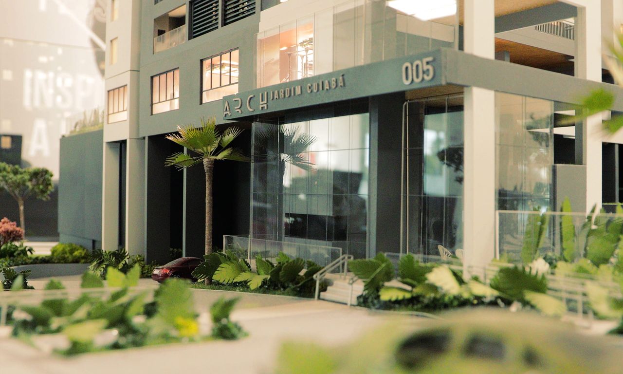 O Arch tem uma arquitetura mais contemporânea, com cores e verticalidade que transmitem uma sobriedade e elegância ao empreendimento. Conta com espaço de convívio quer foram detalhadamente representados a maquete além de diversos ambientes de apartamentos, o que só enriqueceu ainda mais a representação do projeto.