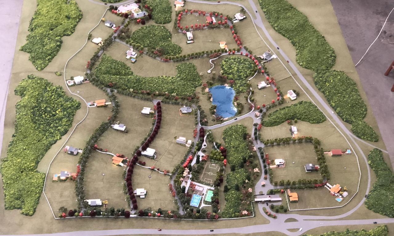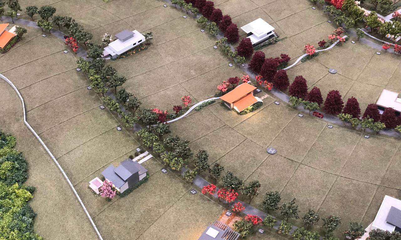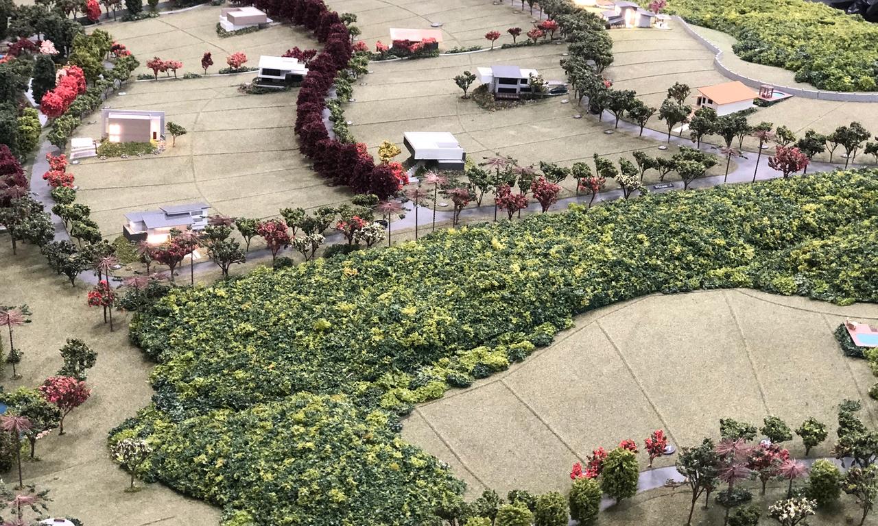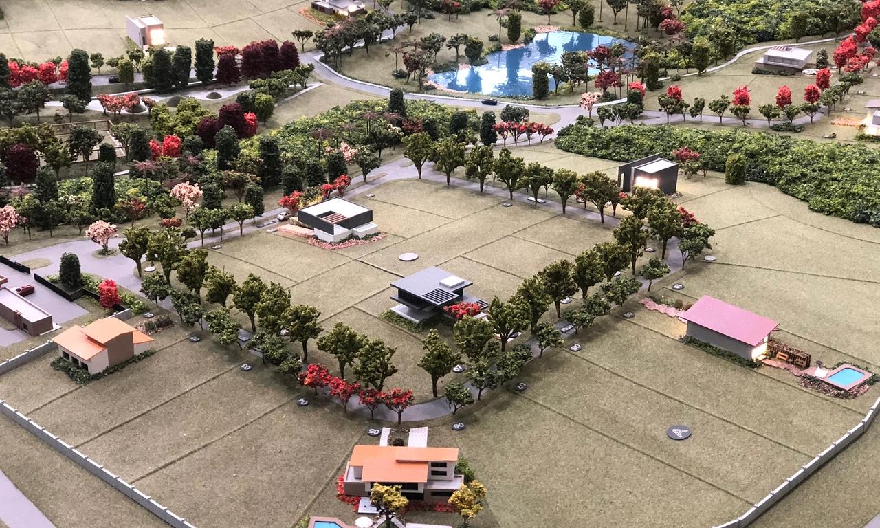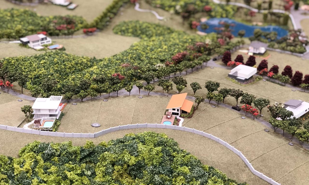Uma maquete grande, que teve como principal desafio a representação de sua topografia muito acentuada e complexa. Por se tratar de um empreendimento de alto padrão contou com diversas áreas condominiais: club house, lago, e um paisagismo absolutamente espetacular e minuciosamente representado com suas diferentes características em uma escala reduzida com ar serrano catarinense.