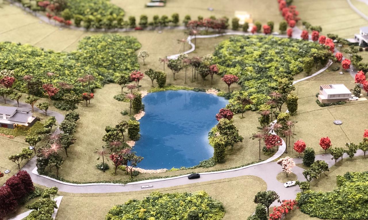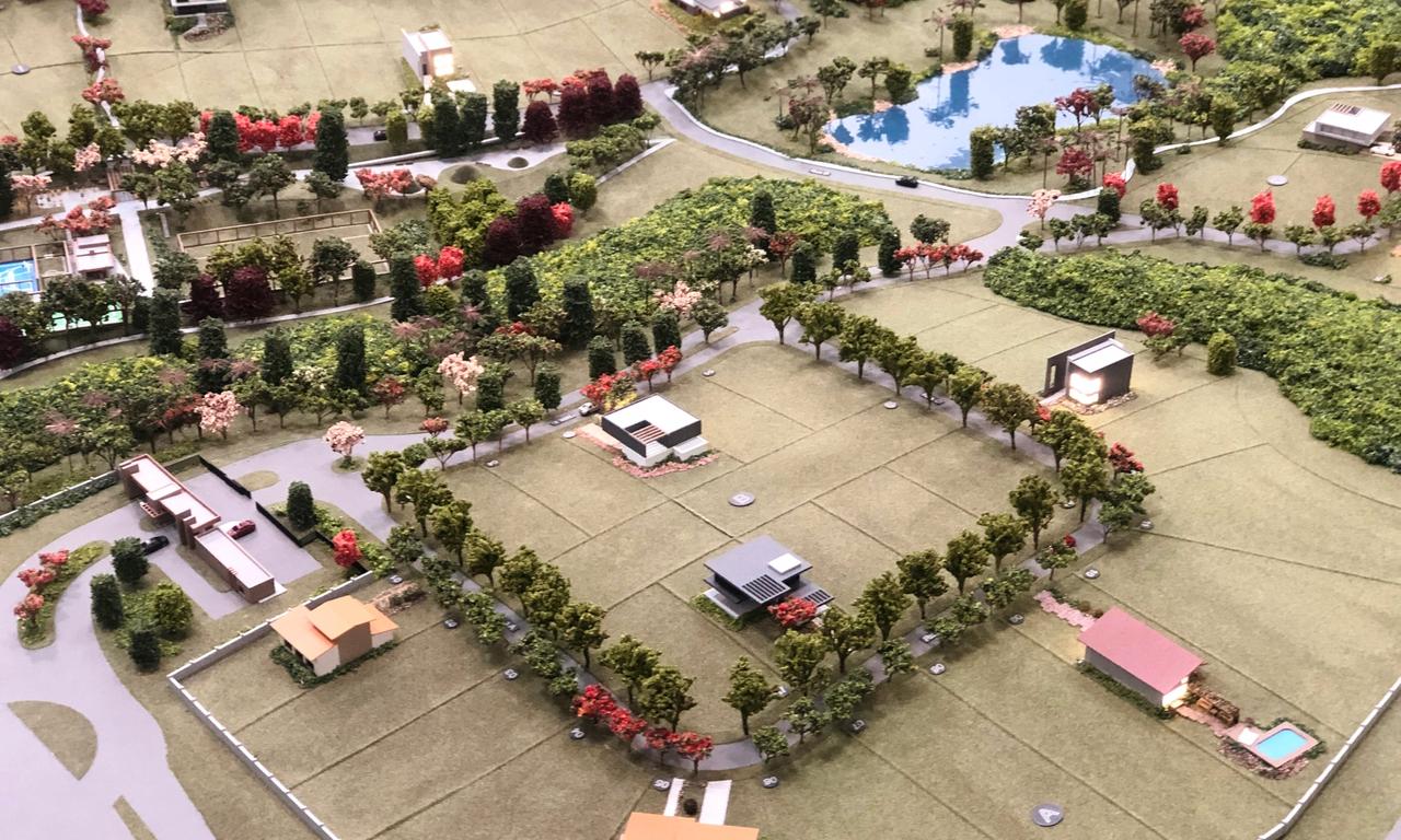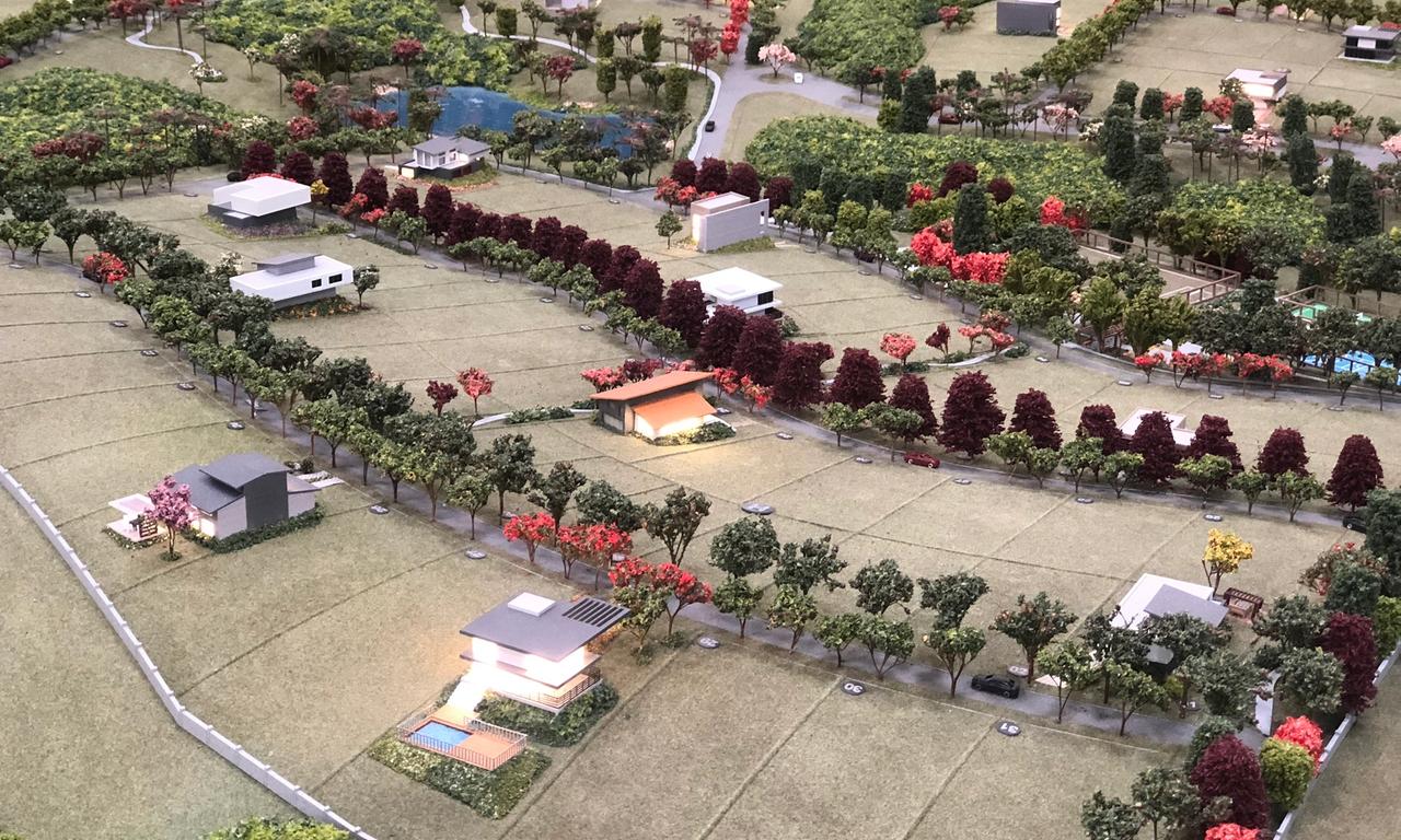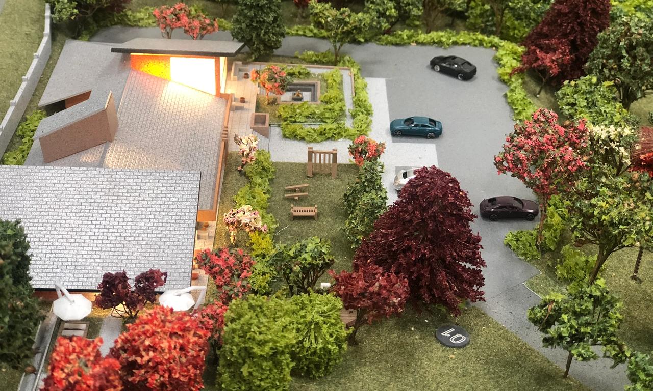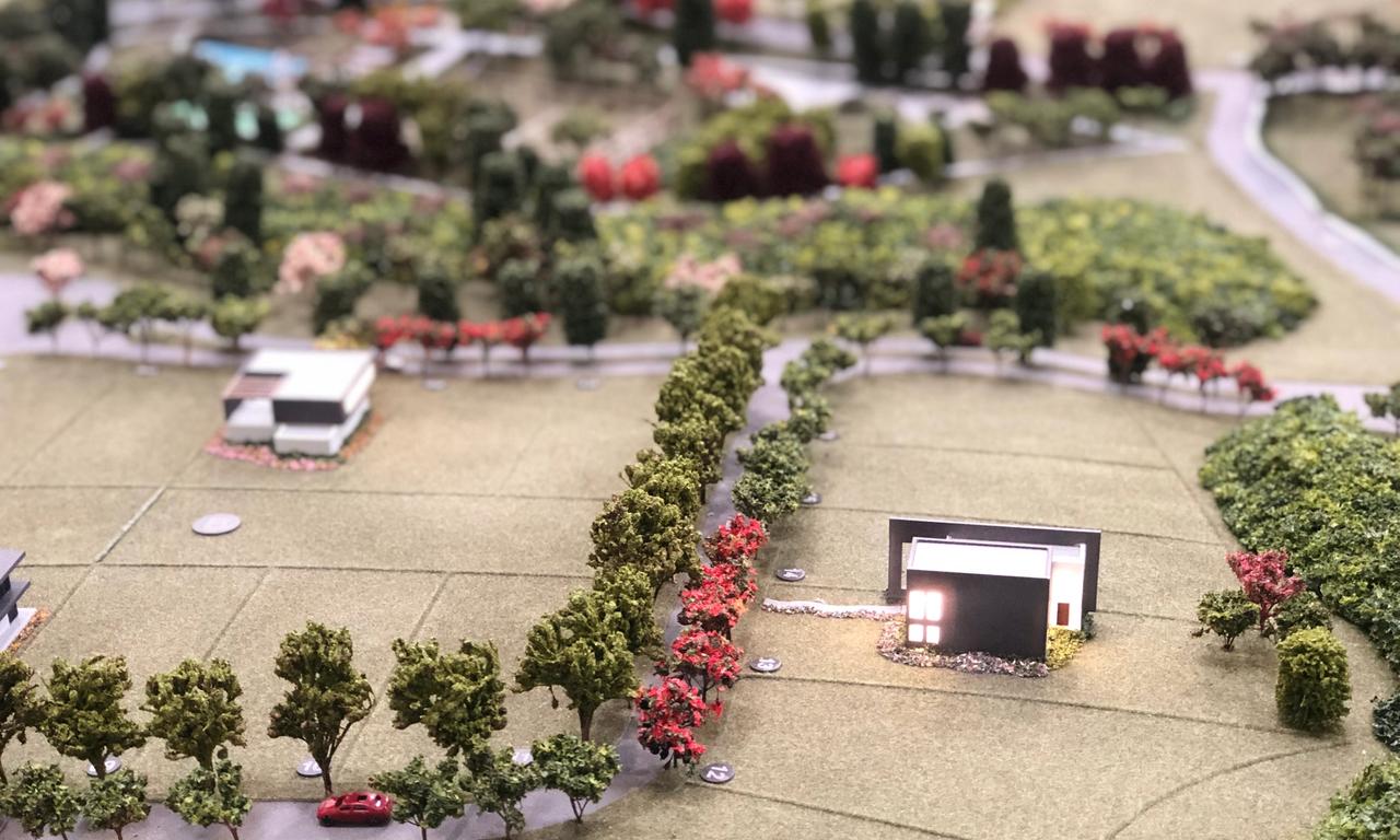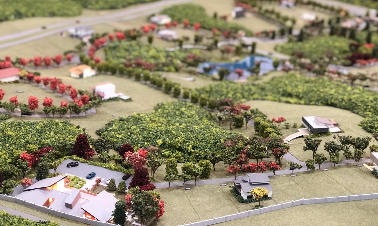 Uma maquete grande, que teve como principal desafio a representação de sua topografia muito acentuada e complexa. Por se tratar de um empreendimento de alto padrão contou com diversas áreas condominiais: club house, lago, e um paisagismo absolutamente espetacular e minuciosamente representado com suas diferentes características em uma escala reduzida com ar serrano catarinense.
