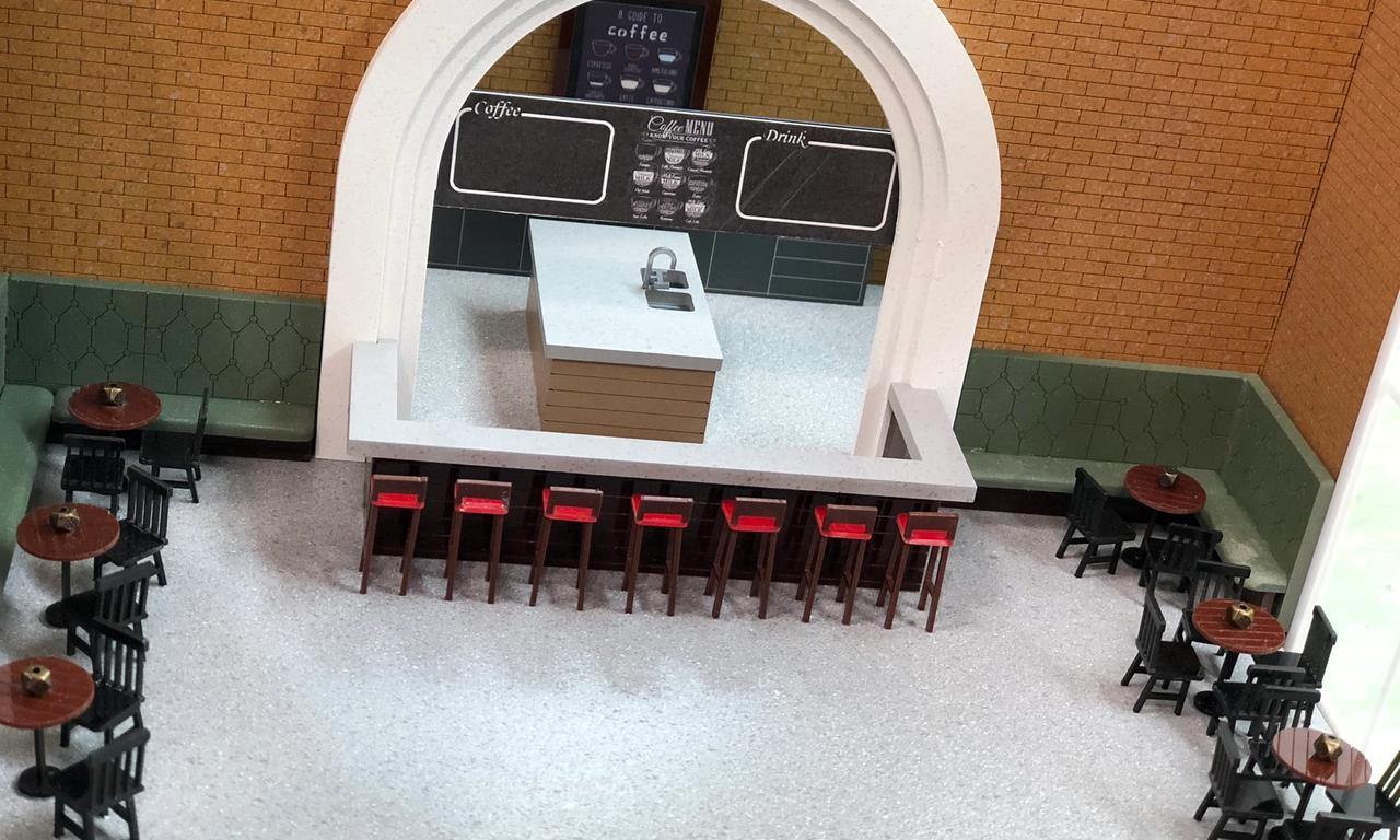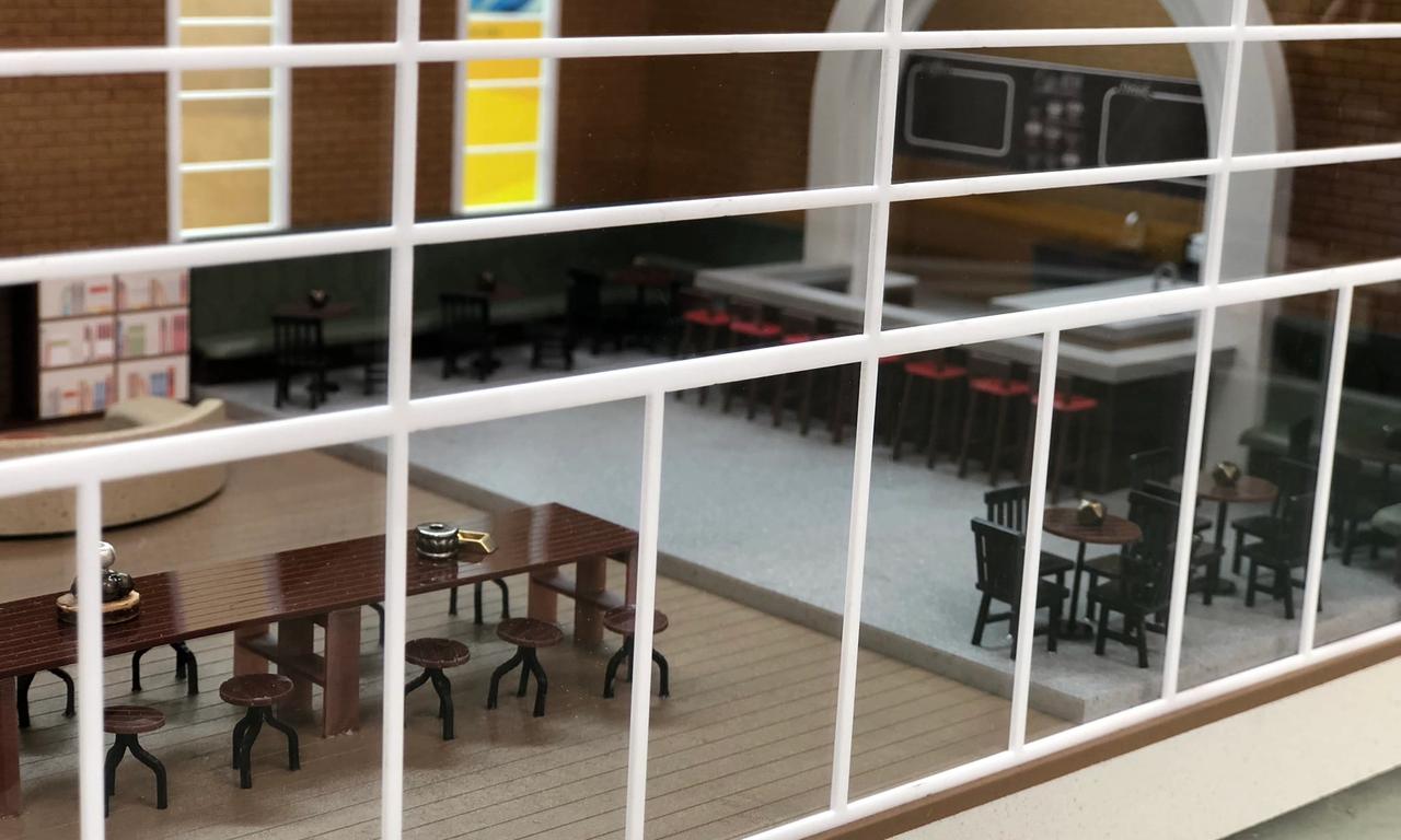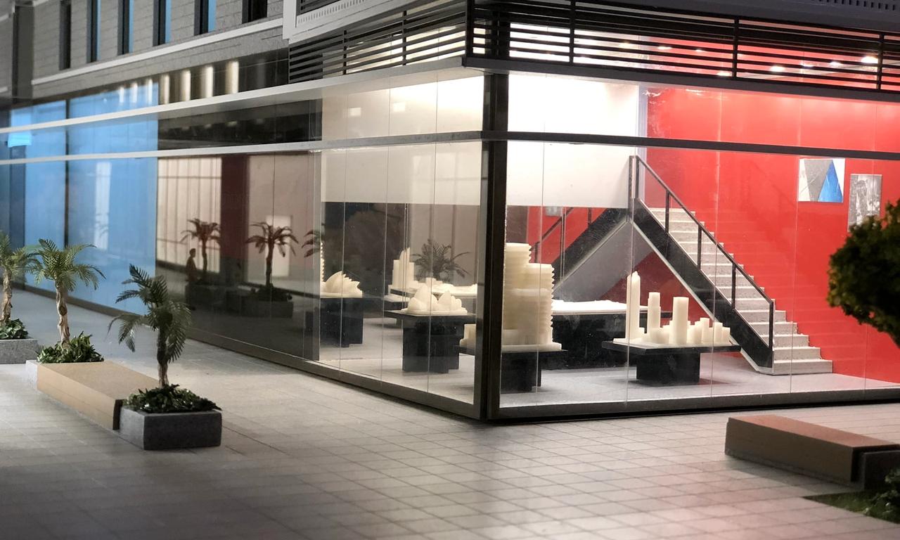 Outro desafio foi construir uma lateral da torre em acrílico cristal para evidenciar o ponto forte dela que era o átrio que ficava no interior da torre e em um primeiro momento não teria como aparecer na maquete.