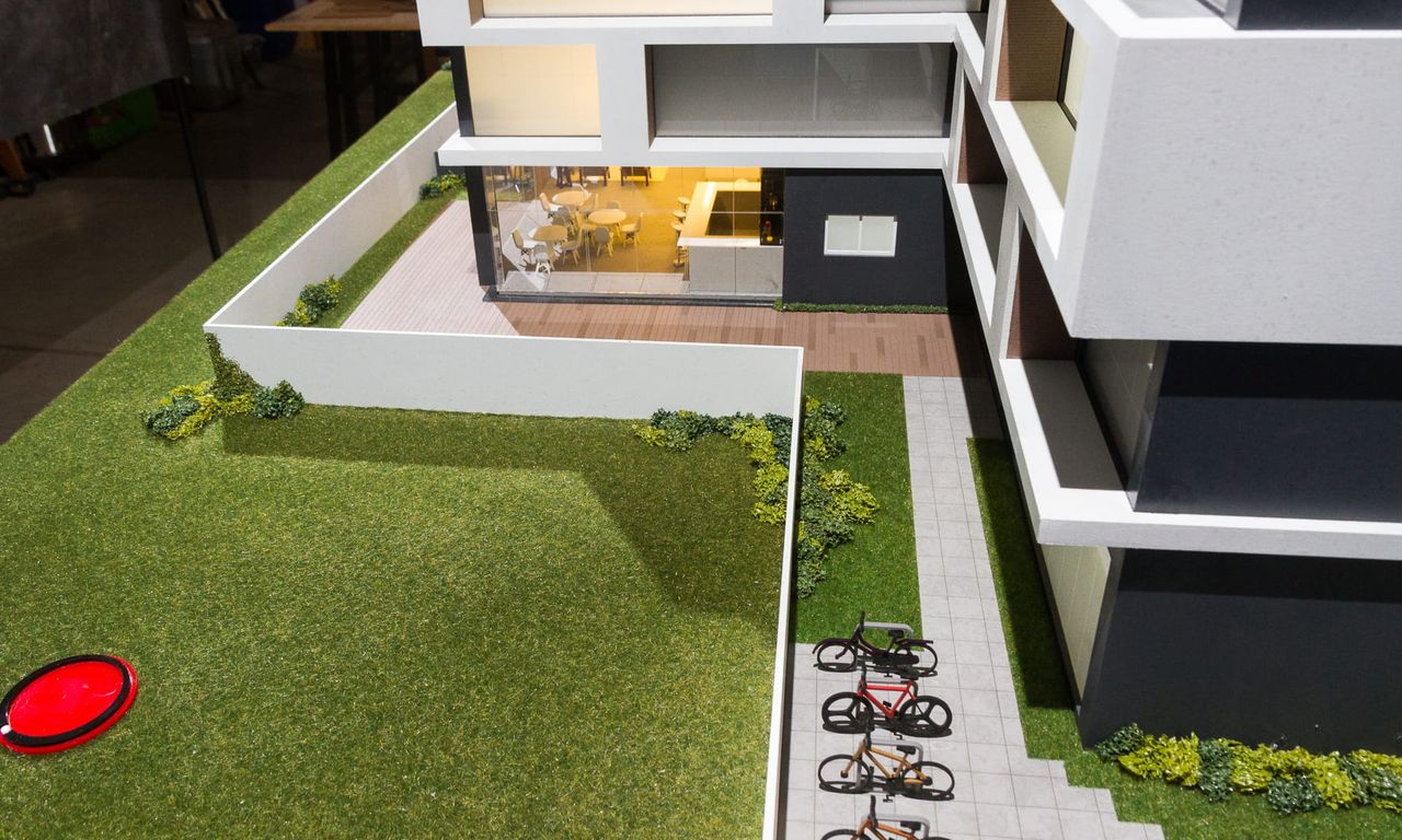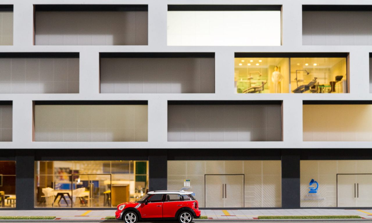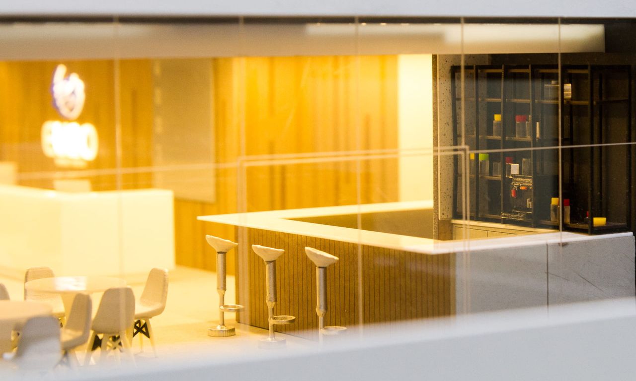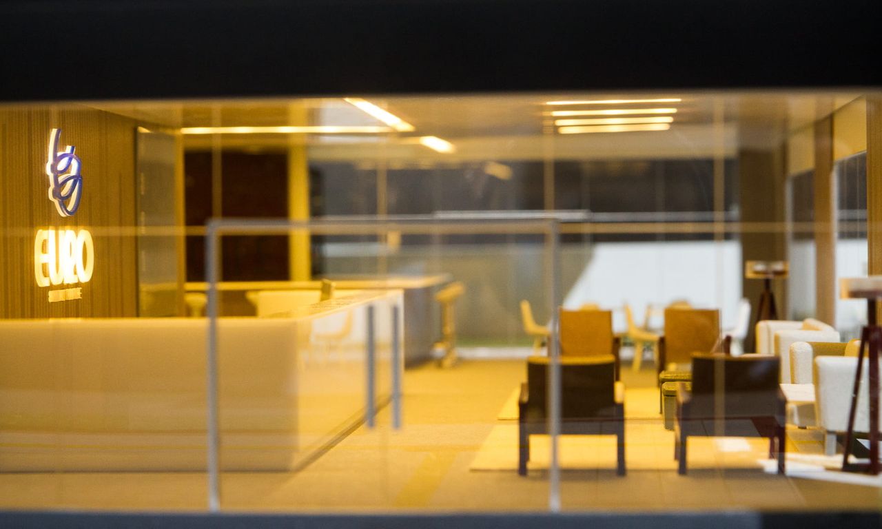 Esta maquete tem um conceito de arquitetura contemporânea monolítica, com uma plástica obtida através da composição entre cheios e vazios. Devido a sua escala generosa, proporcionou a inserção de escritórios bem detalhados no interior da torre, um hall de entrada com grande fidelidade e um painel iluminado que destaca o nome do conjunto.