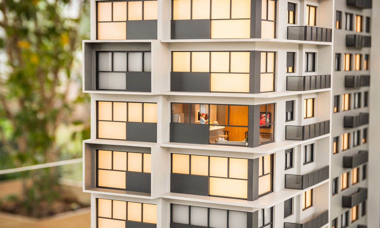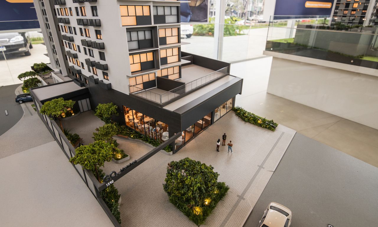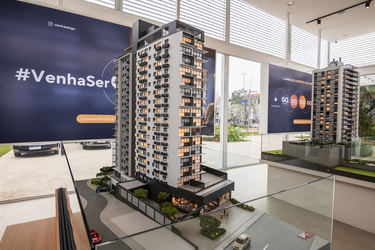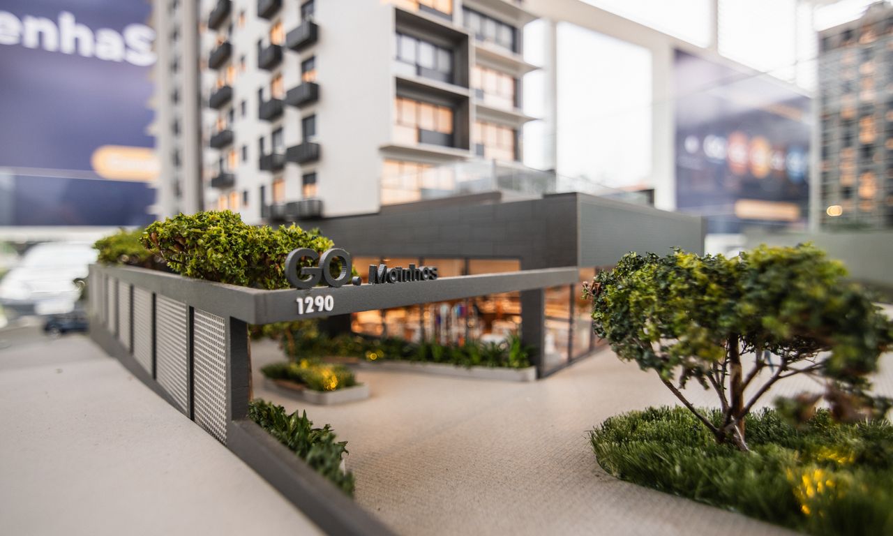 A maquete do Go Moinhos combina sobriedade e sofisticação.