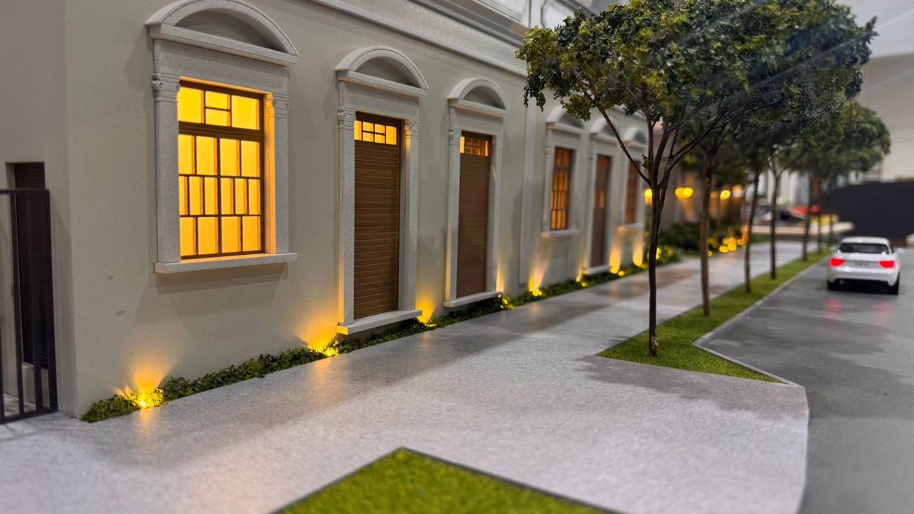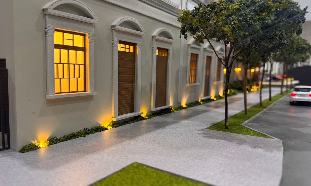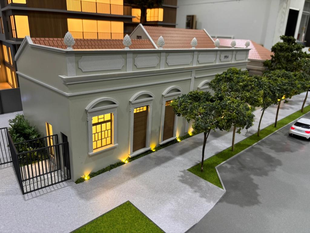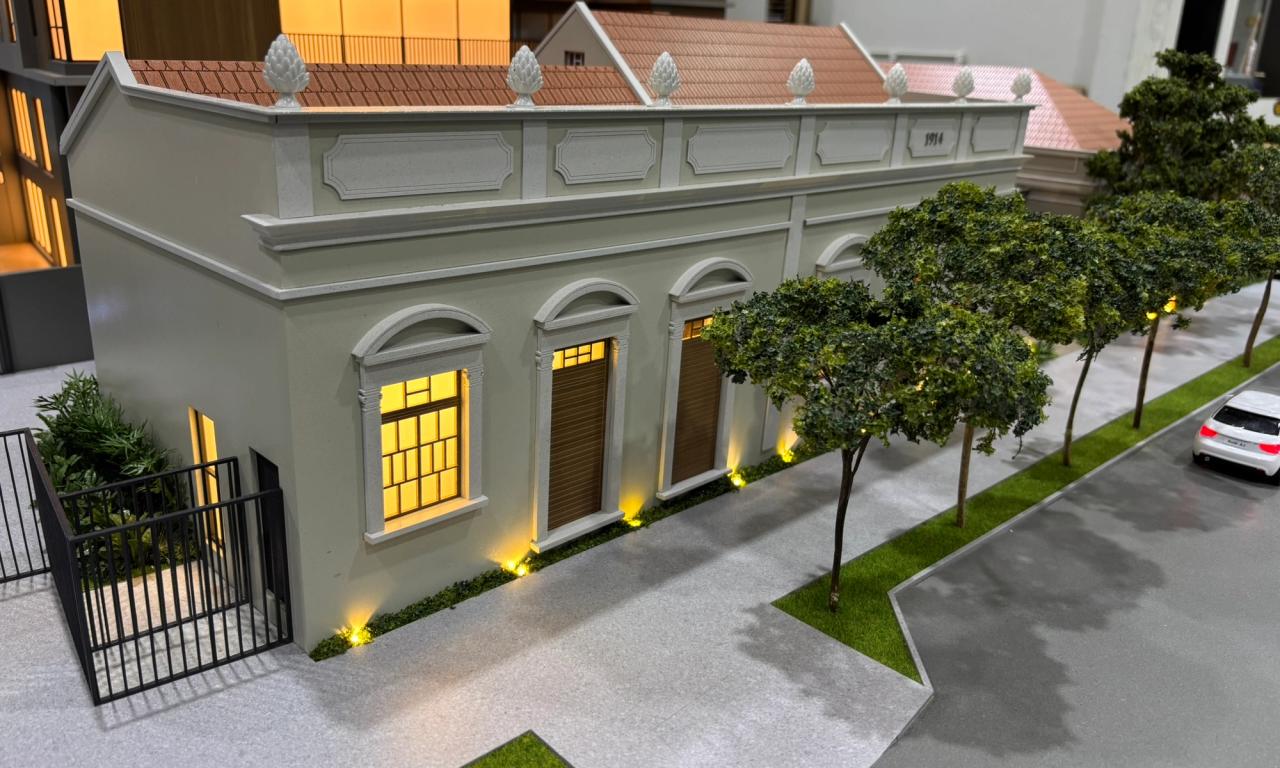 A maquete do Grand Lodge é um verdadeiro encontro entre o passado e o presente, traduzido em forma e detalhe. O projeto preserva duas casas tombadas de 1914, que se tornaram o grande destaque da maquete. Cada uma delas foi reproduzida com alto nível de precisão, utilizando impressão 3D e diferentes técnicas de montagem e materiais para representar fielmente seus elementos arquitetônicos originais.