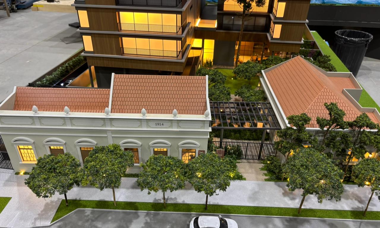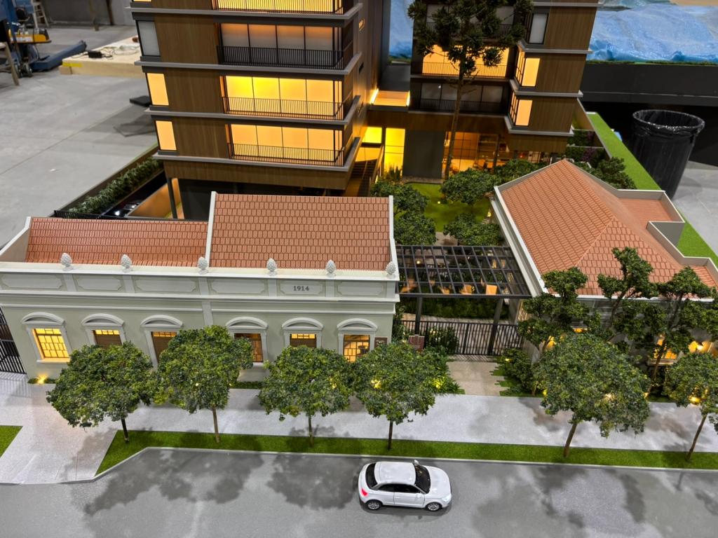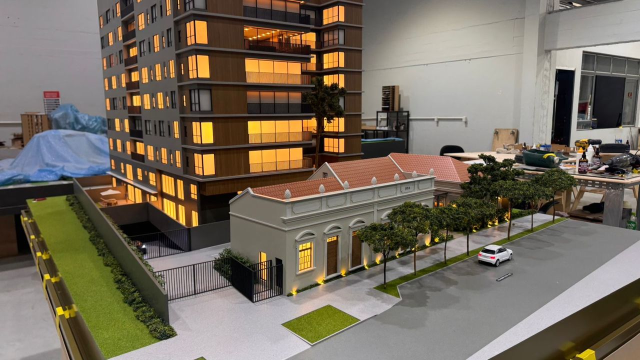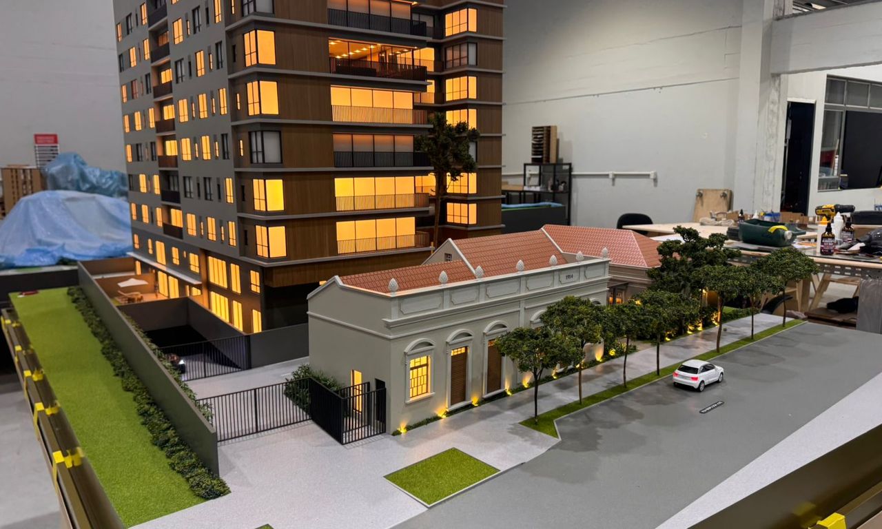 A maquete do Grand Lodge é um verdadeiro encontro entre o passado e o presente, traduzido em forma e detalhe. O projeto preserva duas casas tombadas de 1914, que se tornaram o grande destaque da maquete. Cada uma delas foi reproduzida com alto nível de precisão, utilizando impressão 3D e diferentes técnicas de montagem e materiais para representar fielmente seus elementos arquitetônicos originais.