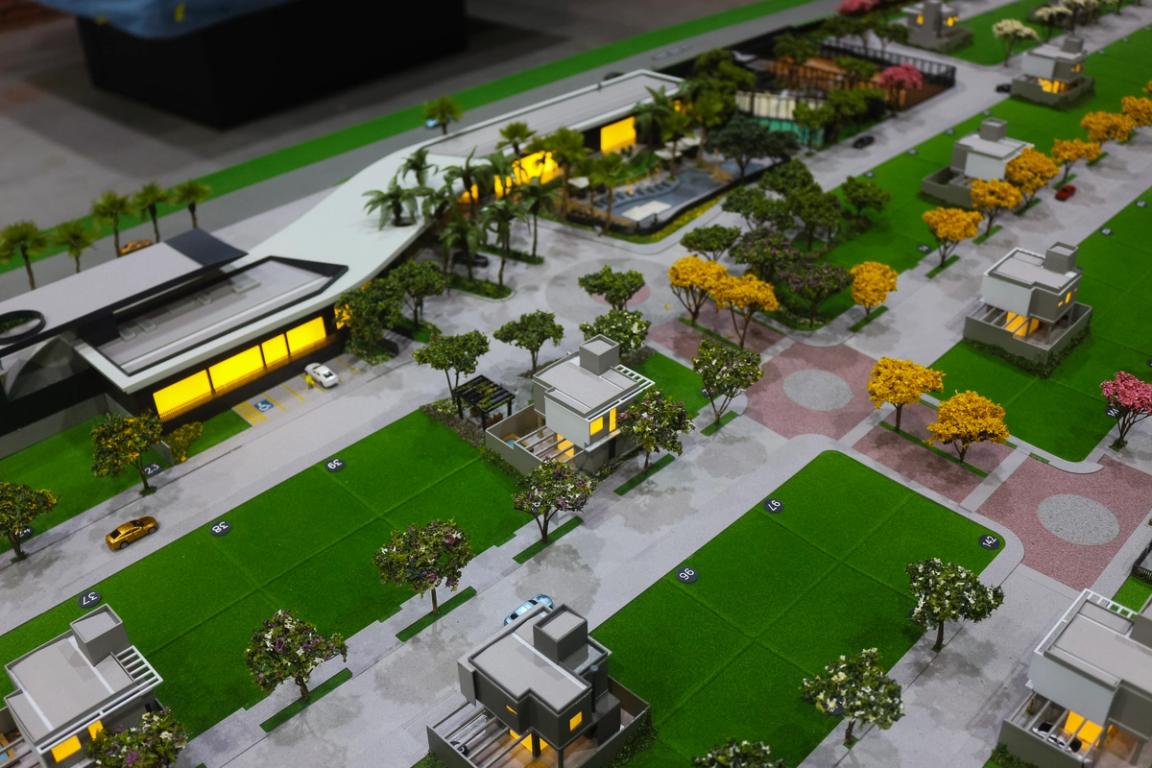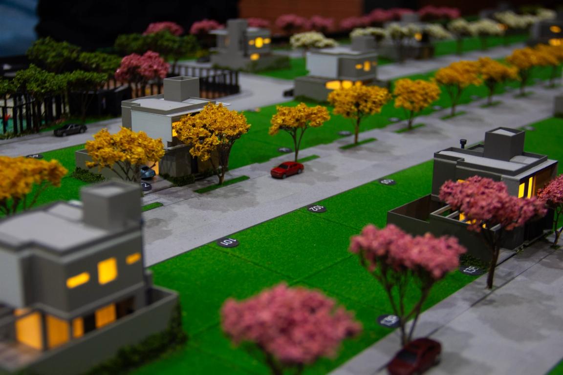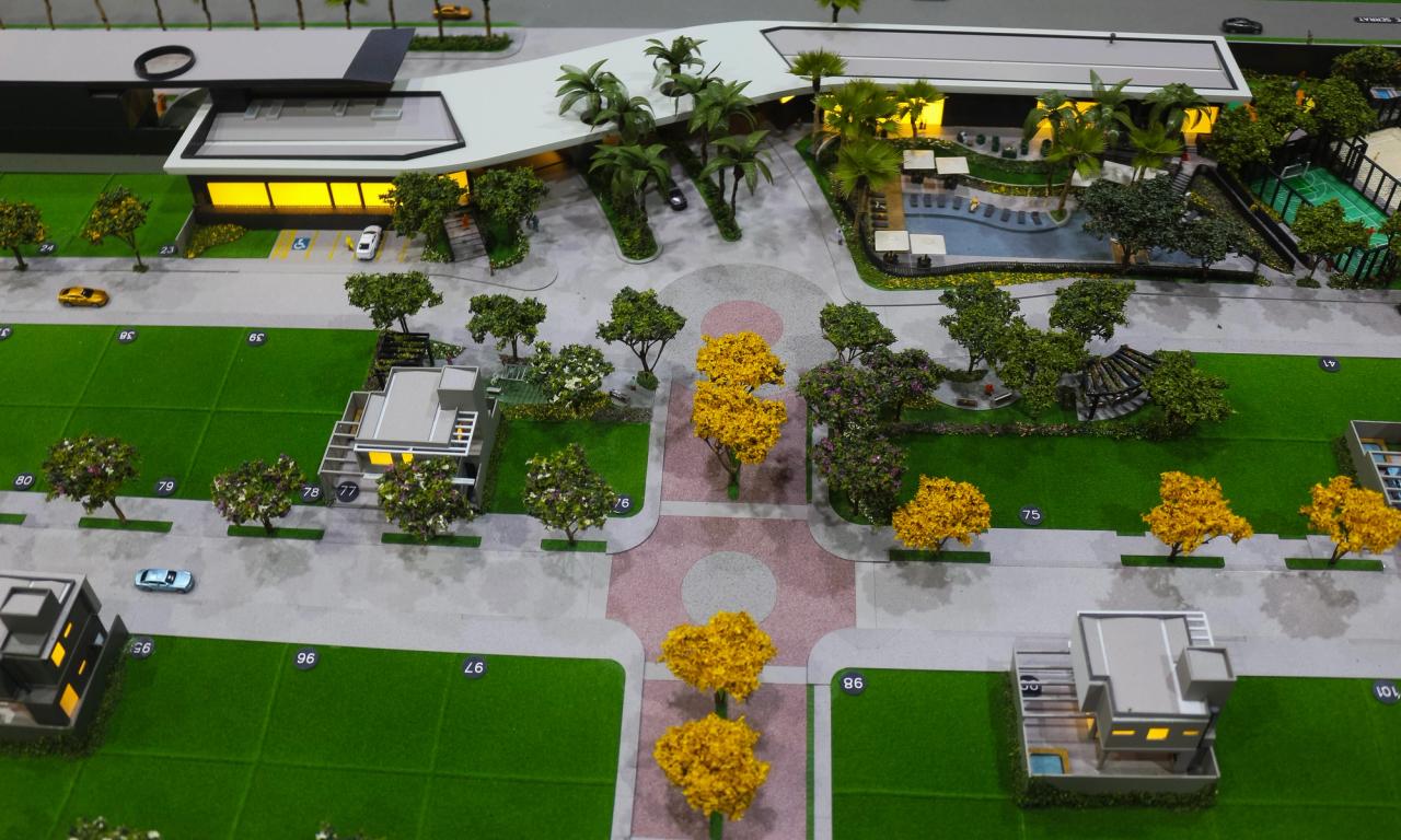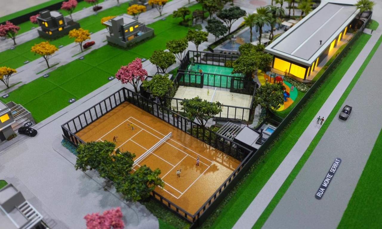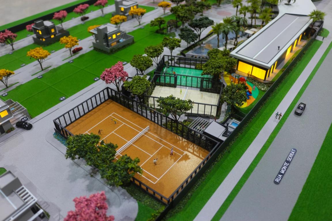 O Jooy Residences é um condomínio de lotes que se destaca pela proposta vibrante e pela riqueza de detalhes. A maquete apresenta uma paisagem marcada por árvores coloridas que trazem vida e movimento ao projeto.