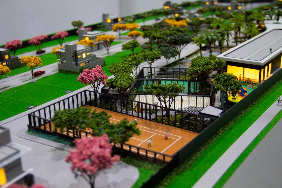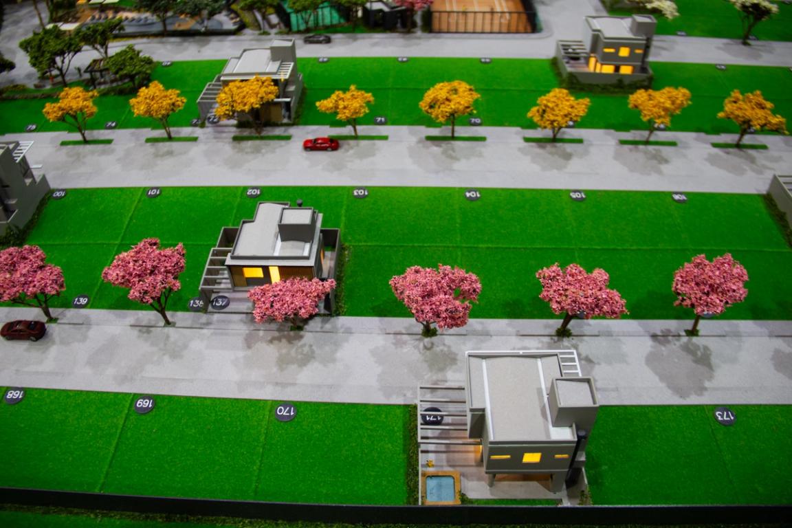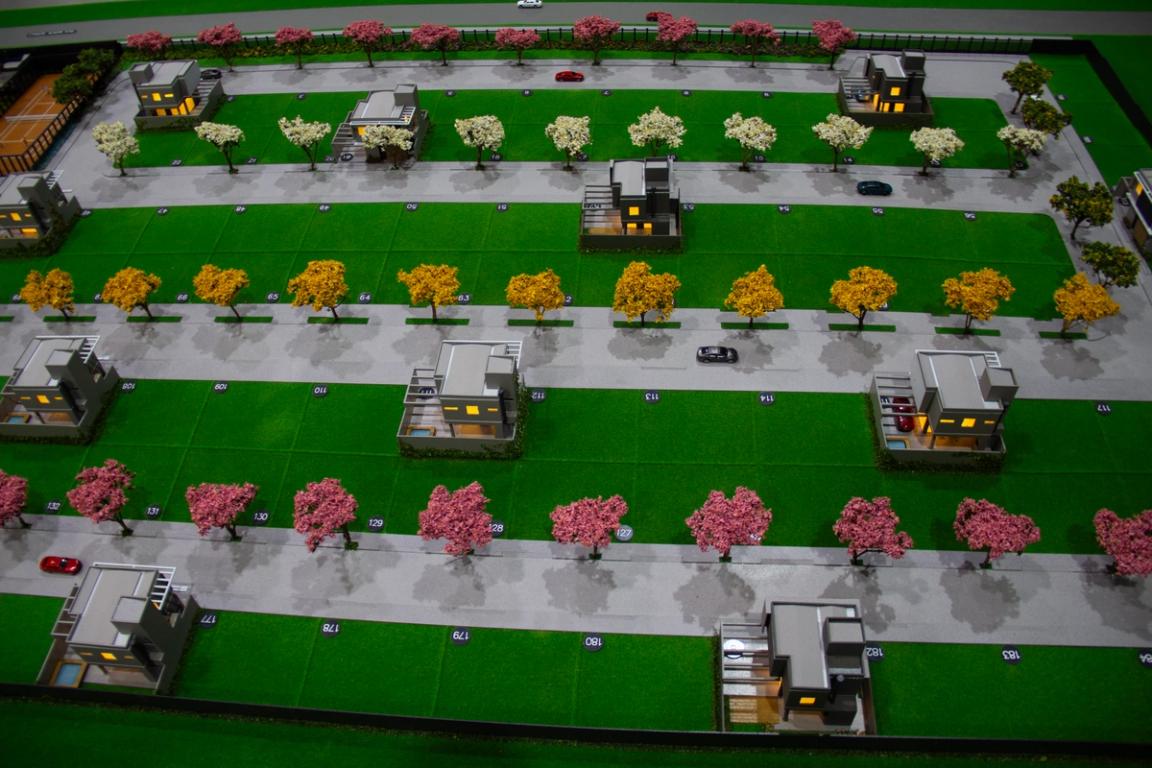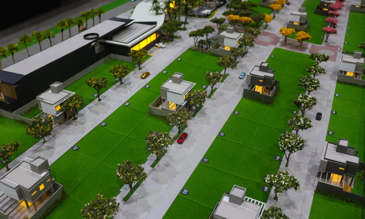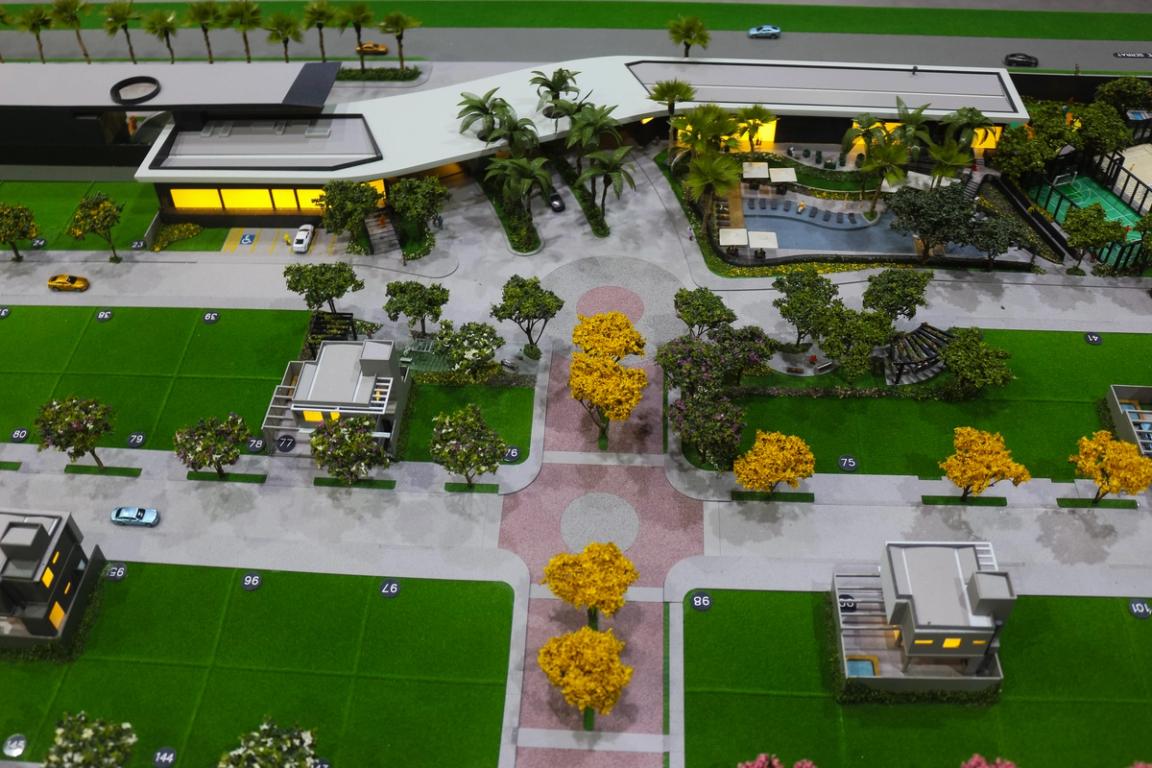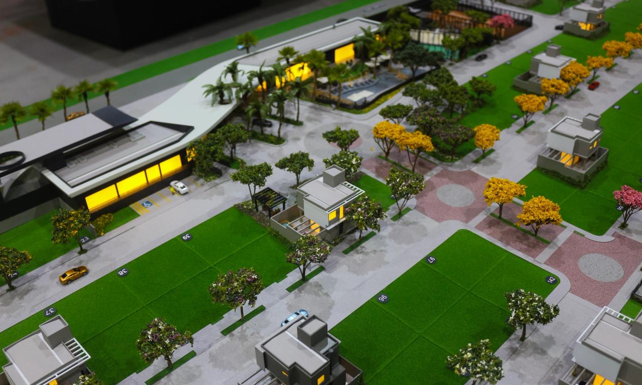 O Jooy Residences é um condomínio de lotes que se destaca pela proposta vibrante e pela riqueza de detalhes. A maquete apresenta uma paisagem marcada por árvores coloridas que trazem vida e movimento ao projeto.