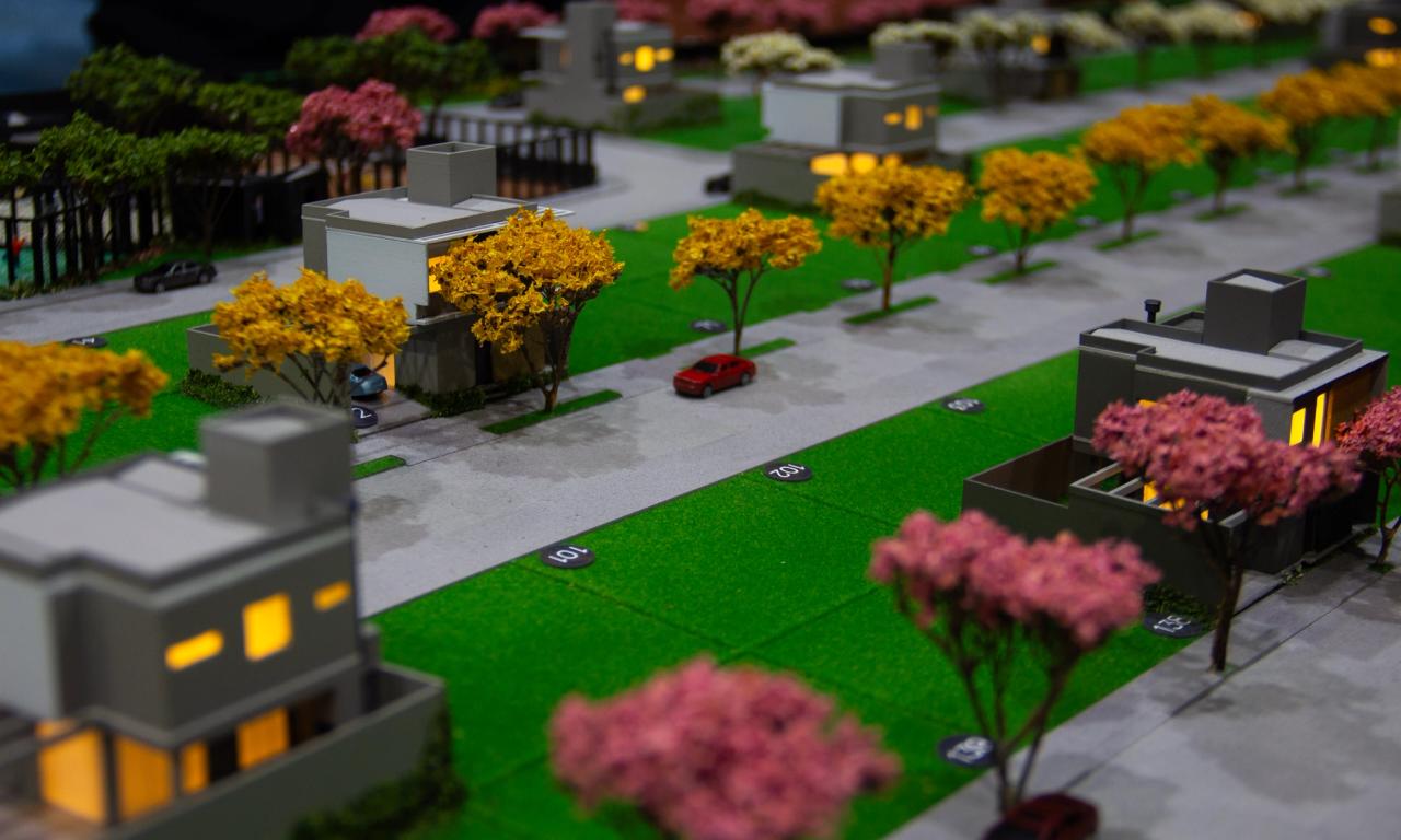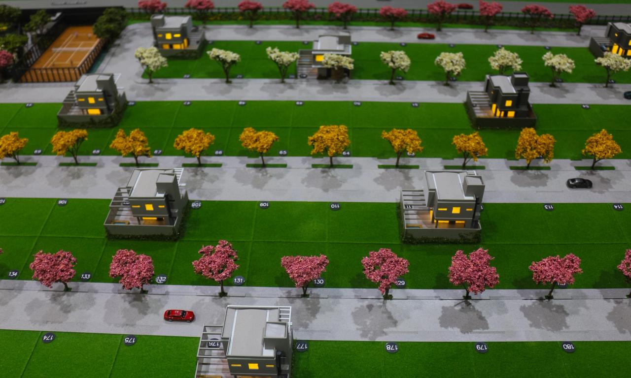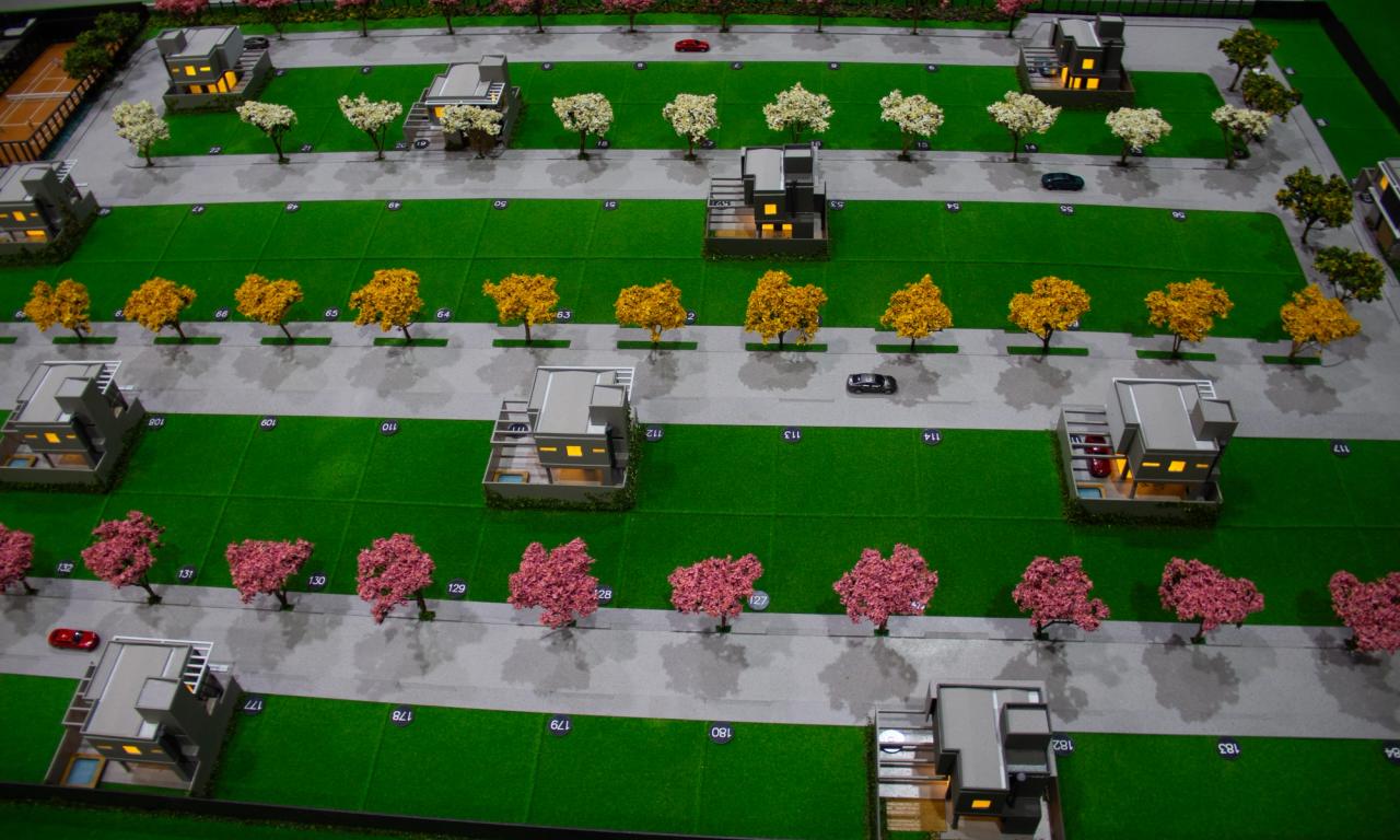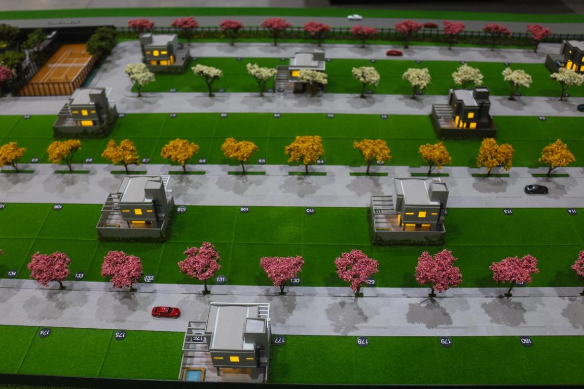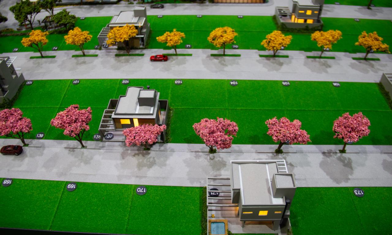 O Jooy Residences é um condomínio de lotes que se destaca pela proposta vibrante e pela riqueza de detalhes. A maquete apresenta uma paisagem marcada por árvores coloridas que trazem vida e movimento ao projeto.