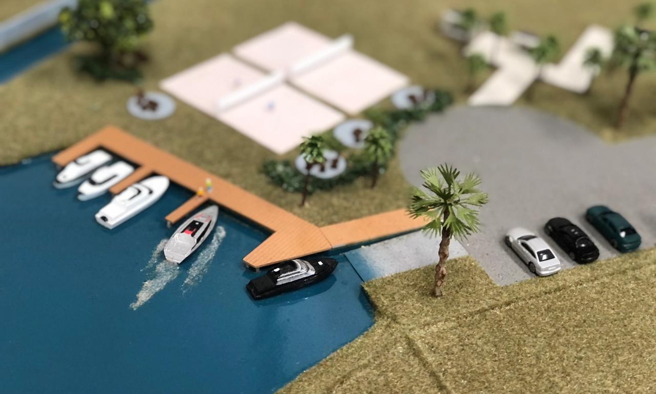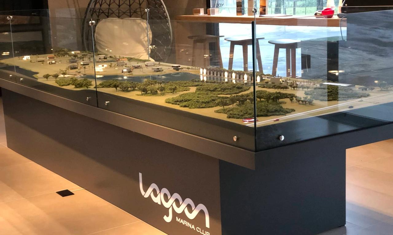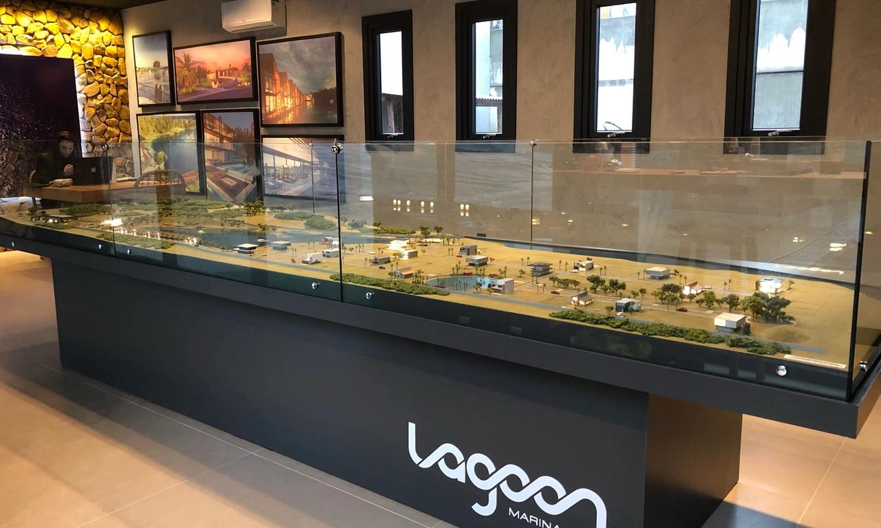 Mesmo se tratando de uma maquete com uma escala reduzida, conseguimos passar através da maquete o quão grande é este empreendimento. Além de lotes convencionais, ele conta com apartamentos na beira do lago, marina, clube, área de esportes, além do clube. Não ficou uma graça?
