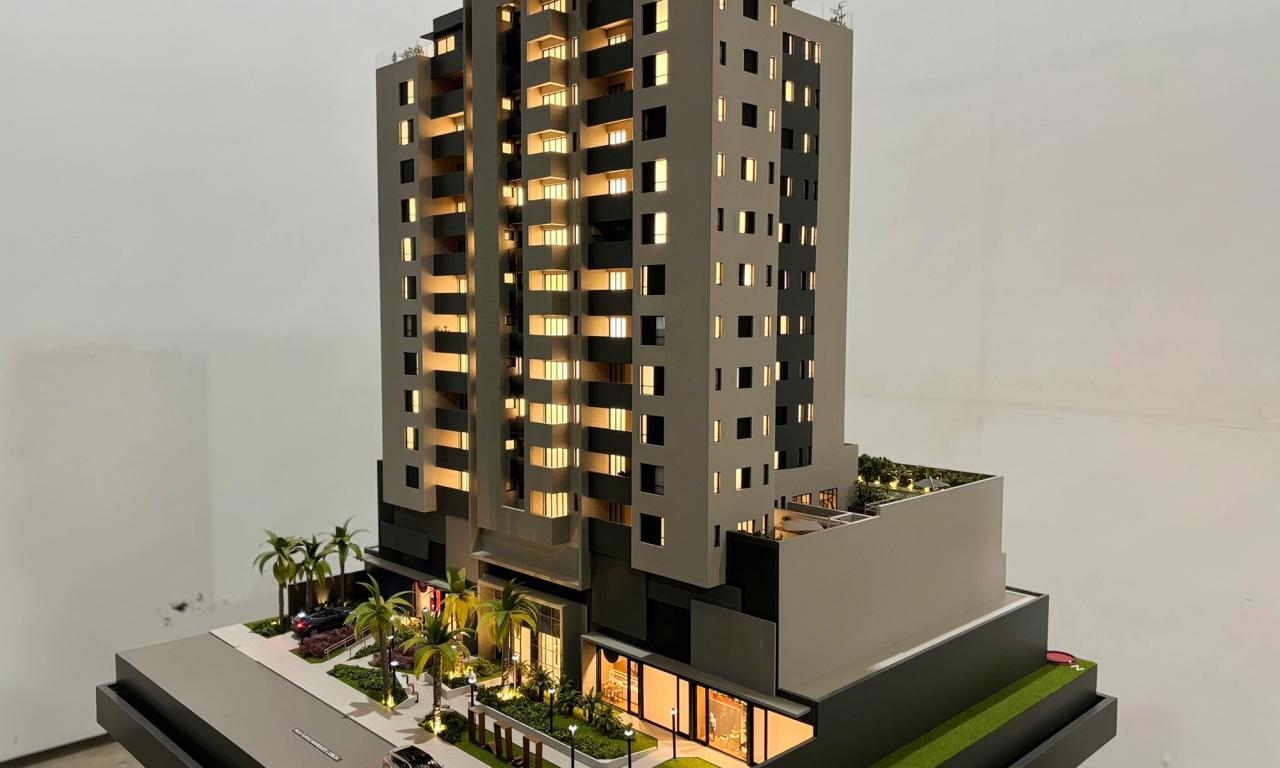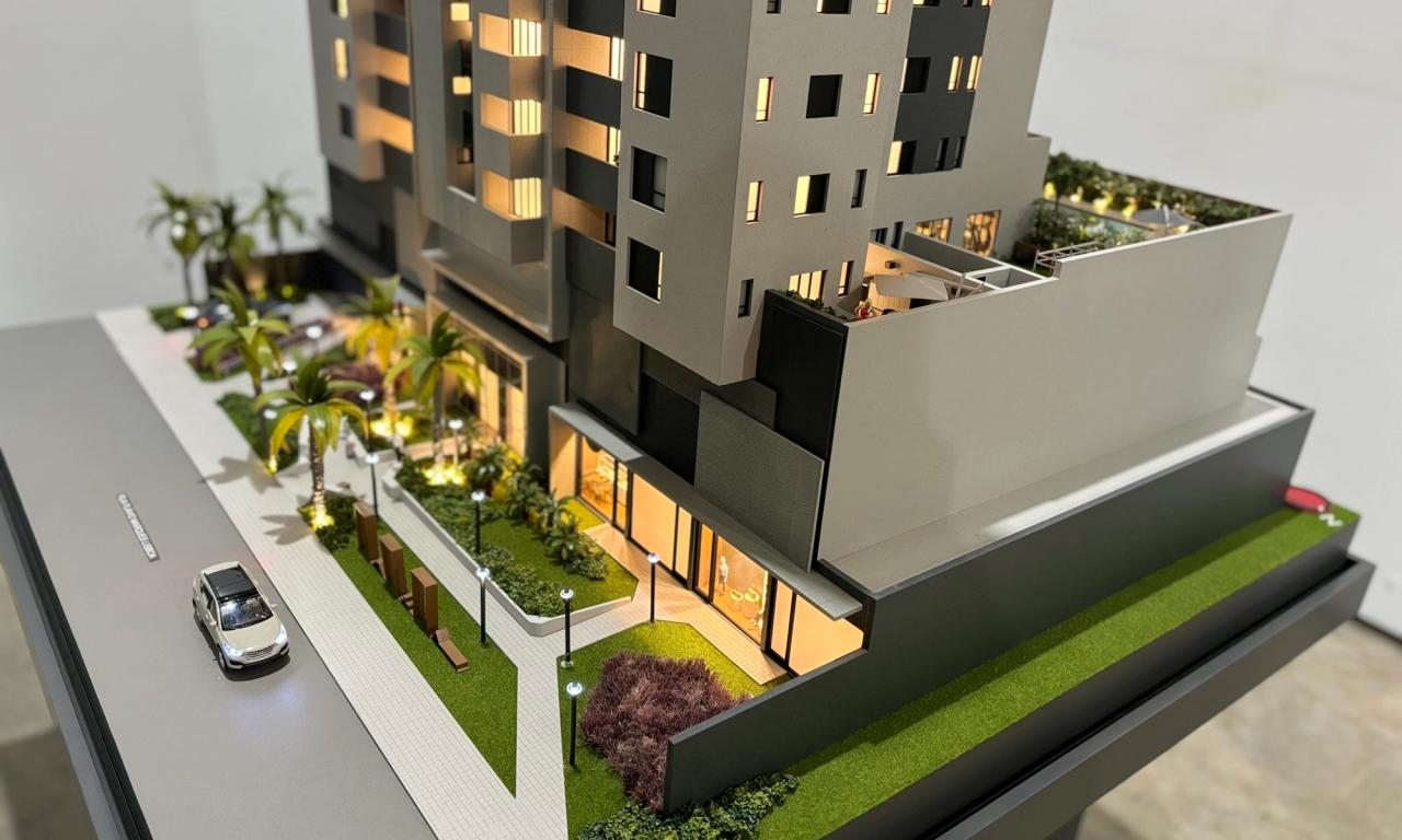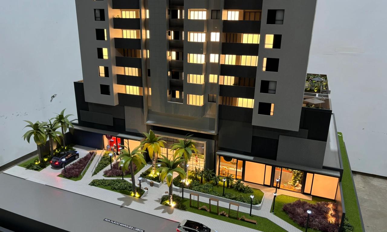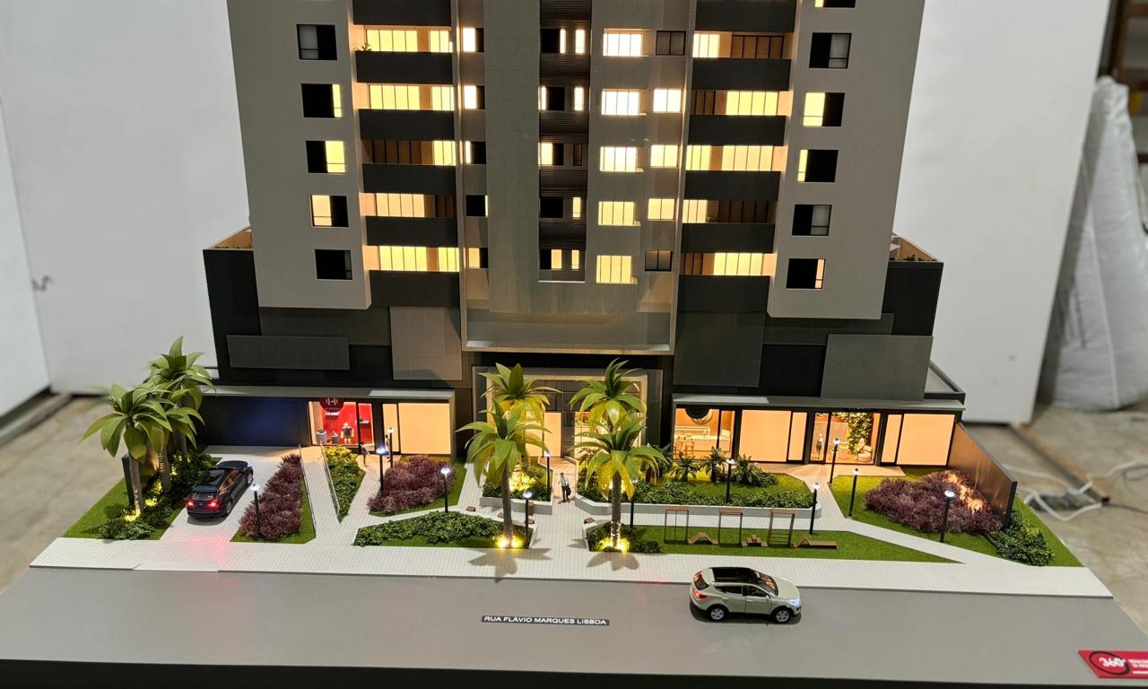 A maquete do Lisboa destaca-se pela sua complexidade e riqueza de detalhes. Este prédio misto combina, no térreo, lojas comerciais com paisagismo e elementos cuidadosamente elaborados. Utilizamos impressão 3D para garantir que todos os detalhes dos mobiliários e acabamentos fossem representados com precisão, dando vida a cada loja e ambiente.
