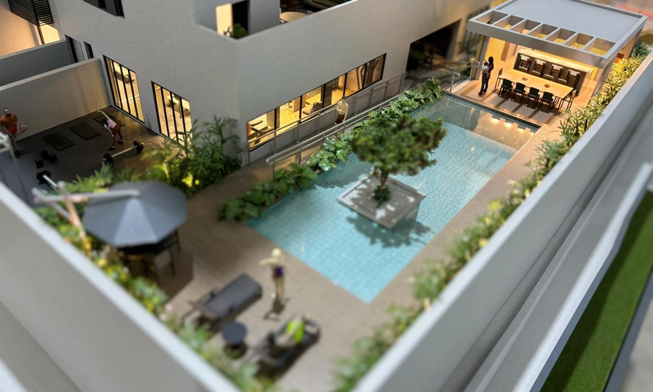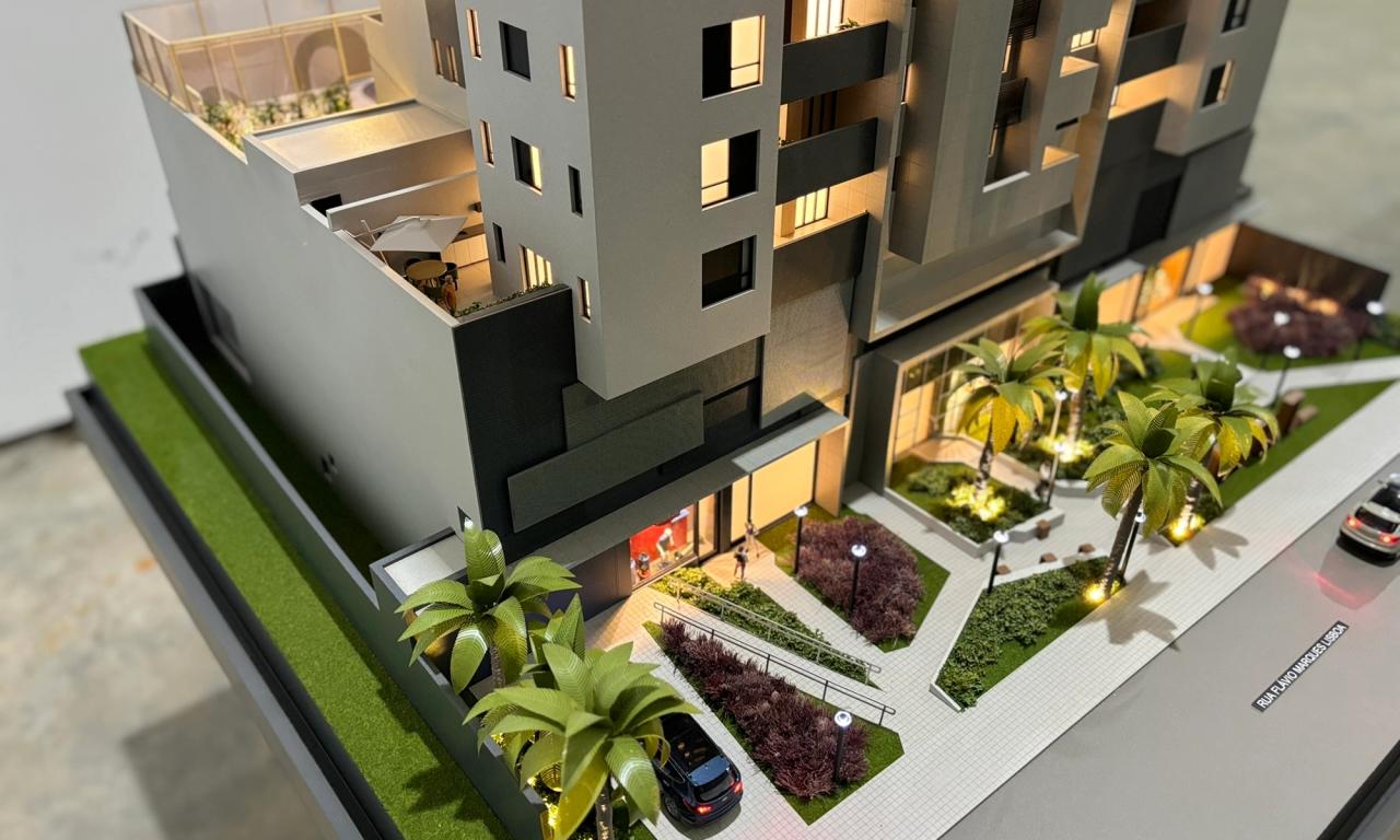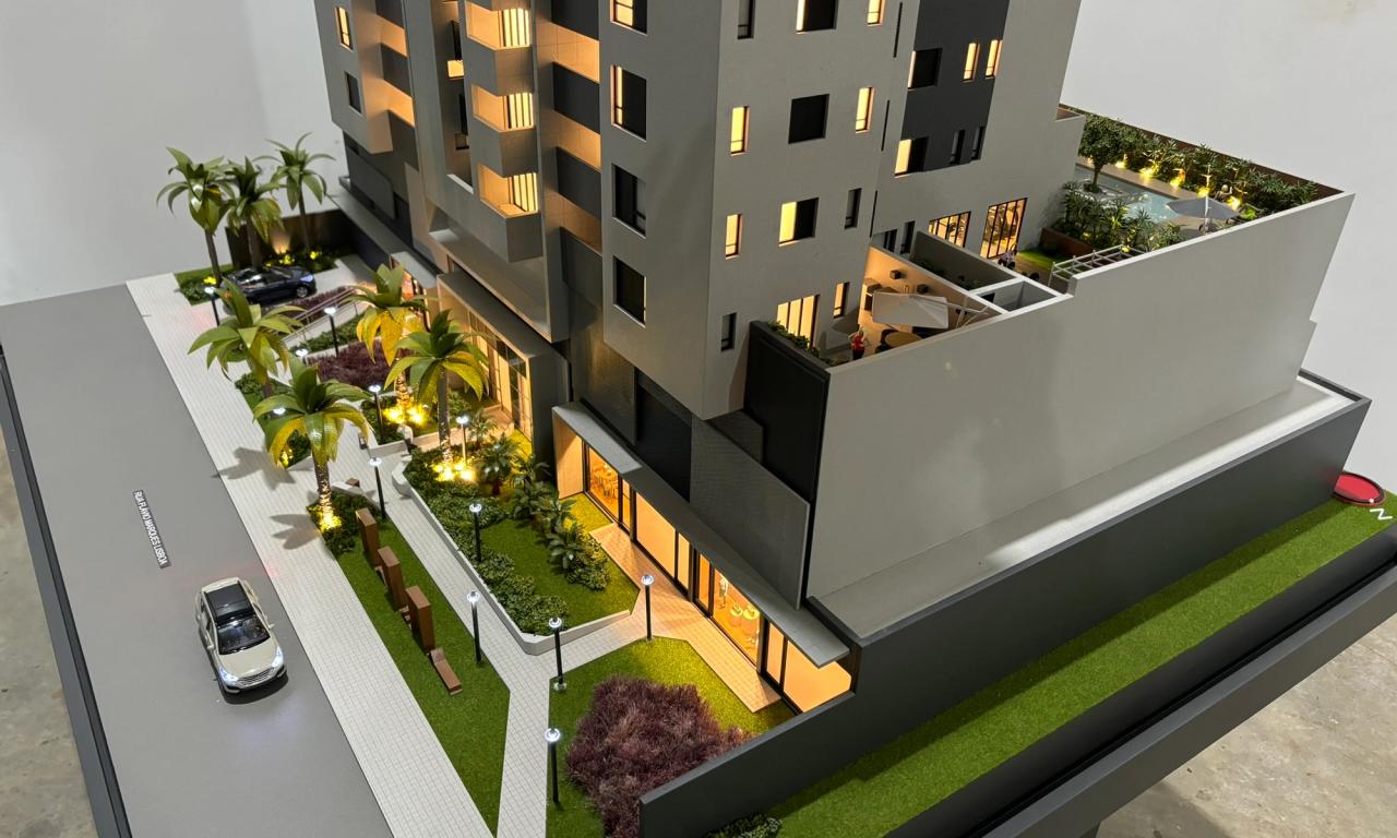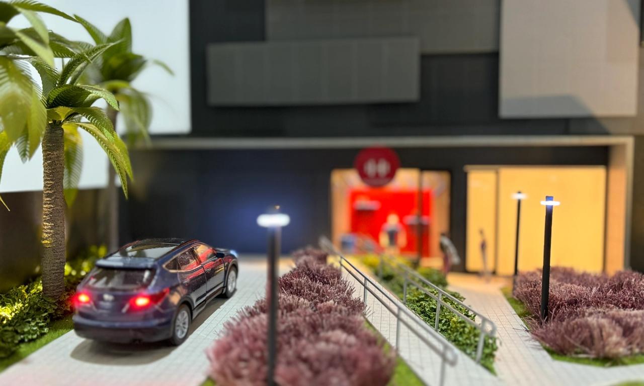 A maquete do Lisboa destaca-se pela sua complexidade e riqueza de detalhes. Este prédio misto combina, no térreo, lojas comerciais com paisagismo e elementos cuidadosamente elaborados. Utilizamos impressão 3D para garantir que todos os detalhes dos mobiliários e acabamentos fossem representados com precisão, dando vida a cada loja e ambiente.