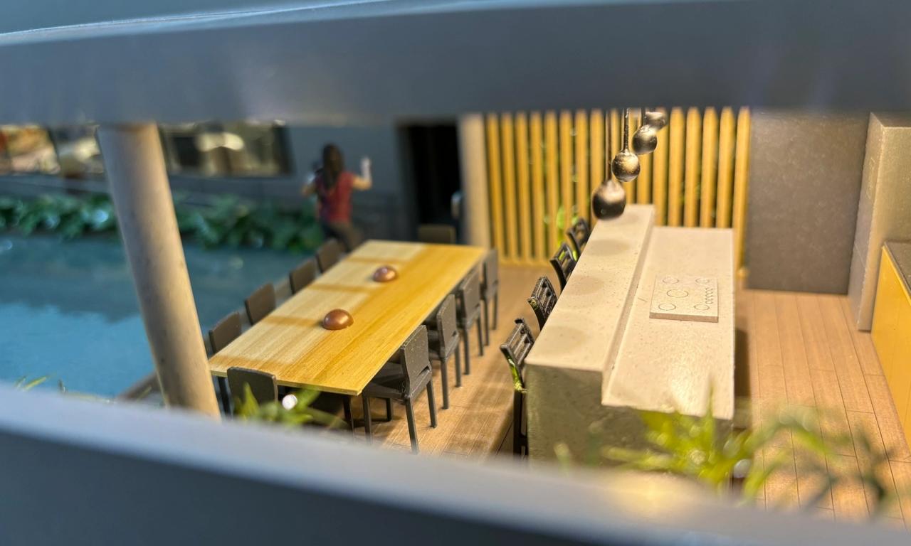 A iluminação foi cuidadosamente planejada, tanto no paisagismo do térreo quanto nas áreas superiores, o que destaca a arquitetura e oferece uma sensação de realismo impressionante. O Lisboa é a prova de que uma maquete detalhada pode trazer cada aspecto de um projeto à vida.