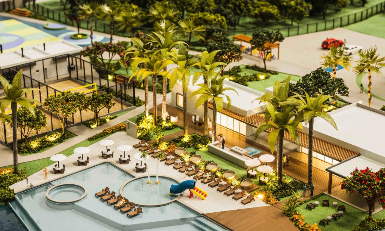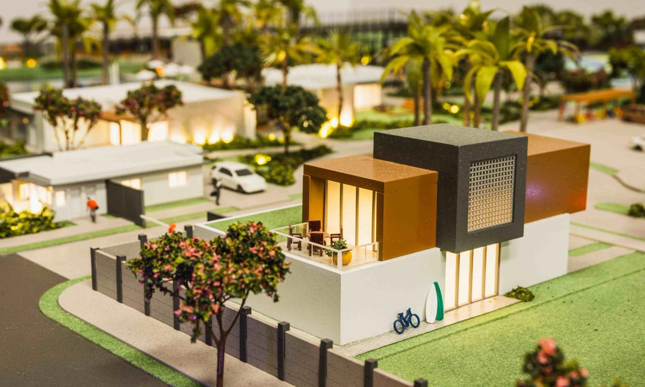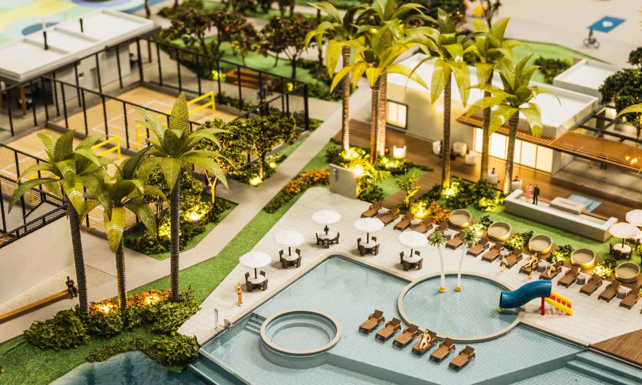 Nós nos atentamos a cada cantinho do projeto para recriar cenas do dia a dia. É possível ver pessoas jogando na quadra de bocha, algumas bicicletas encostadas nos muros das casas, pranchas de surf e muito mais. O objetivo é dar vida à maquete e fazer com que as pessoas se encantem com ela e se identifiquem com o projeto.