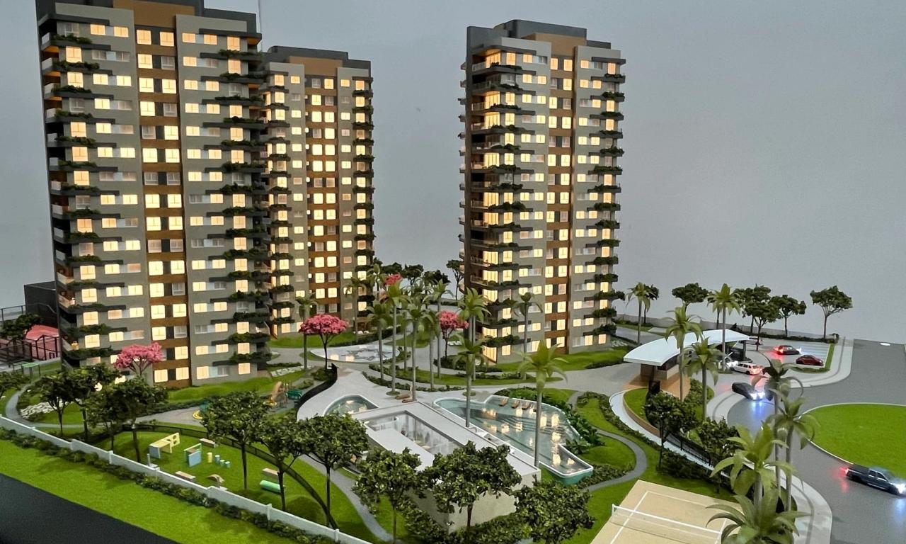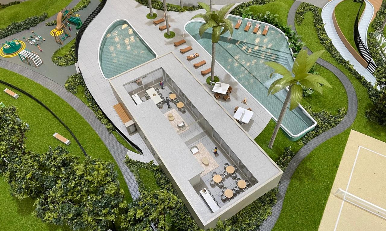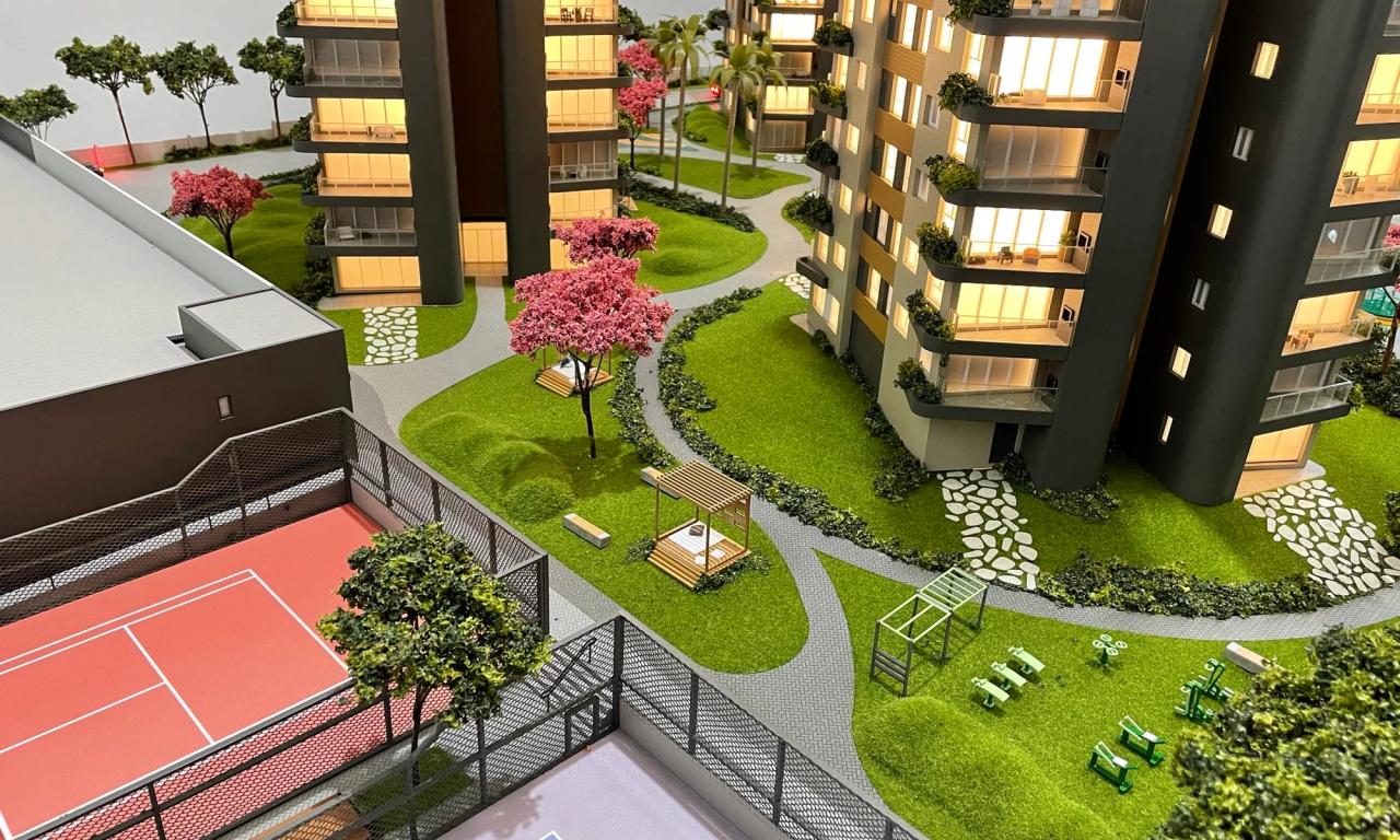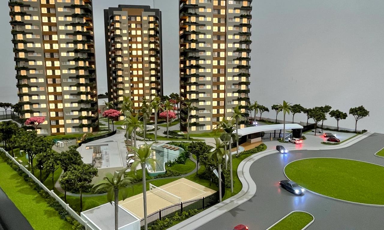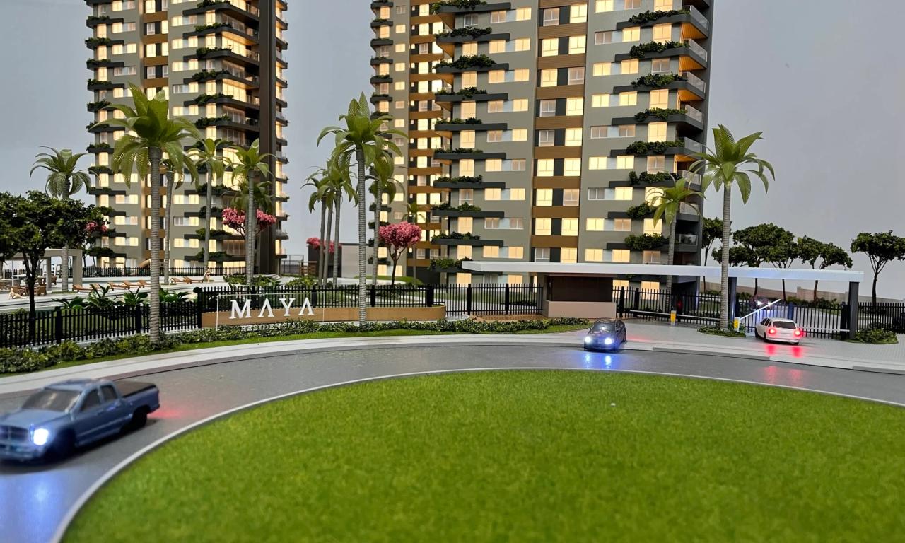 O Maya conta com 3 torres que encantam pelo cuidado na implantação. Mesmo em uma escala reduzida de 1/75, a maquete traz um rico visual que ressalta a qualidade dos equipamentos, mobiliários e paisagismo presentes no projeto.