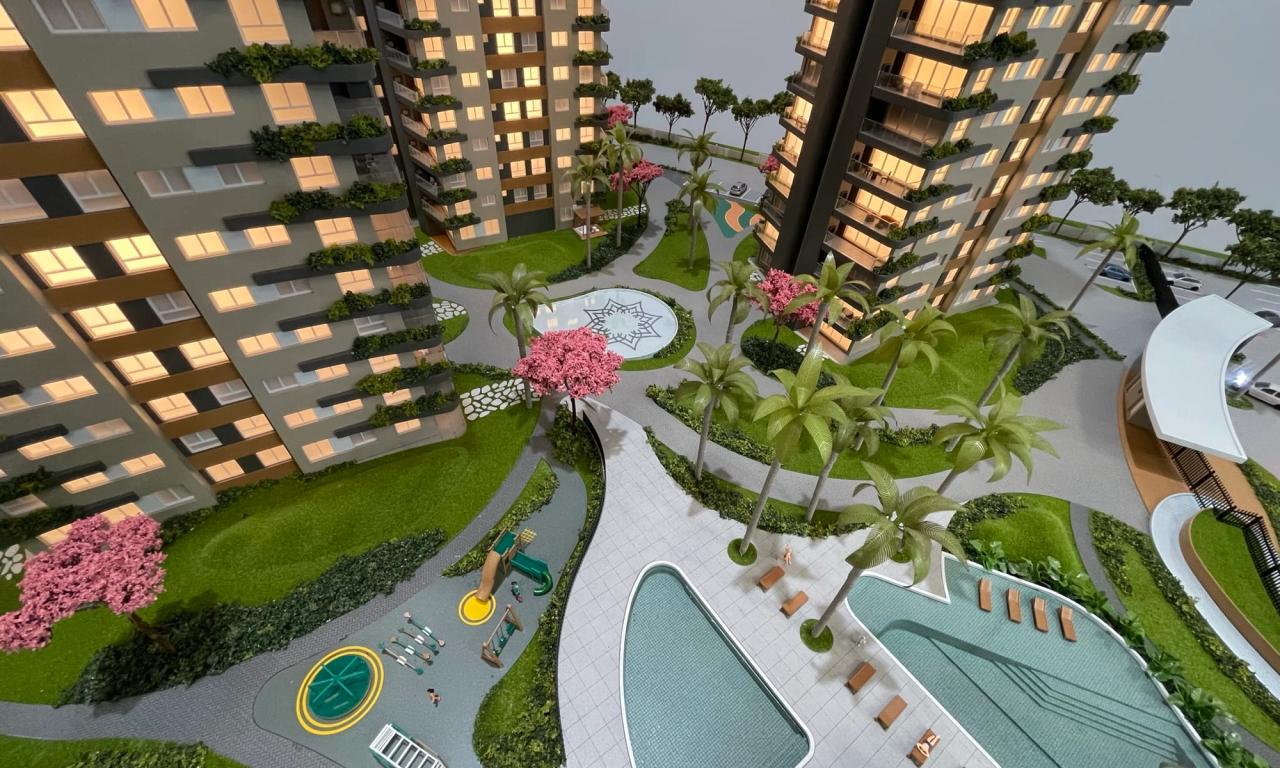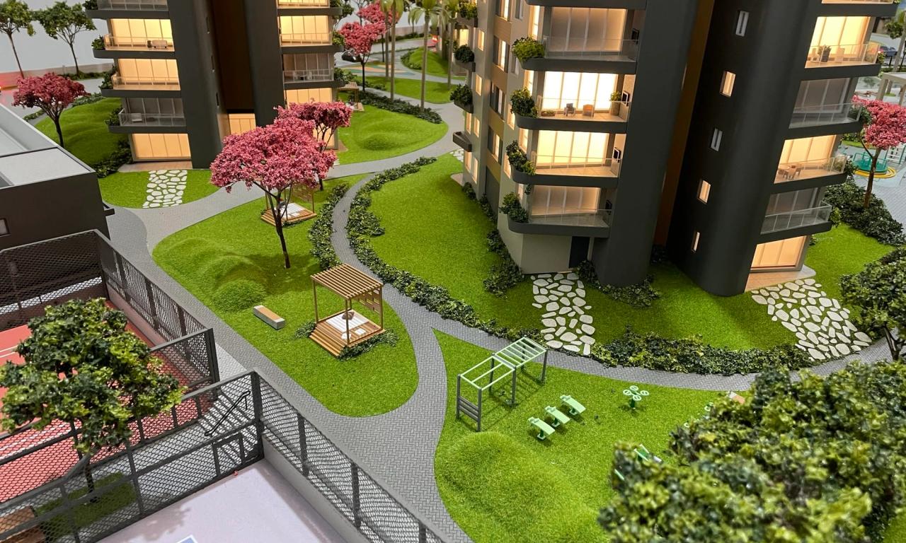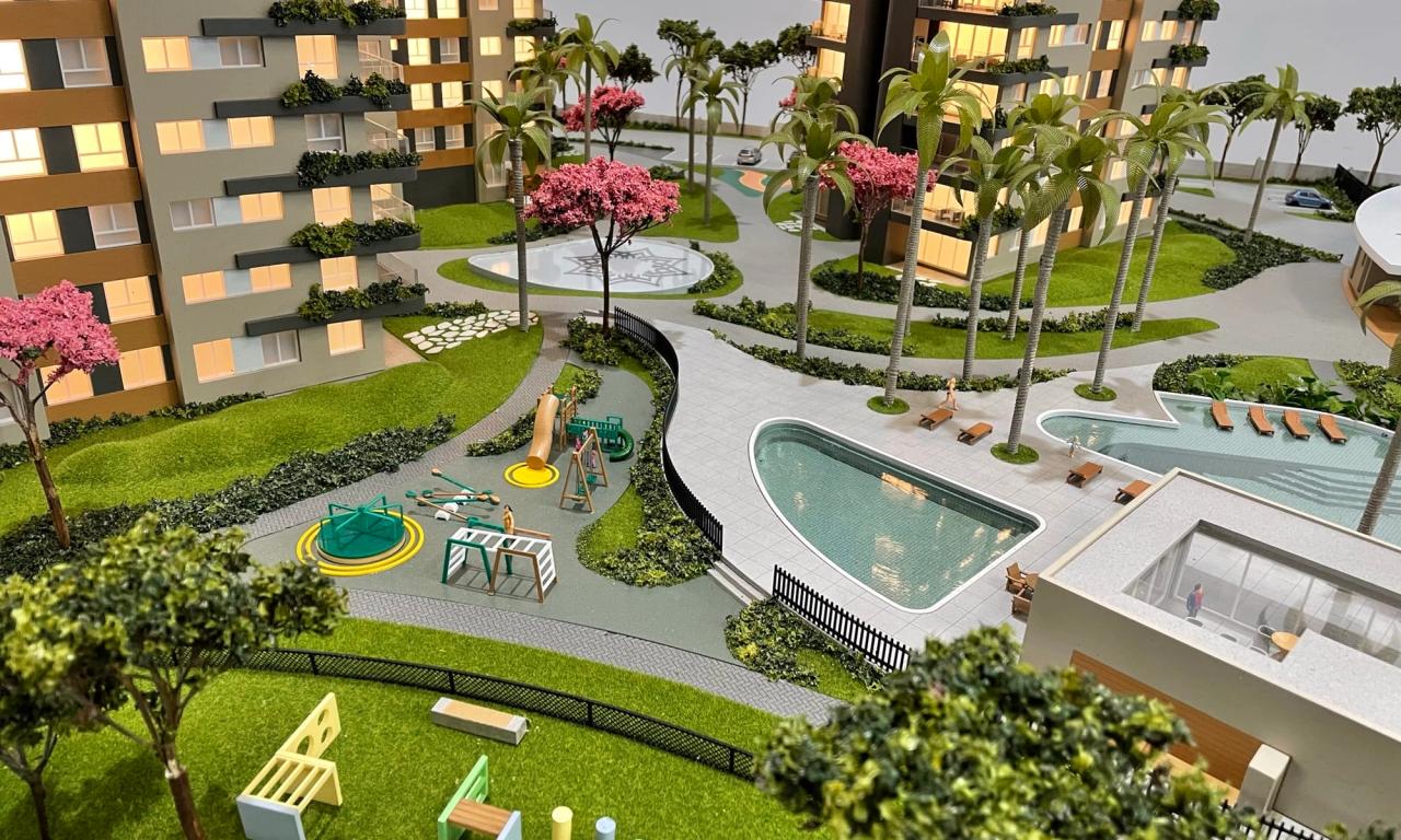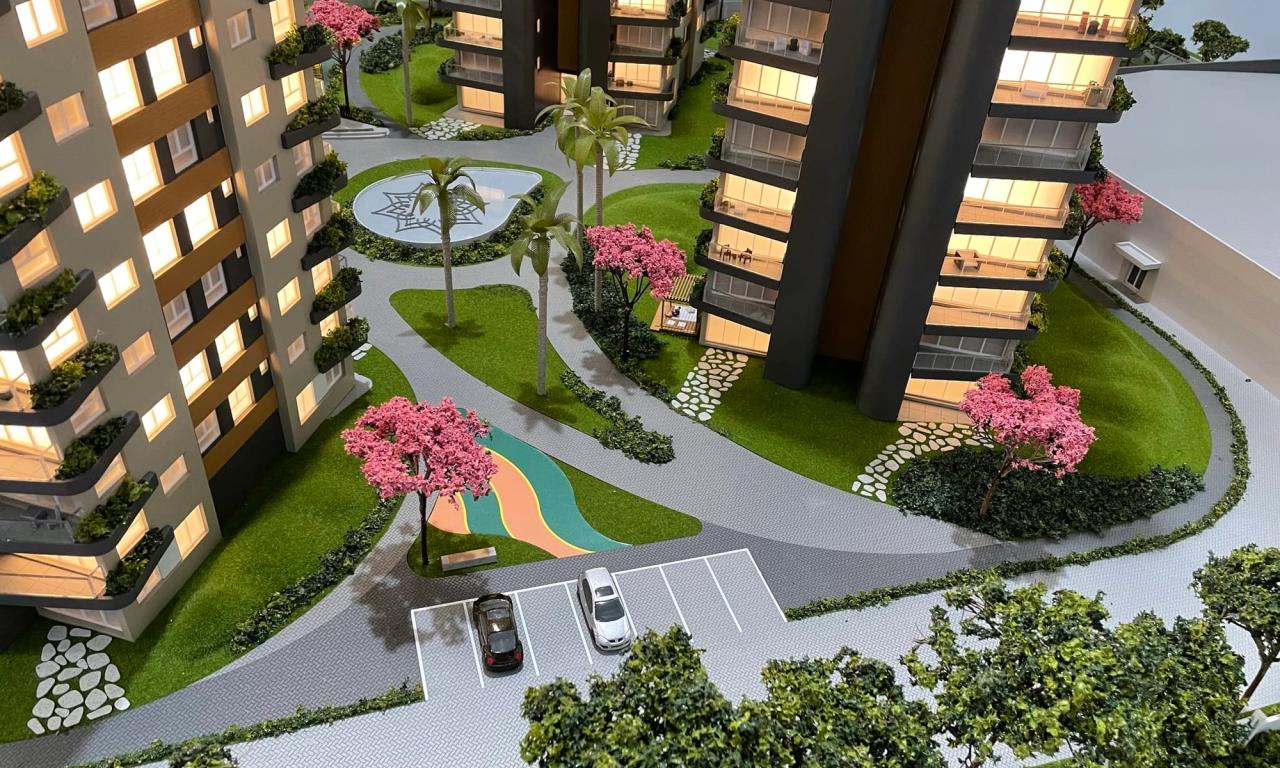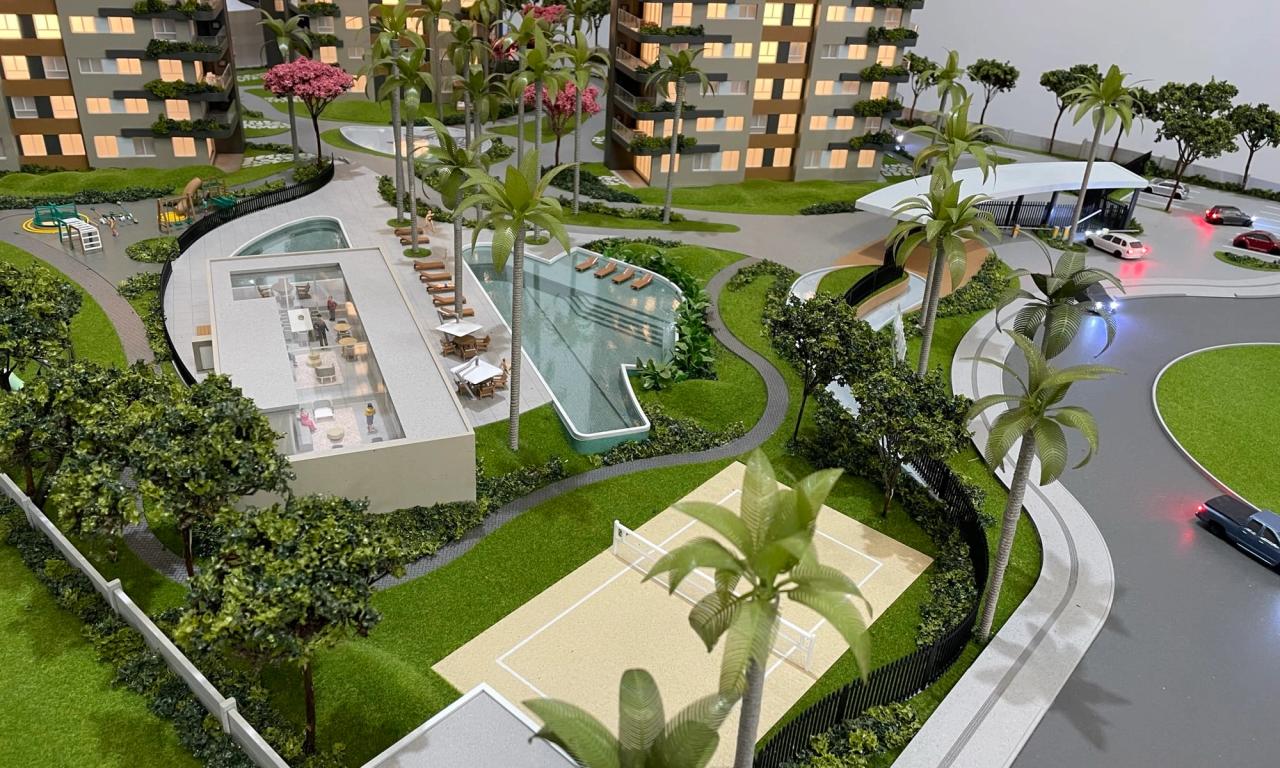 O Maya conta com 3 torres que encantam pelo cuidado na implantação. Mesmo em uma escala reduzida de 1/75, a maquete traz um rico visual que ressalta a qualidade dos equipamentos, mobiliários e paisagismo presentes no projeto.