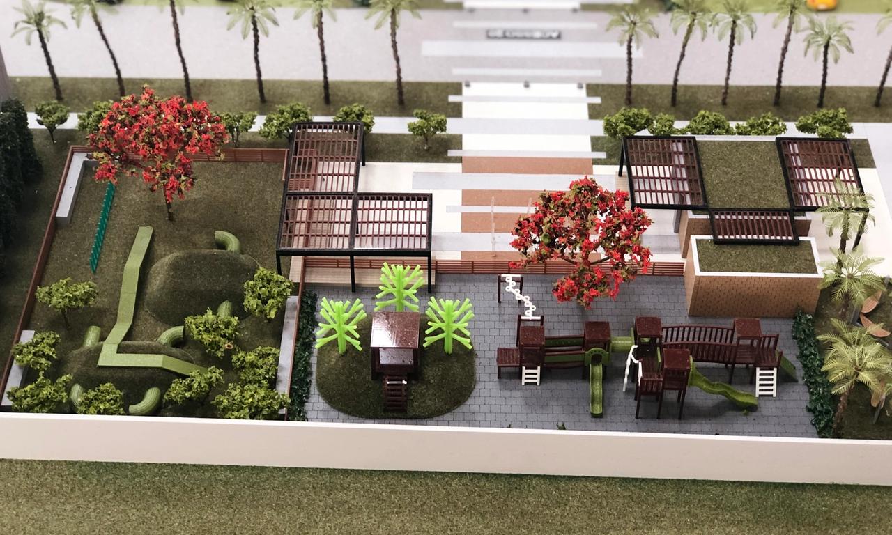 Nesse condomínio, diferente da maioria, as casas já serão entregues e esse sem dúvida foi o maior desafio dessa maquete. Praticamente todas as casas têm alguma diferença de projeto, ou seja, além do projeto do condomínio como um todo, tivemos praticamente um projeto diferente para cada casa representada.