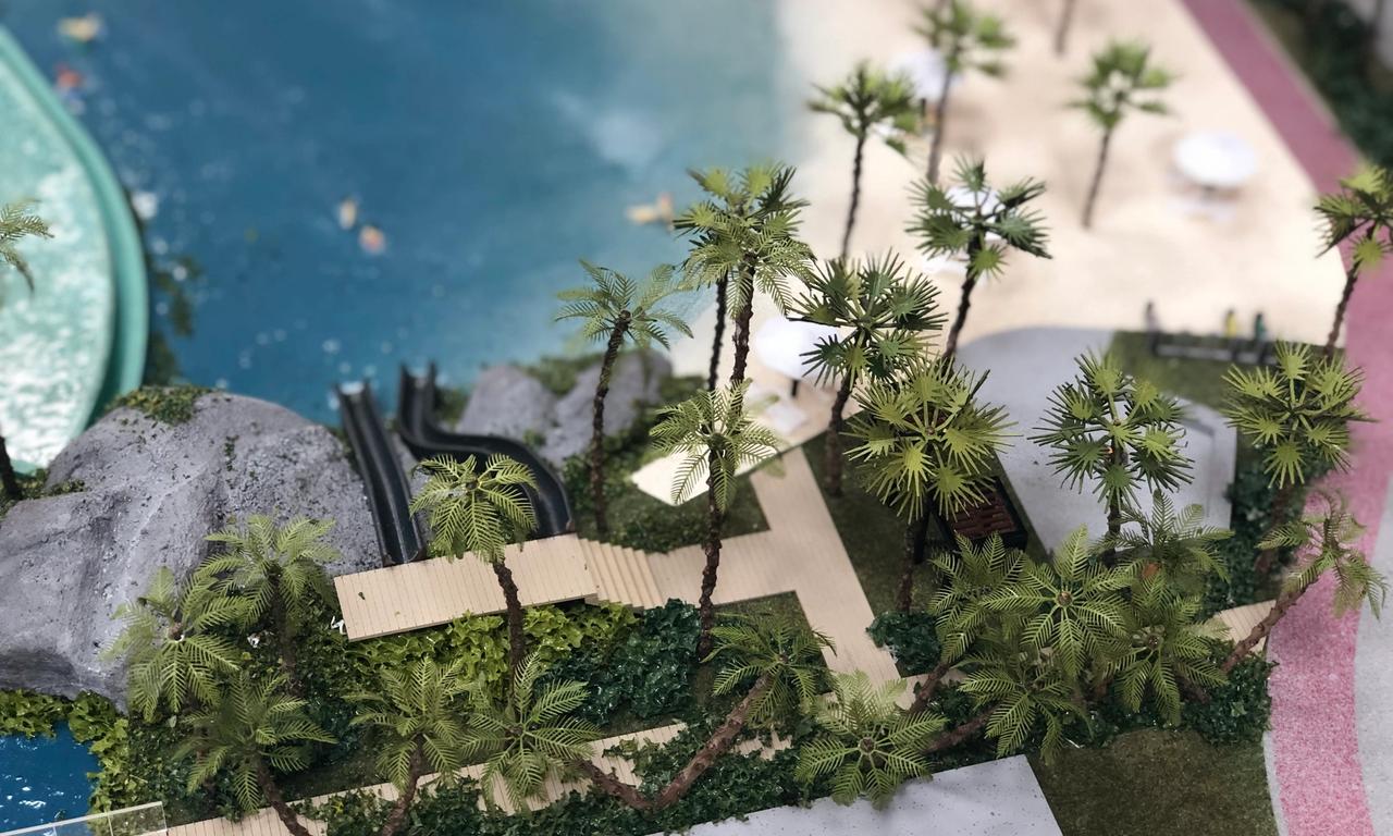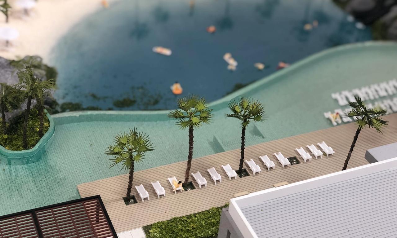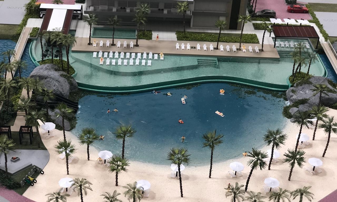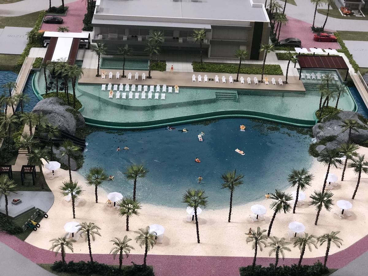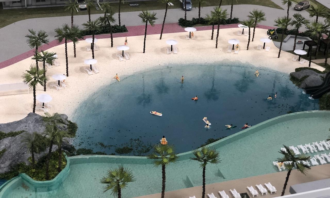 Nesse empreendimento o mais bacana é a área do club house que além de contar com toda a infraestrutura condominial conta com um praia artificial que ficou demais na maquete.