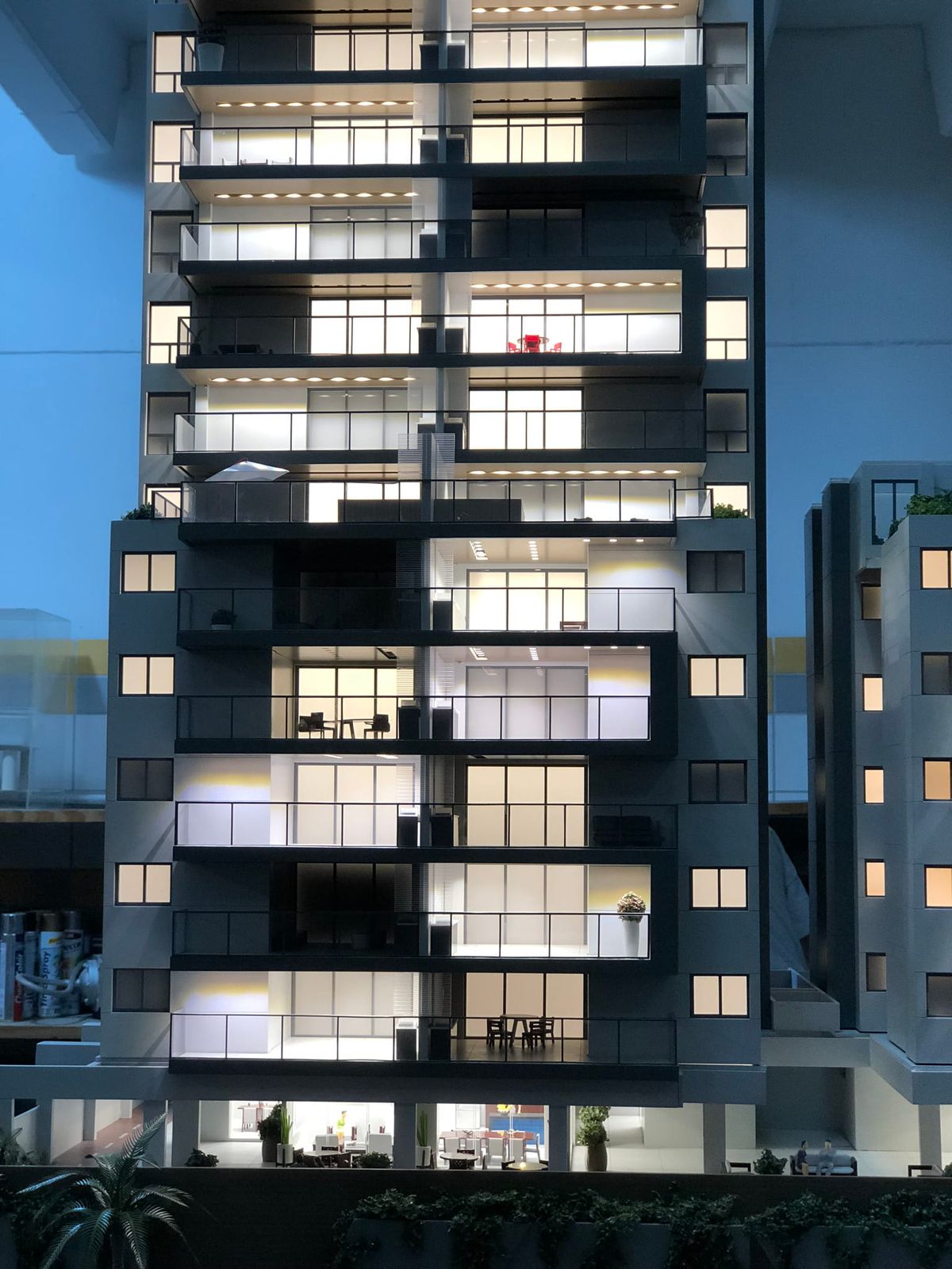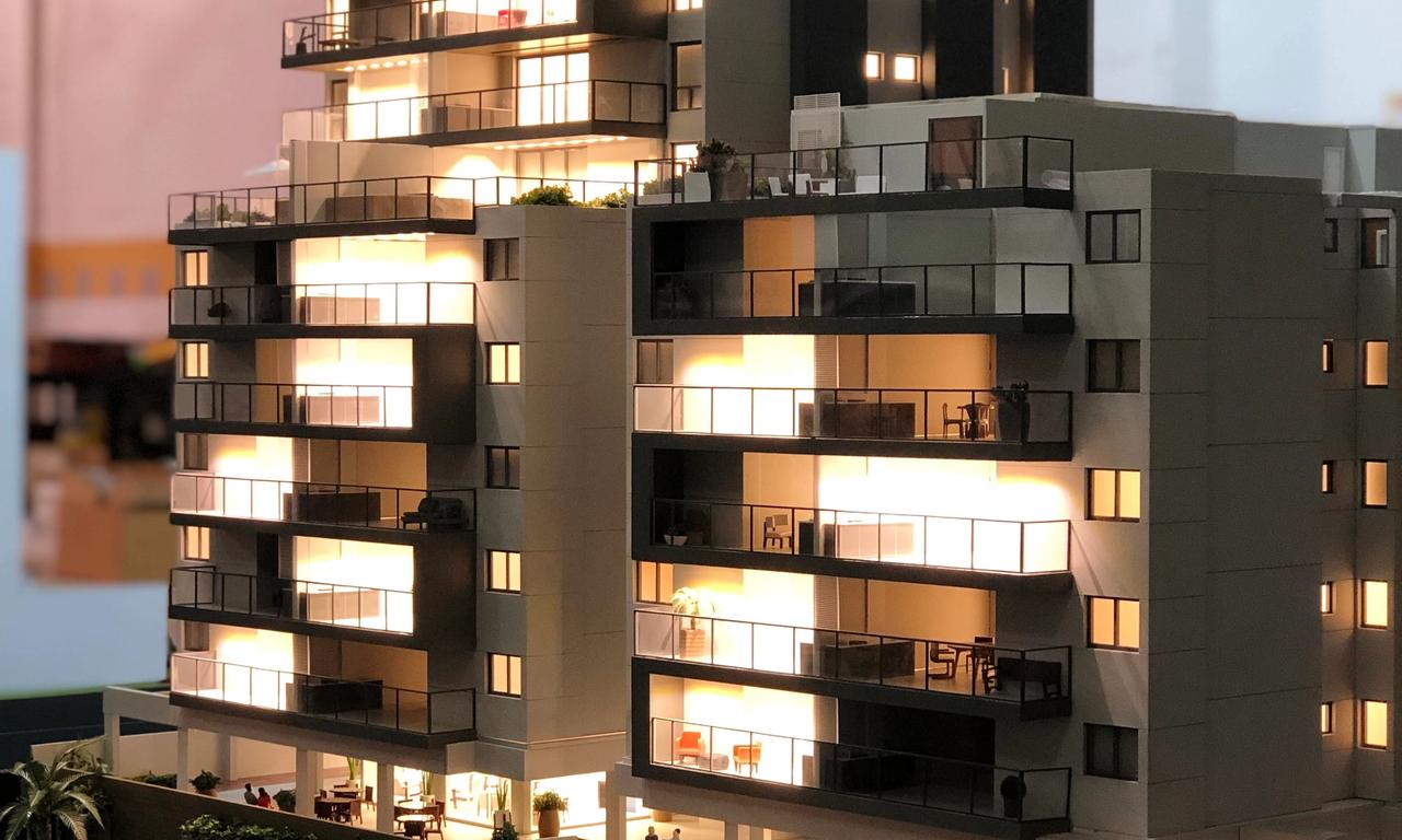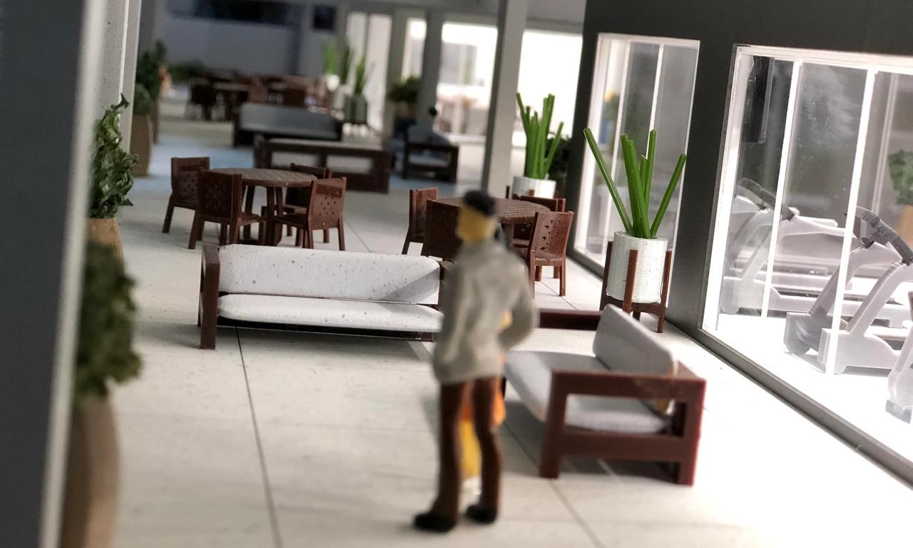 O empreendimento como um todo é muito bacana, detalhes de fachada e vegetação fizeram toda a diferença. A iluminação também foi um ponto de destaque na maquete, isso sem contar todos os ambientes que foram cuidadosamente mobiliados.