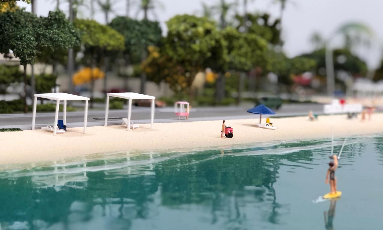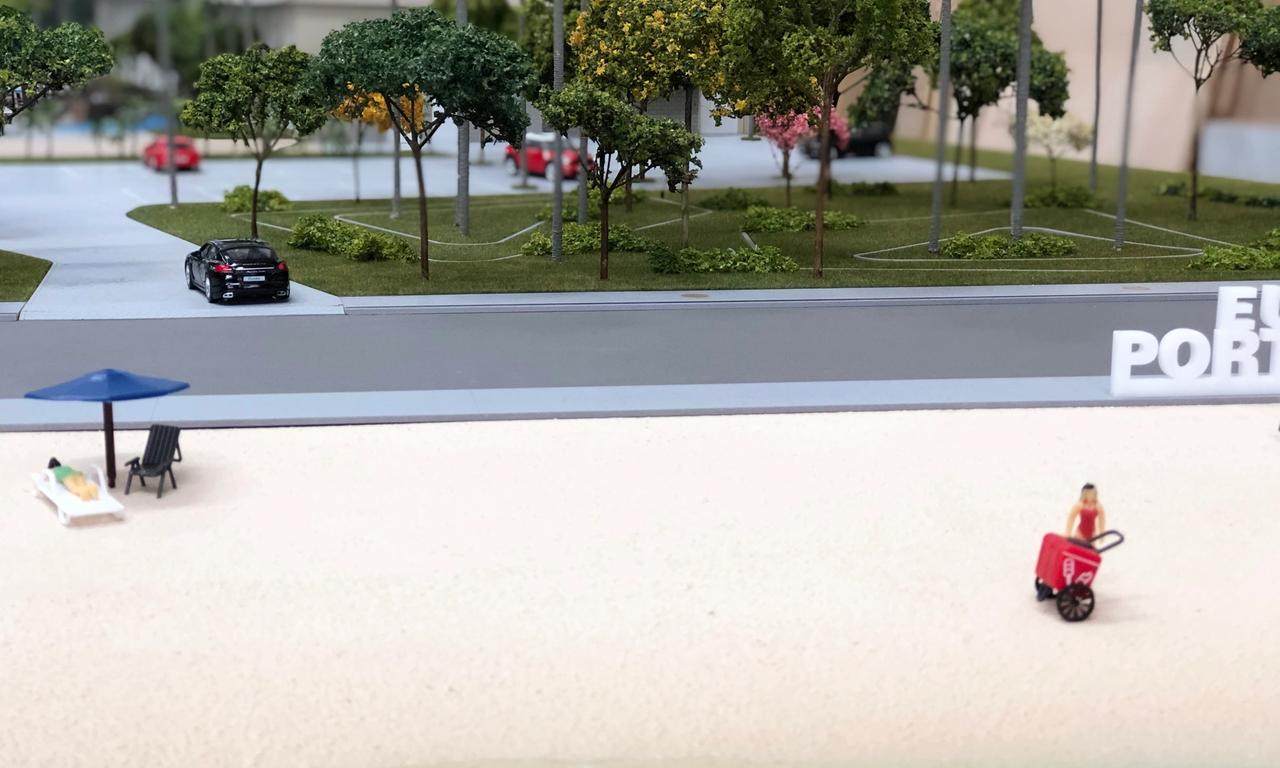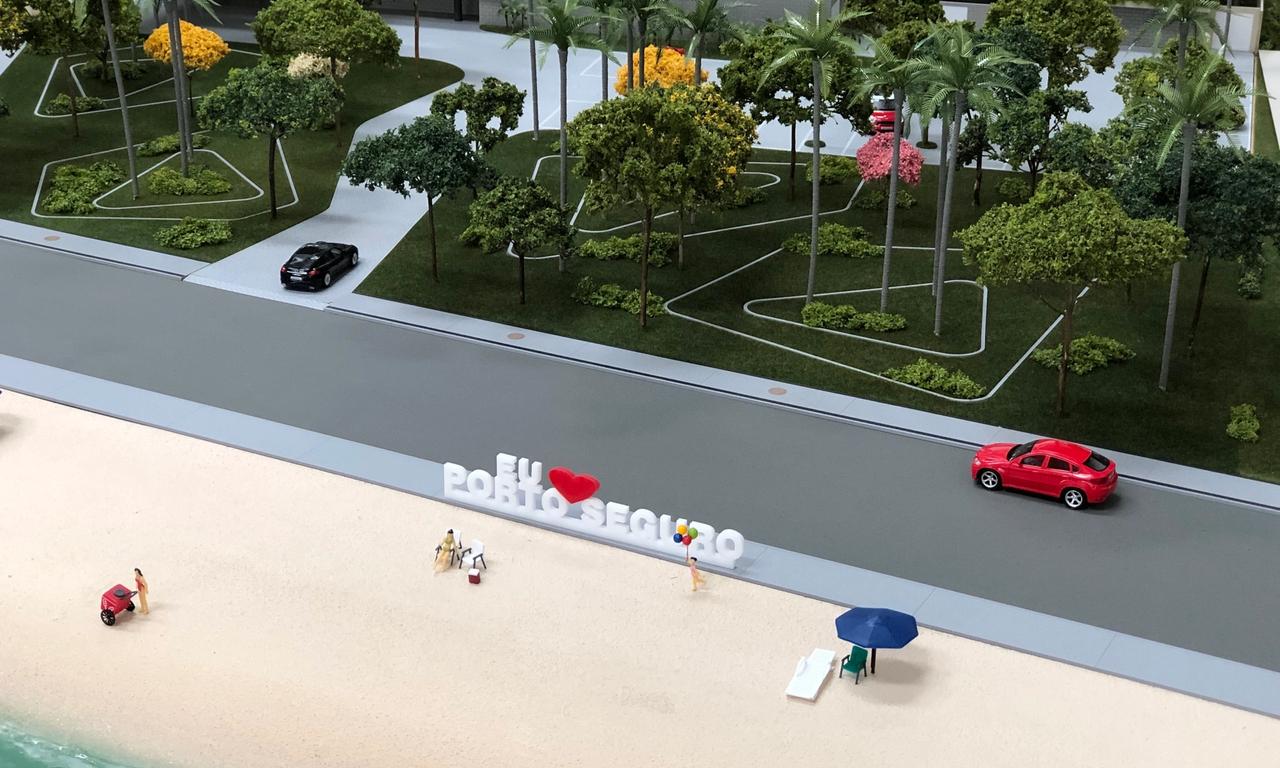 O Paisagismo e a representação da Praia, com banhistas "curtindo" um dia ensolarado dá vida e destaca muito a maquete. Certamente, a maquete fez justiça ao projeto que ela representa.