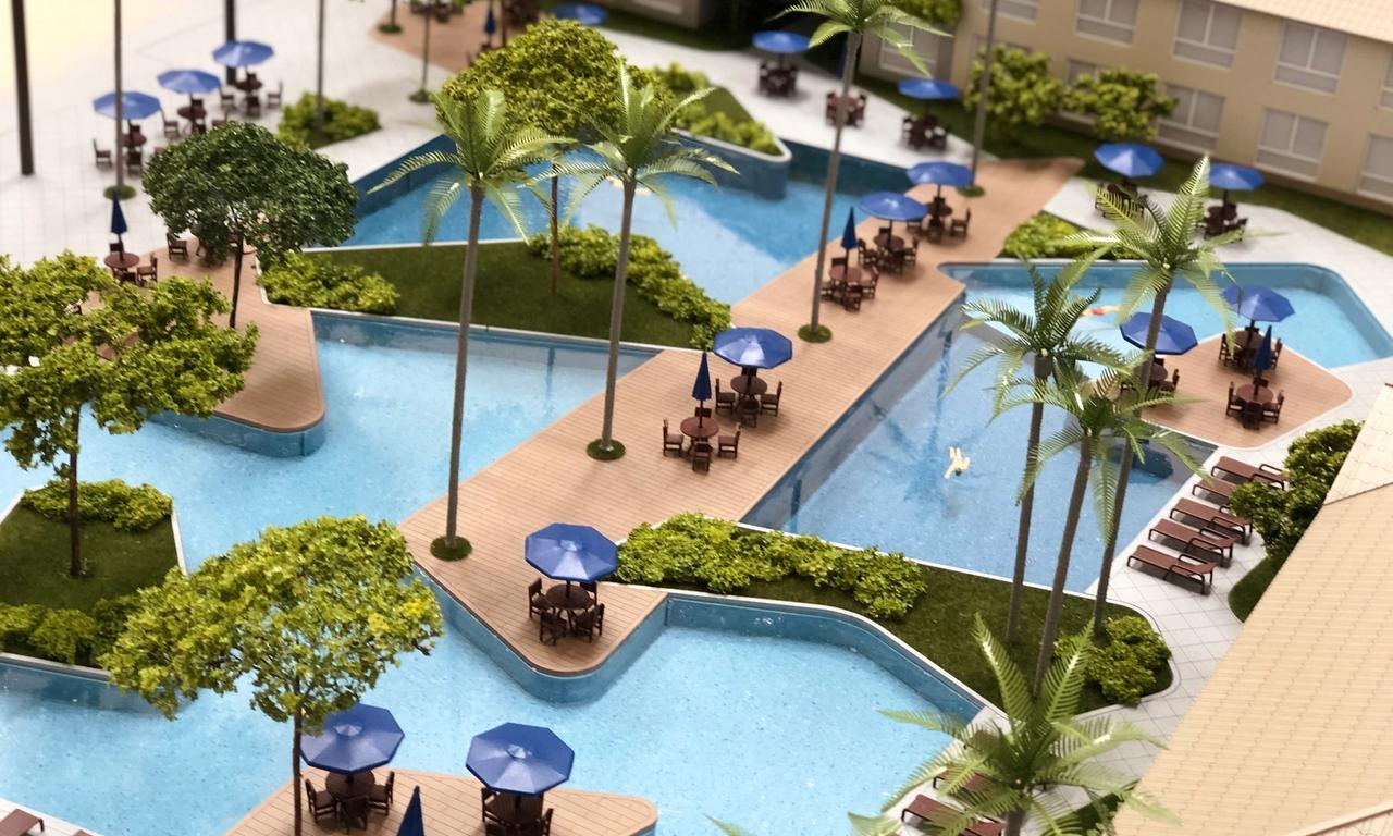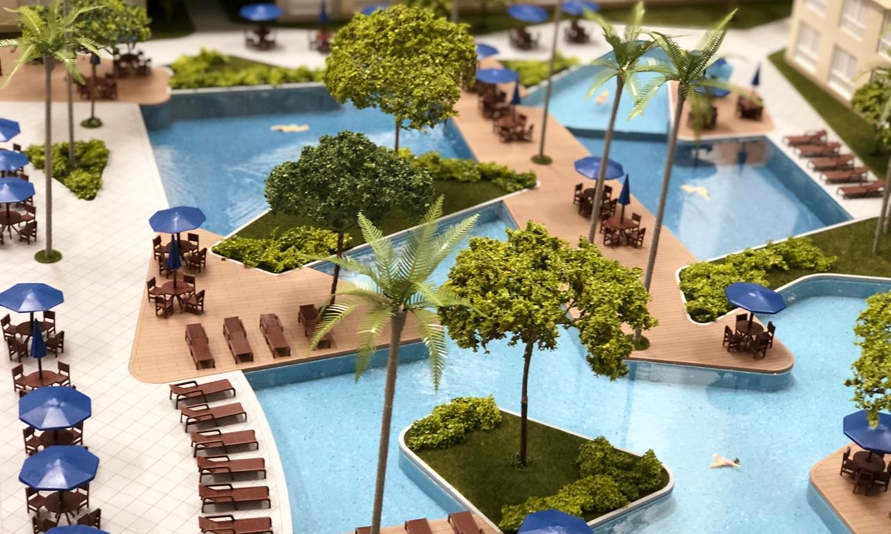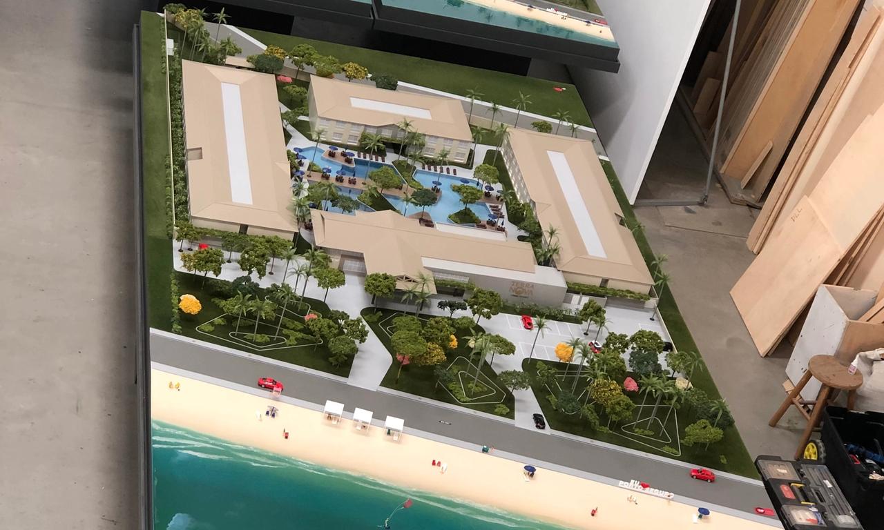 Foram contradas 3 maquetes do mesmo empreendimento, uma na escala 1/43 e duas na escala 1/75.