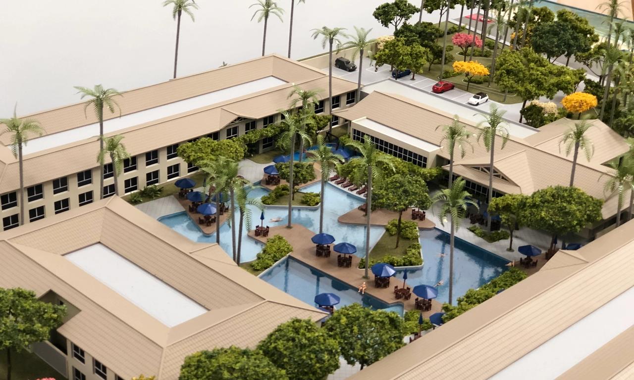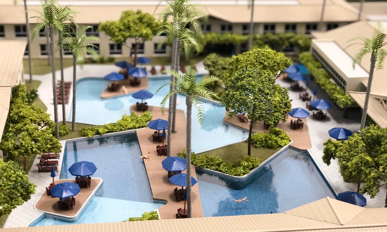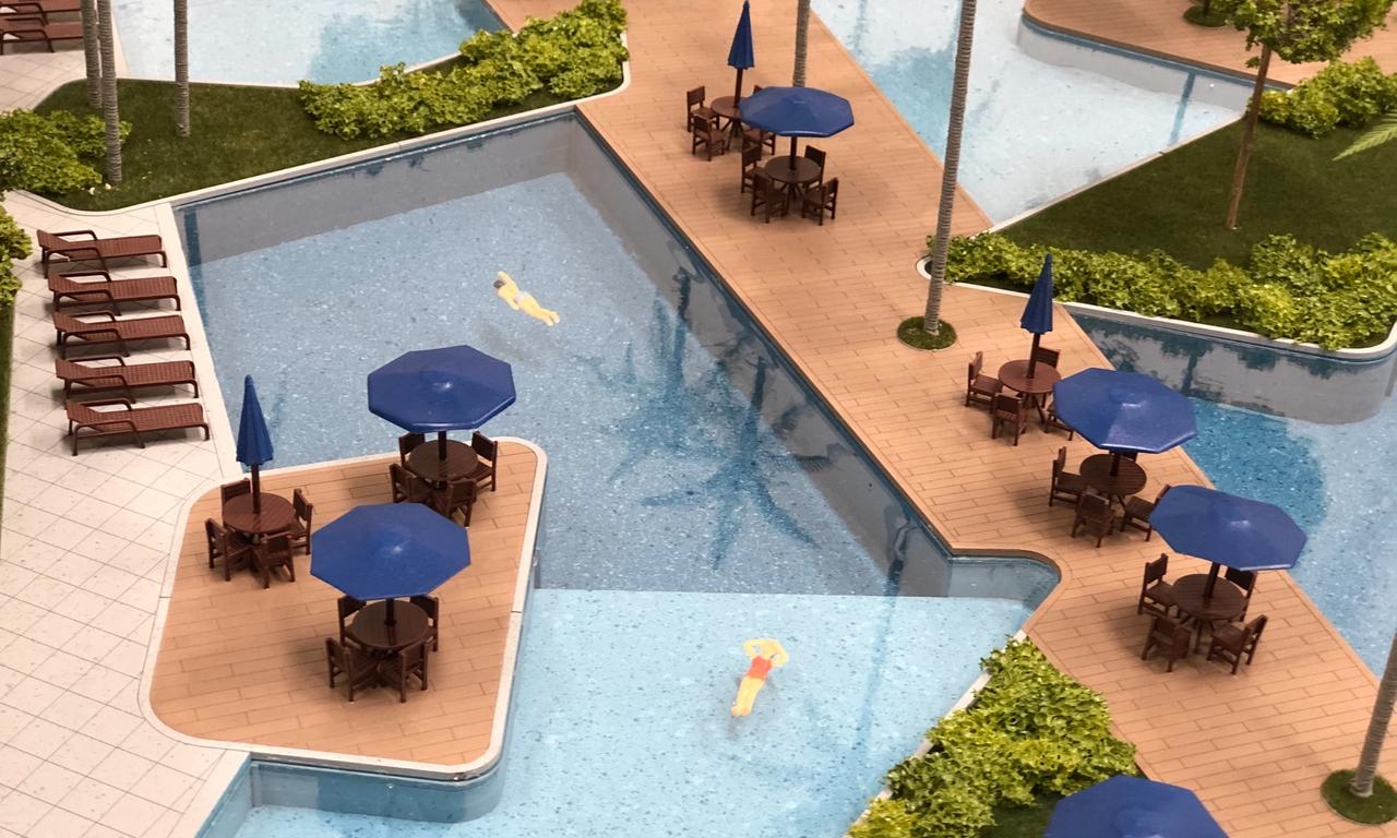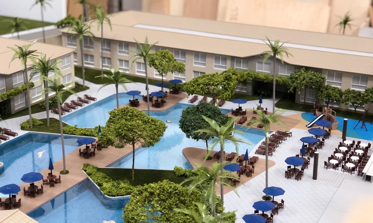 Foram contradas 3 maquetes do mesmo empreendimento, uma na escala 1/43 e duas na escala 1/75.