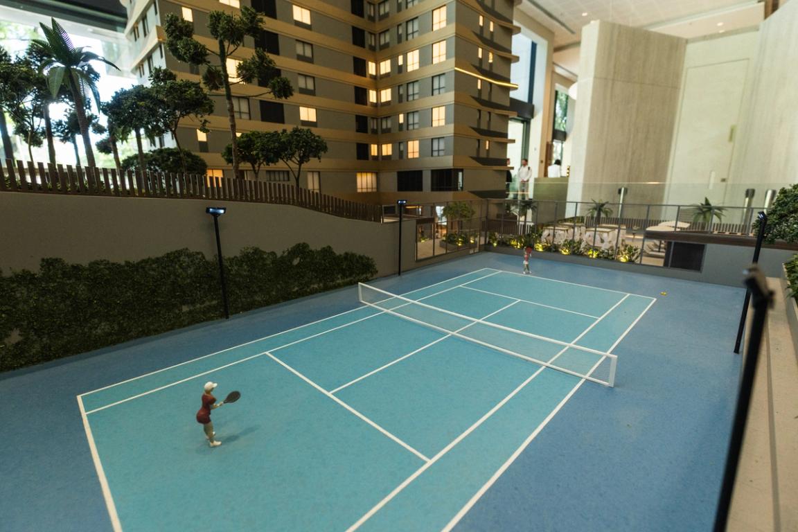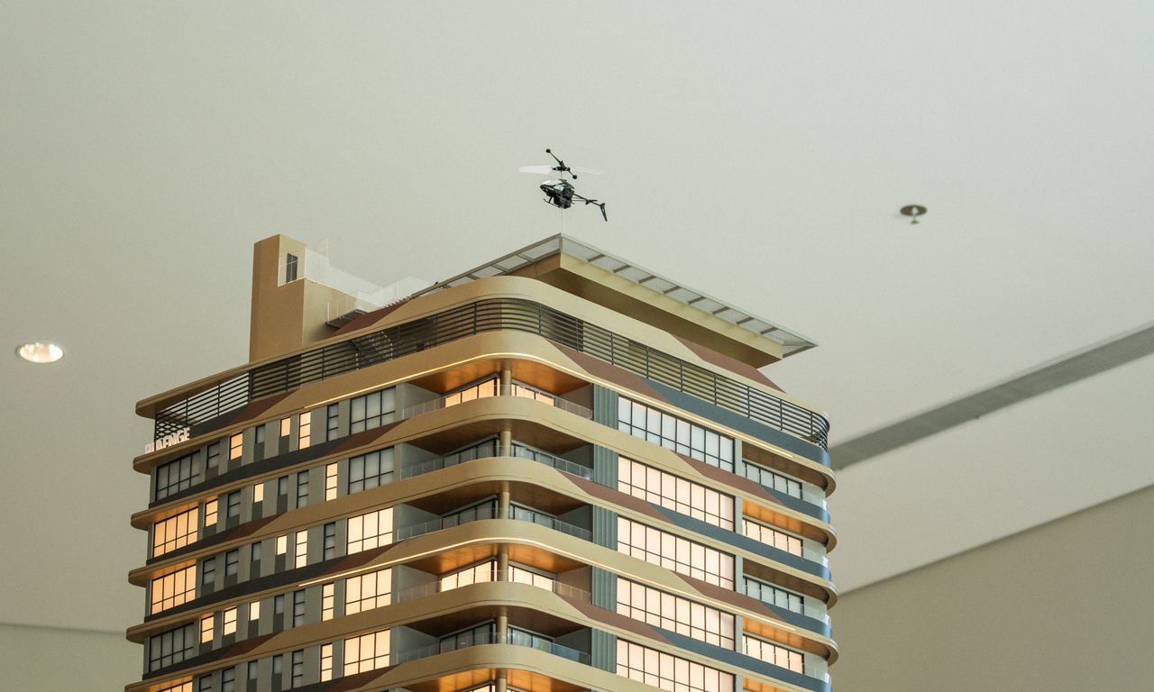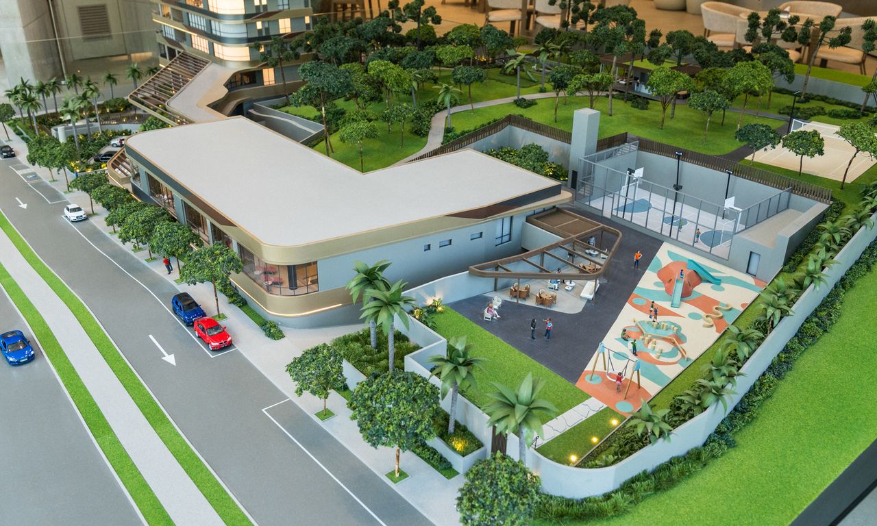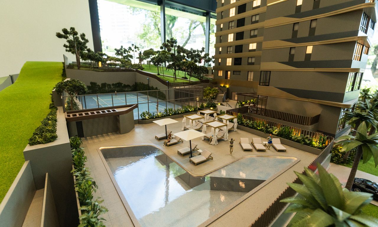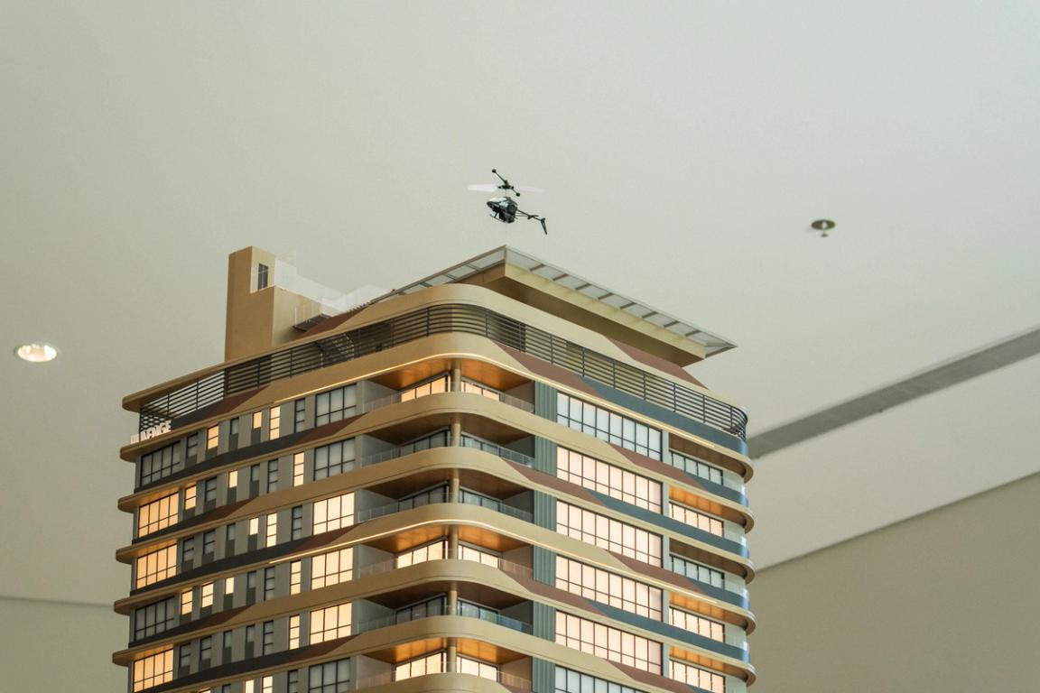 E como diferencial marcante, a maquete conta com a automação de um helicóptero que decola e pousa no heliponto, reforçando o caráter icônico e tecnológico do empreendimento.