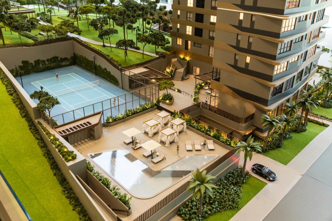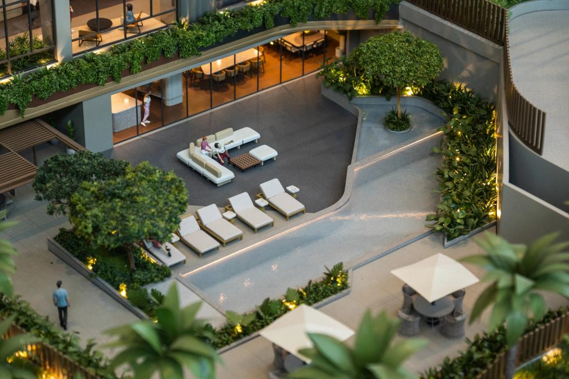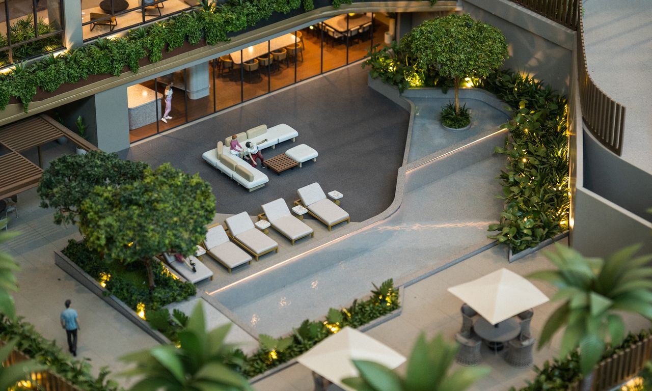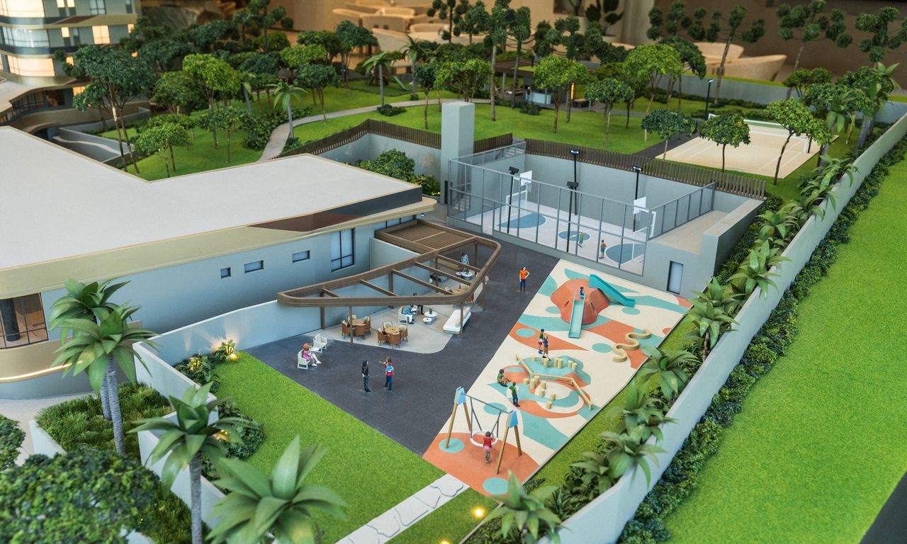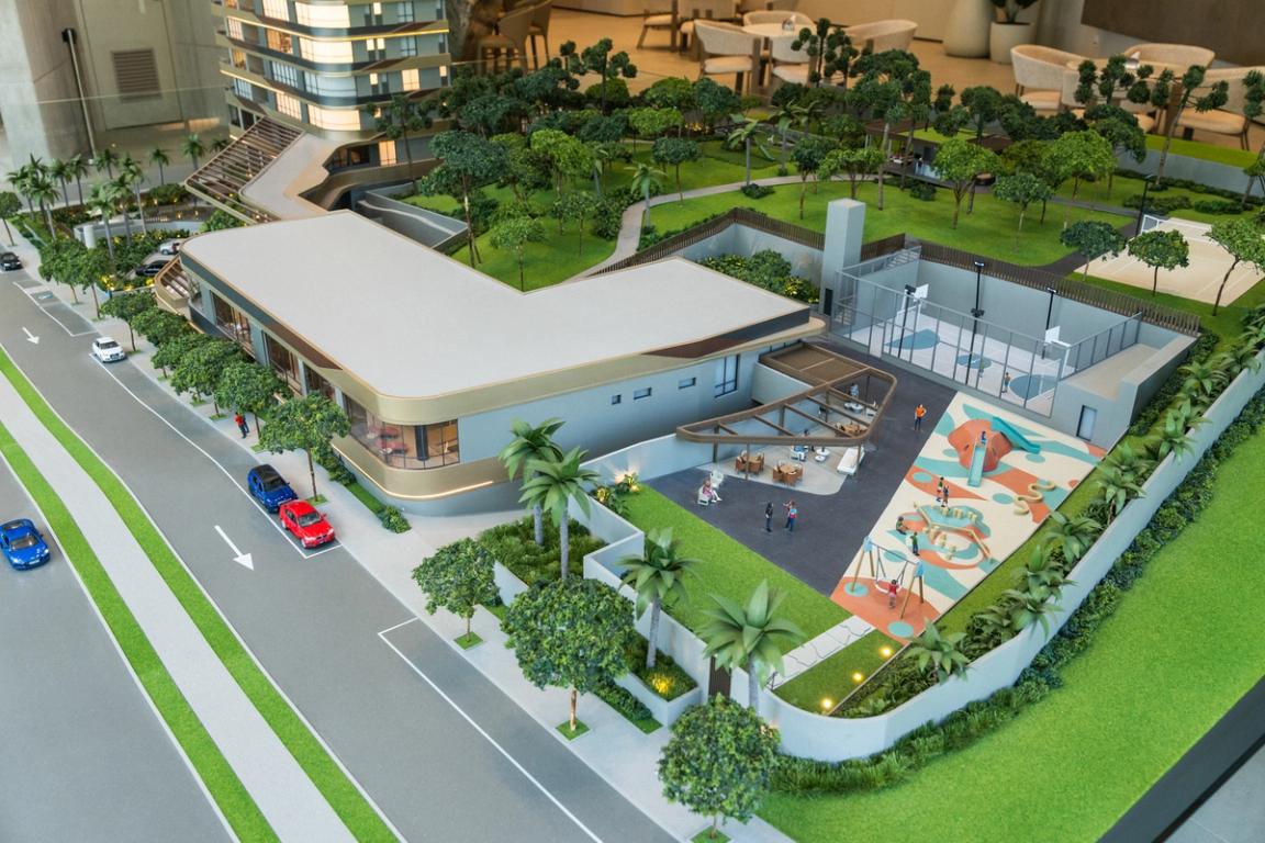 E como diferencial marcante, a maquete conta com a automação de um helicóptero que decola e pousa no heliponto, reforçando o caráter icônico e tecnológico do empreendimento.
