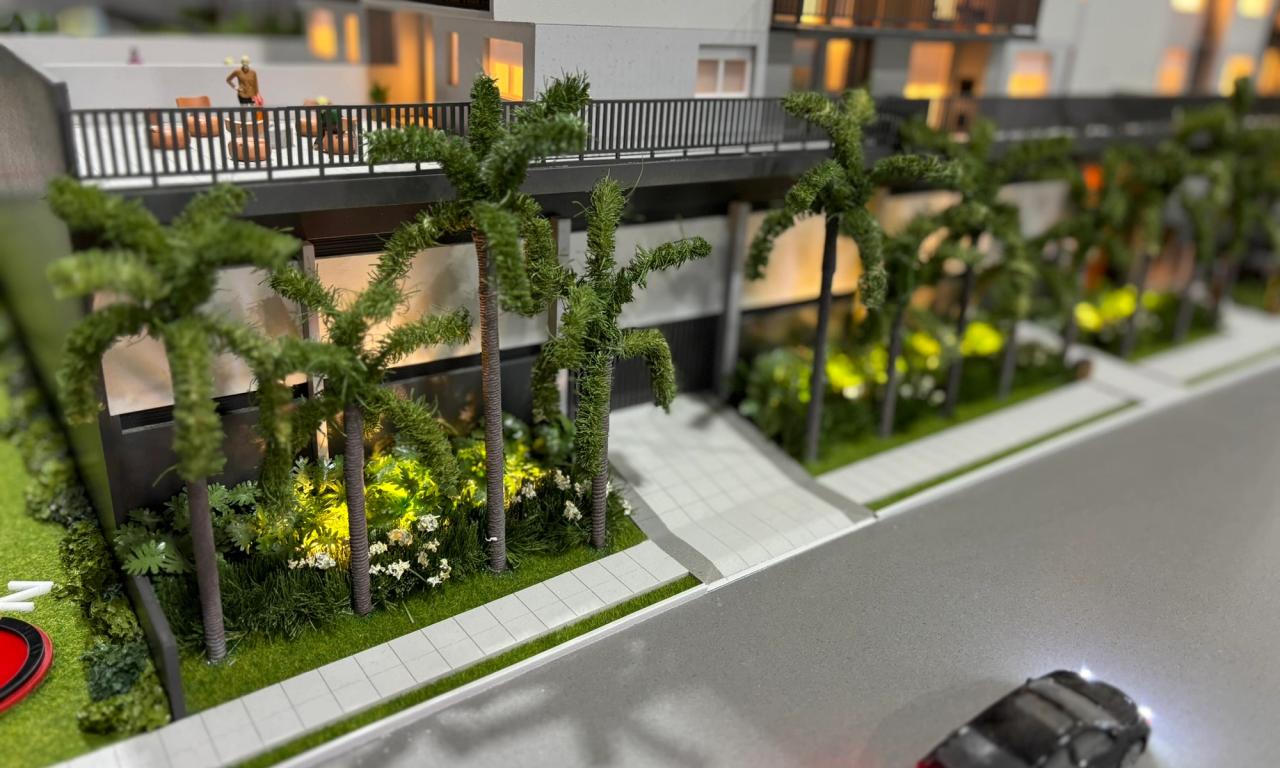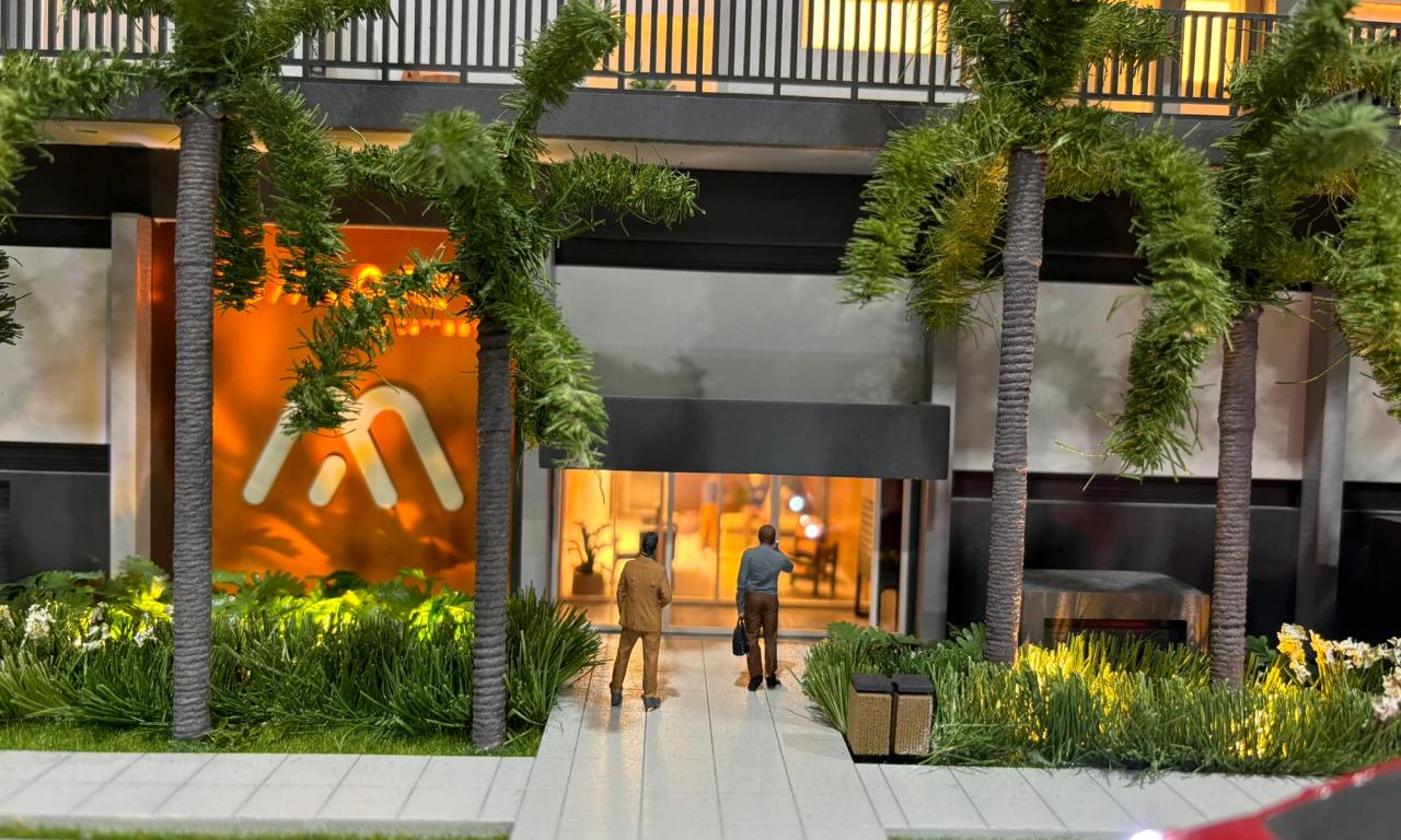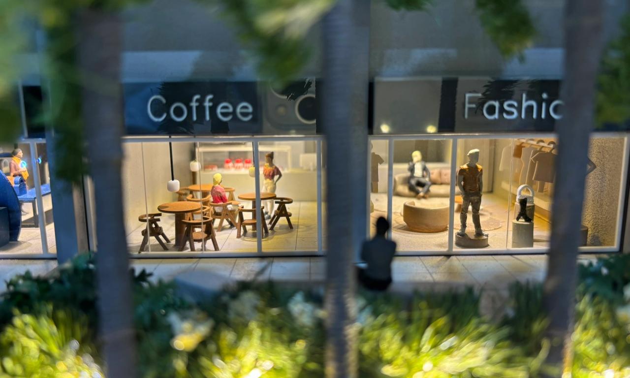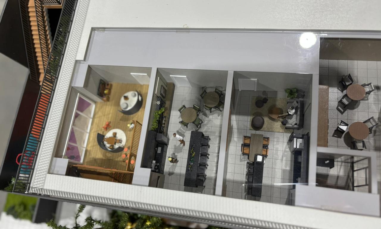 Localizado na praia, o empreendimento Smart Camboriú traz uma proposta jovem, vibrante e descontraída. Nossa maquete foi projetada para destacar esses elementos, evidenciando a riqueza de iluminação da fachada, o logotipo colorido e divertido, além das diversas lojas no térreo, todas mobiliadas para proporcionar uma visão completa do projeto.