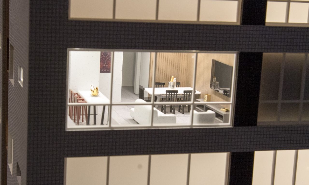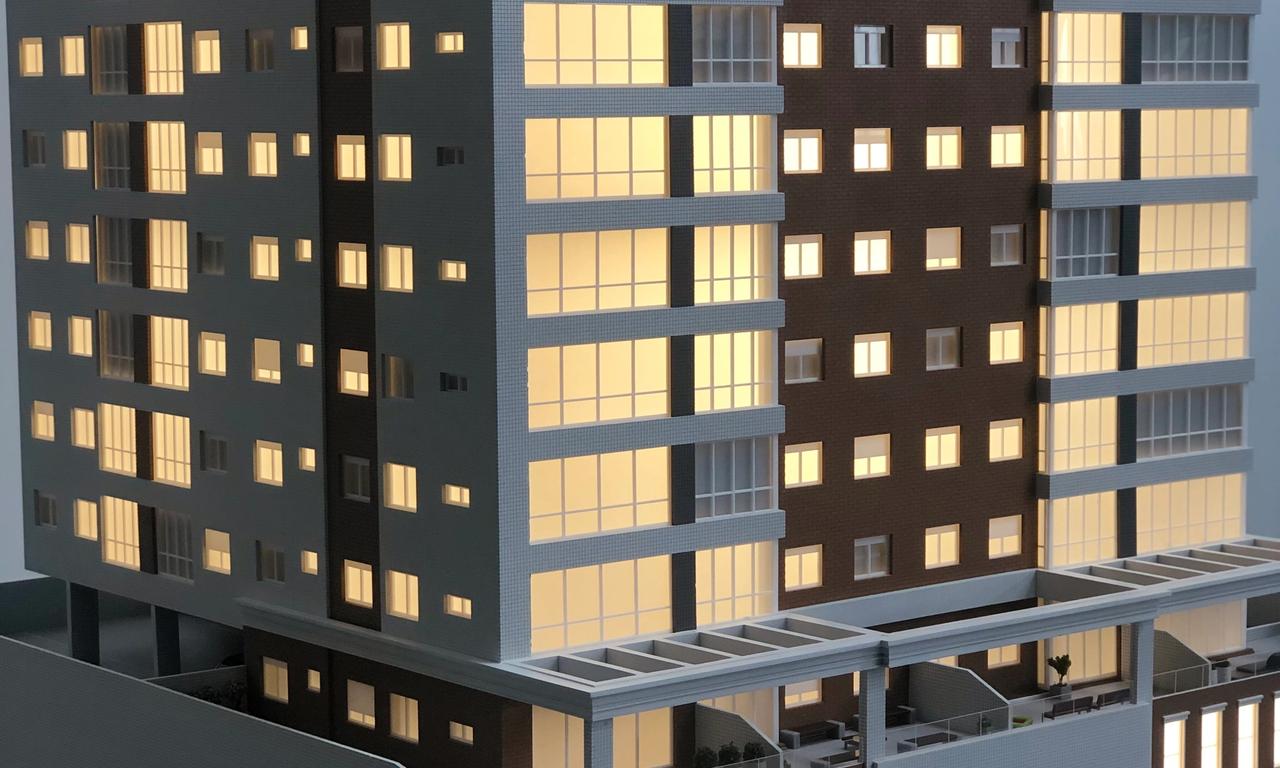 Os apartamentos mobiliados deram um charme especial a representação do empreedimento. A fachada pastilhada sempre gera um desafio de representação, mas ficamos muito satisfeito com o resultado.