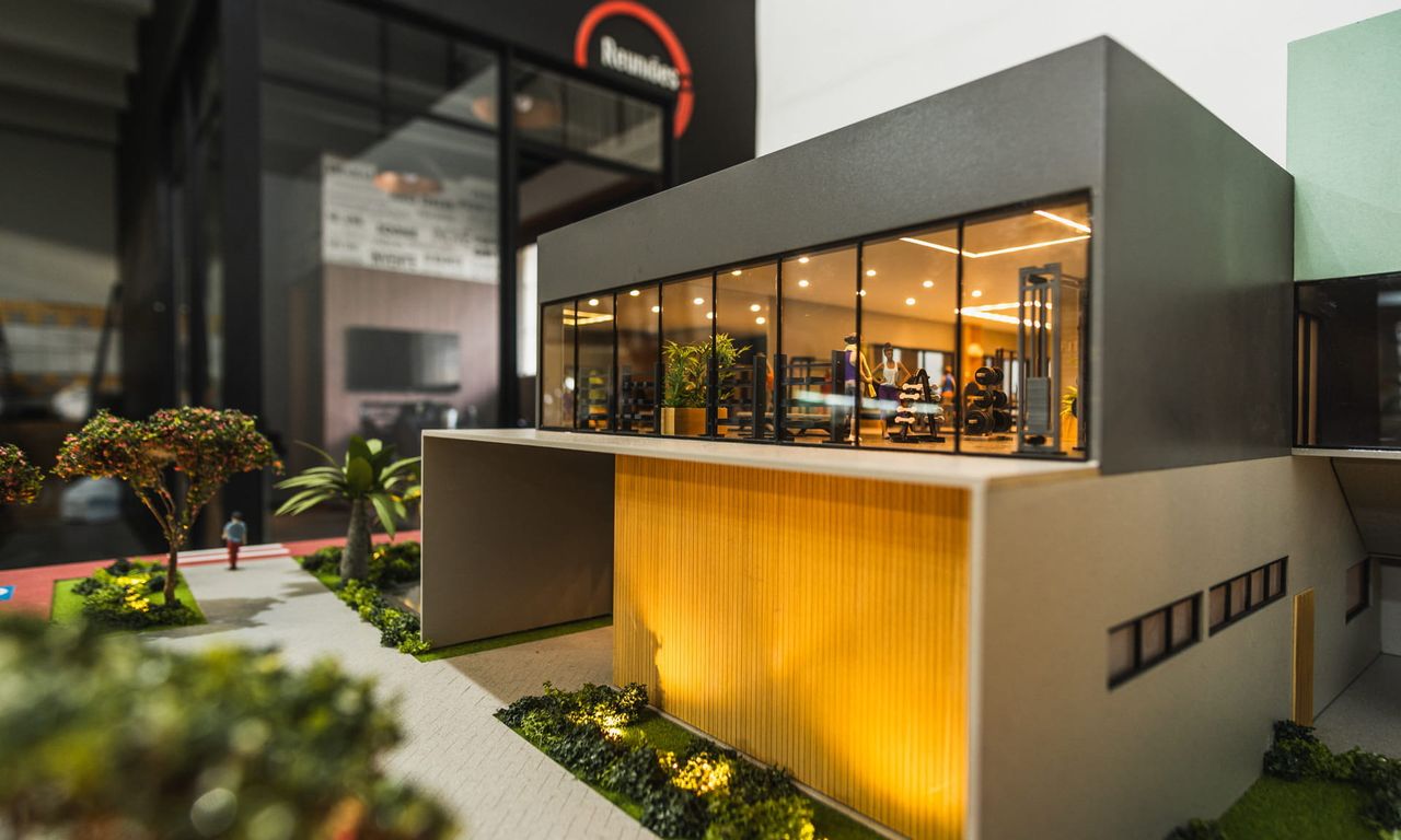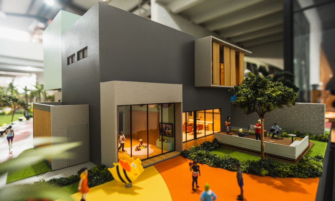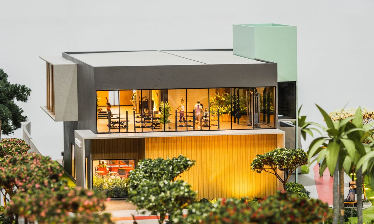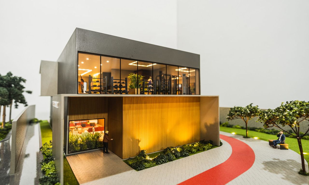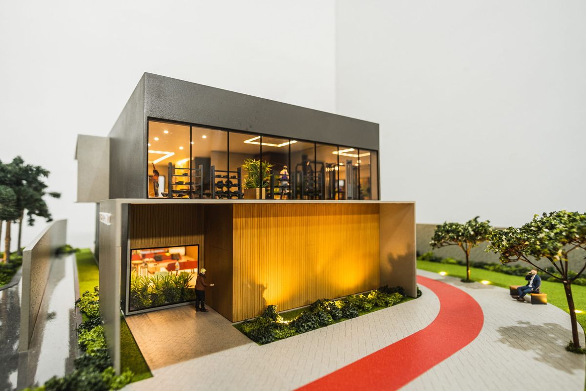 A ampliação do clube é o grande destaque deste empreendimento e a parte da piscina, conseguimos seguir todo o projeto de interiores, com mobiliários e iluminação que deixam o ambiente ainda mais charmoso e sofisticado. Os brinquedos nas piscinas e playgrounds foram detalhados com cuidado, e os mobiliários ao redor da piscina foram escolhidos a dedo para criar um ambiente confortável e relaxante. Para tornar a maquete ainda mais realista, usamos diferentes espécies de palmeiras e materiais como concreto aparente, madeira e texturas variadas.