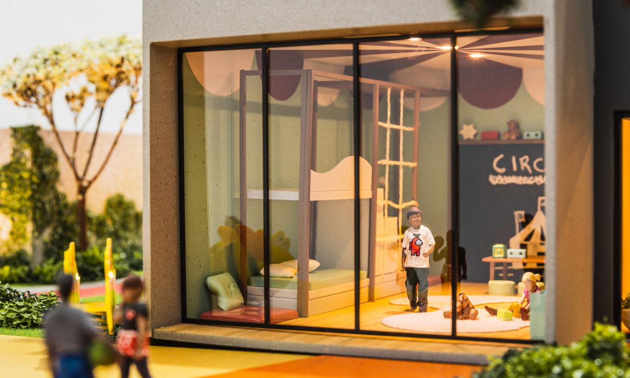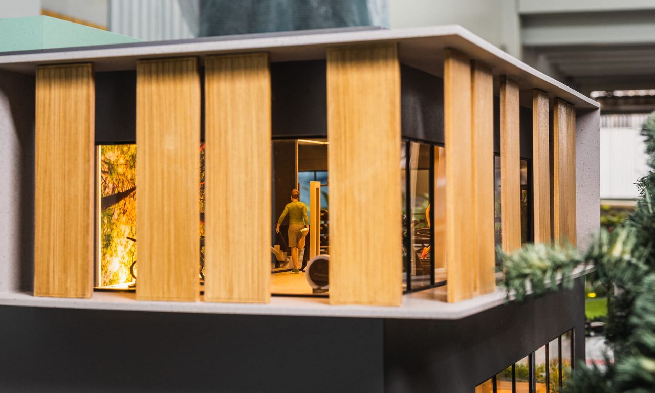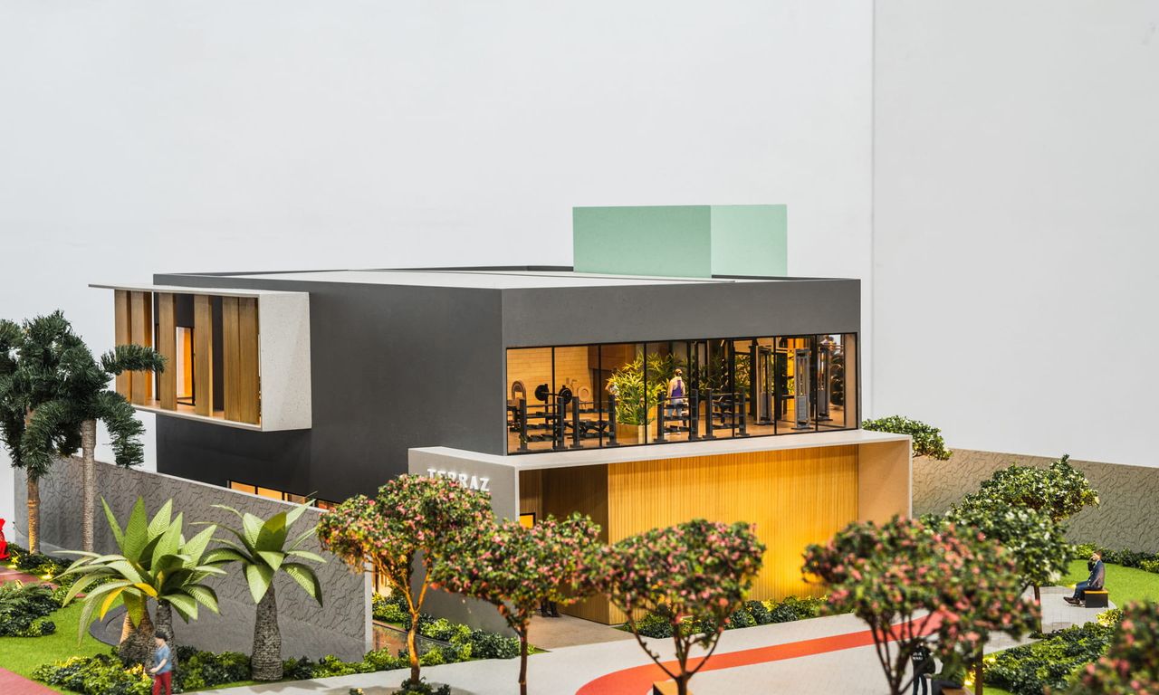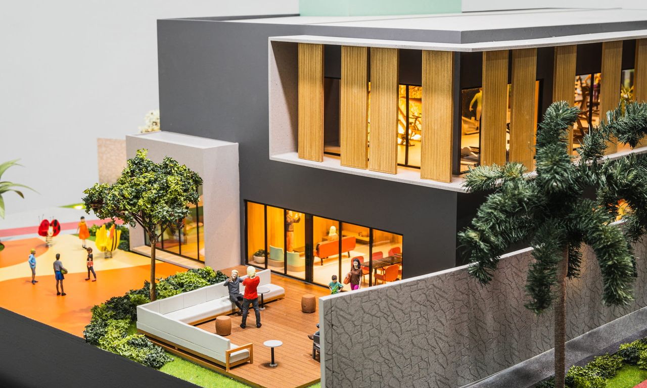 A ampliação do clube é o grande destaque deste empreendimento e a parte da piscina, conseguimos seguir todo o projeto de interiores, com mobiliários e iluminação que deixam o ambiente ainda mais charmoso e sofisticado. Os brinquedos nas piscinas e playgrounds foram detalhados com cuidado, e os mobiliários ao redor da piscina foram escolhidos a dedo para criar um ambiente confortável e relaxante. Para tornar a maquete ainda mais realista, usamos diferentes espécies de palmeiras e materiais como concreto aparente, madeira e texturas variadas.