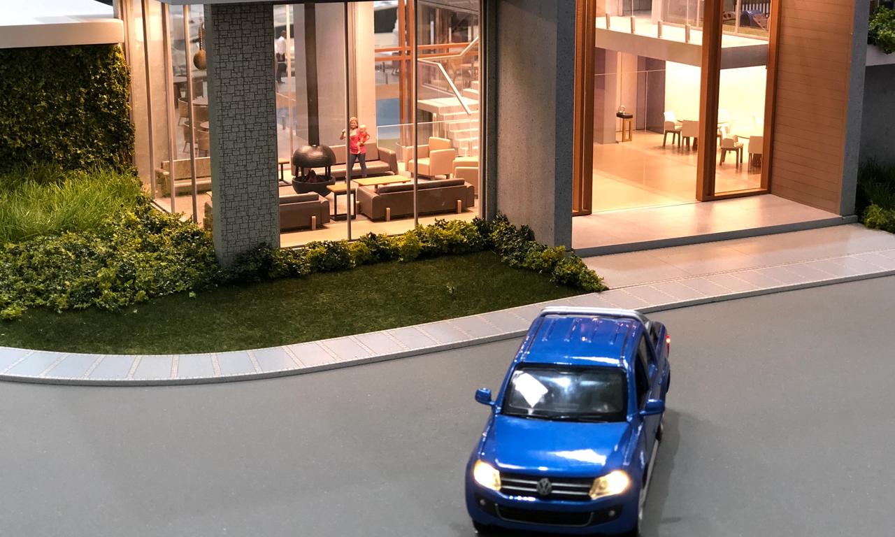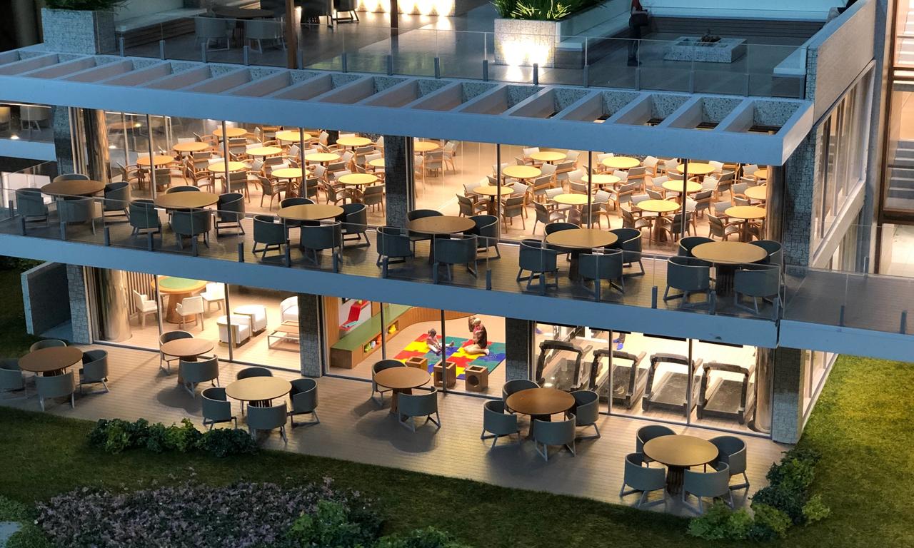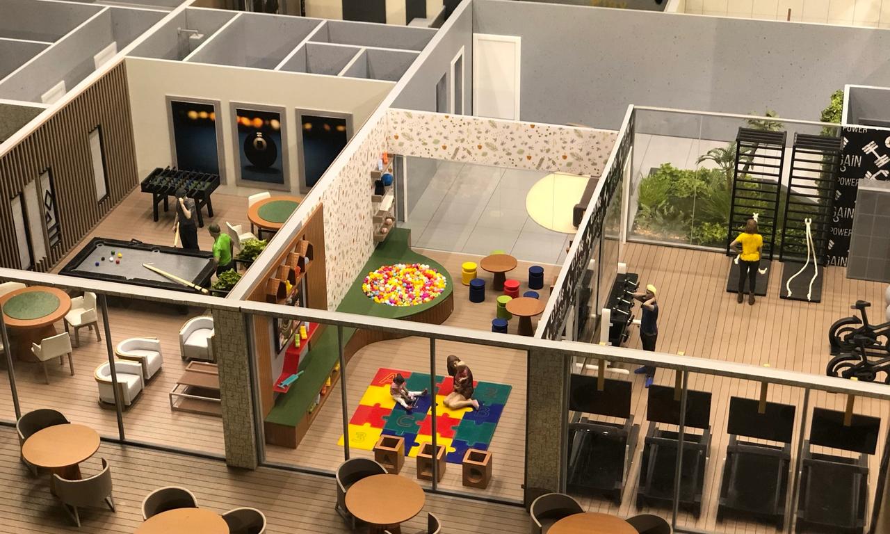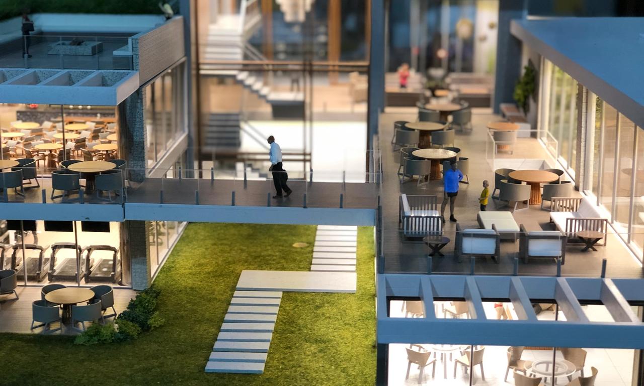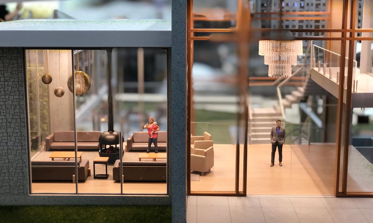 O requinte e riqueza deste projeto pediam uma ampliação da área do clube. 3 pavimentos com 2 pontos de automação permitem mostrar todos os ambientes internos e mobiliados. O projeto ajudou muito, mas sem sombra de dúvidas o Time da 360º foi a fundo em todos os requintes e detalhes de mobiliários, iluminação e humanização, deixando a maquete um show a parte na sala de vendas.