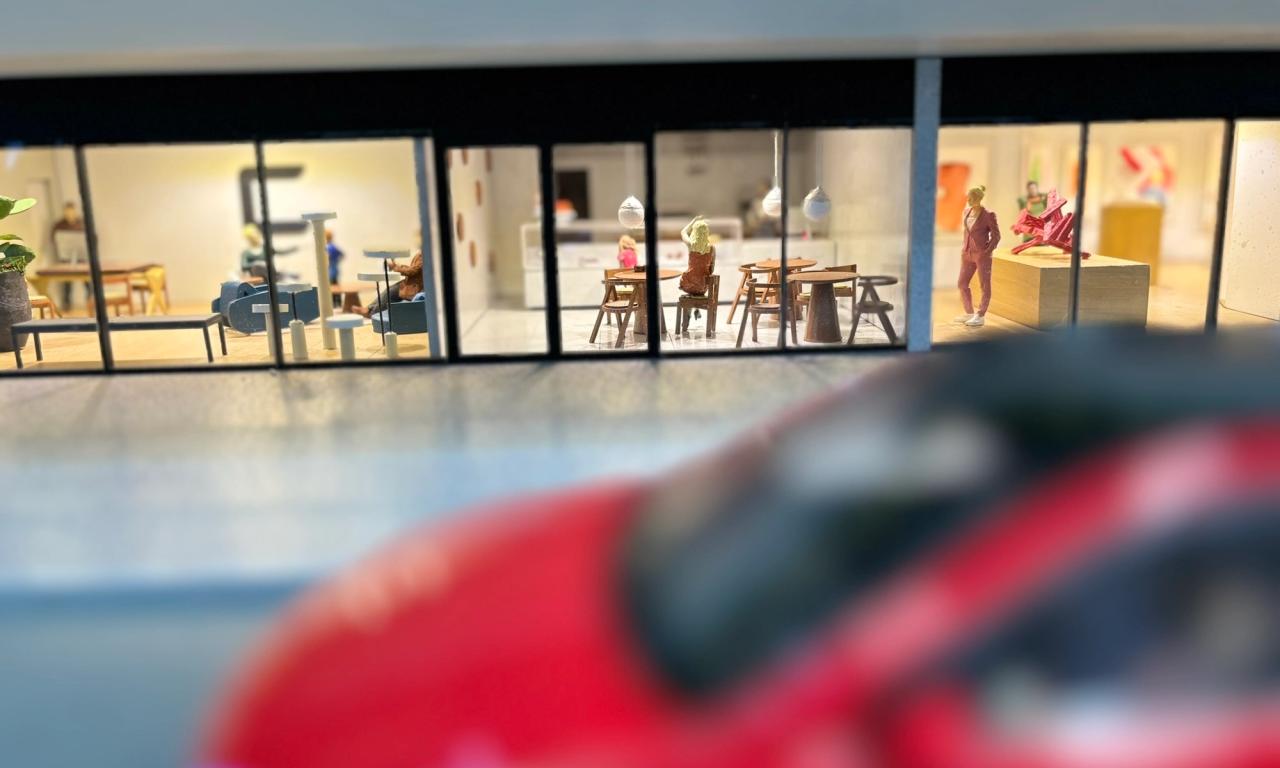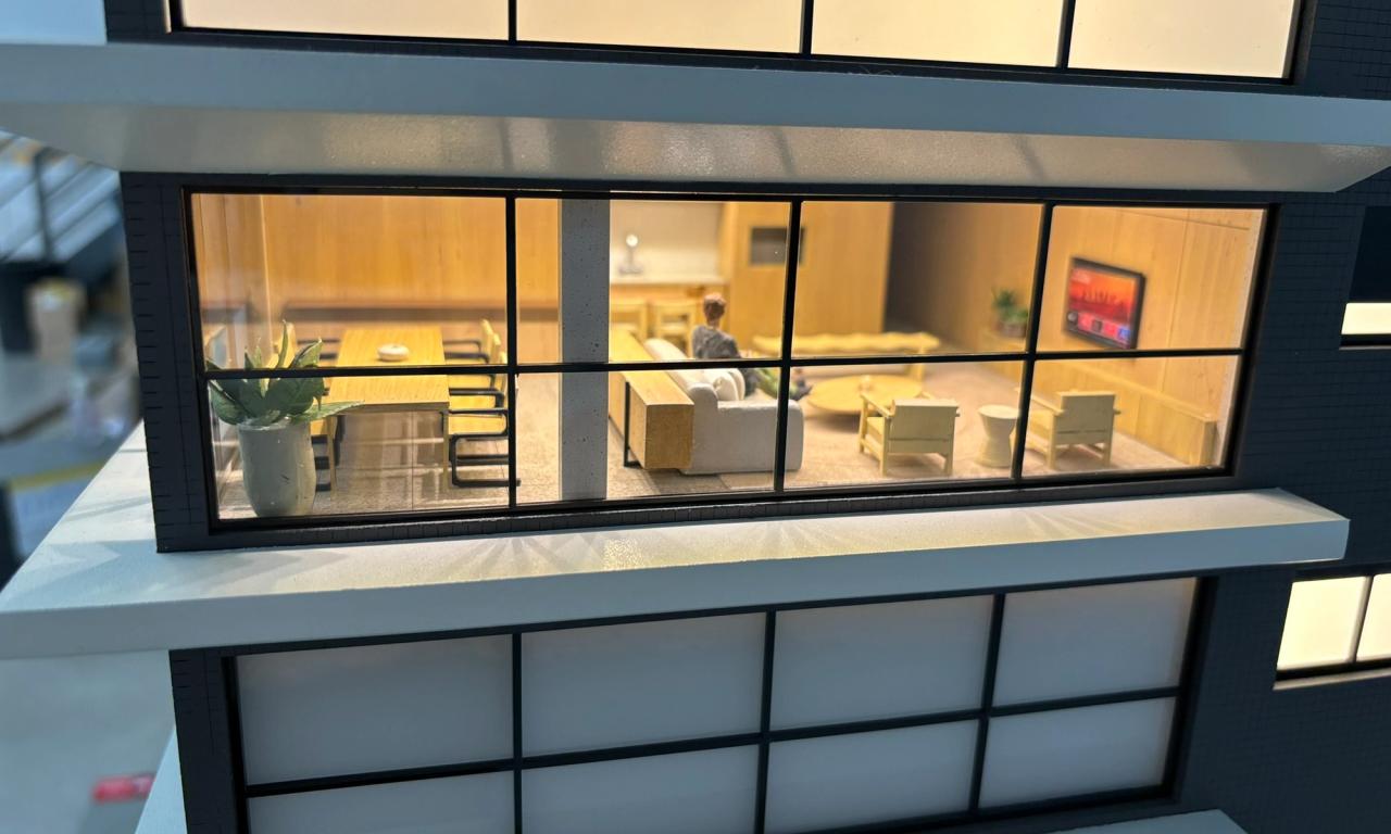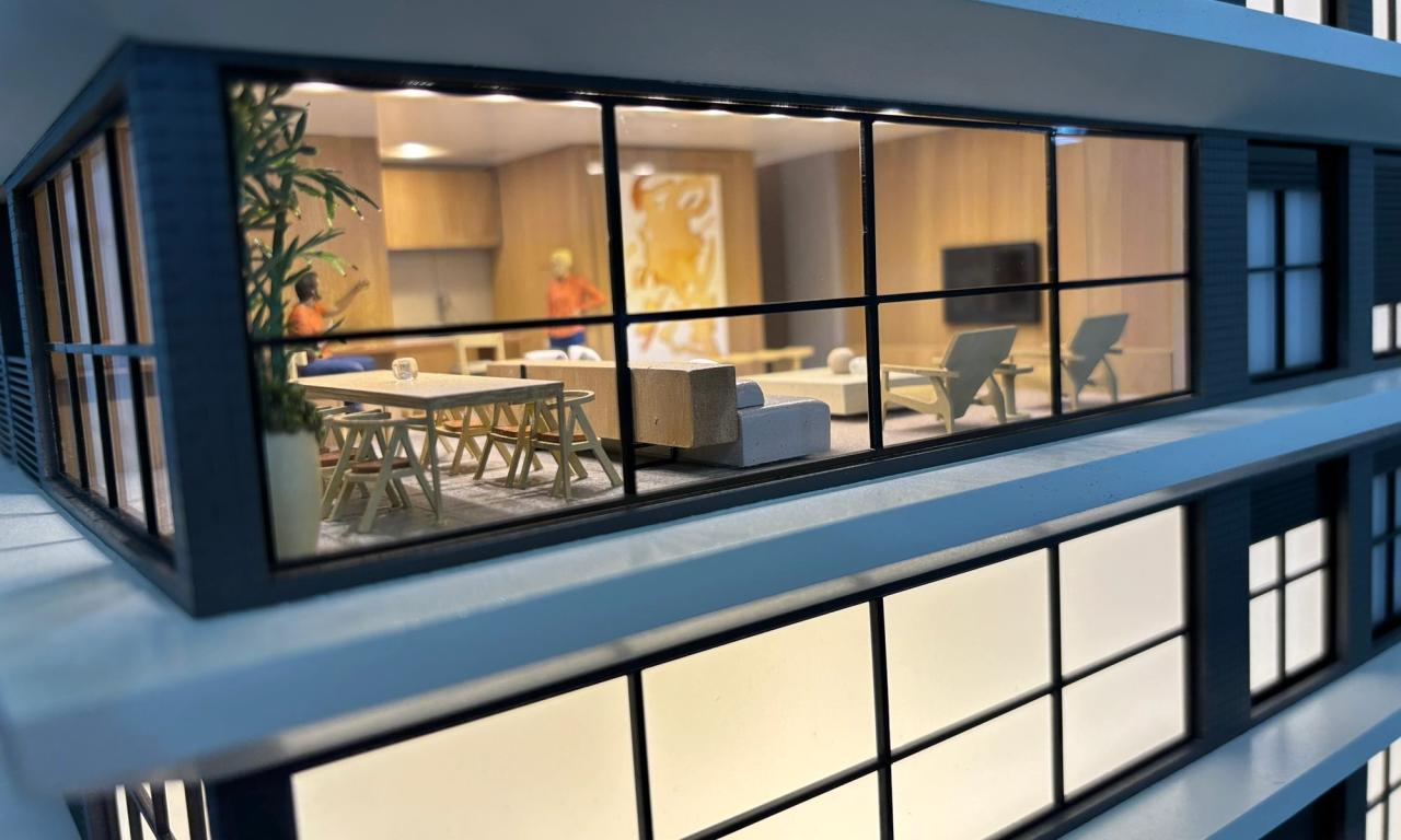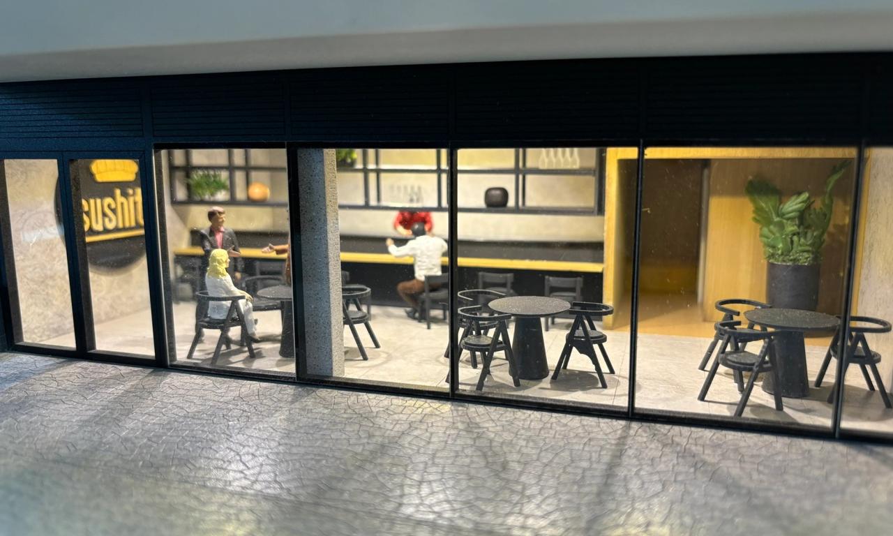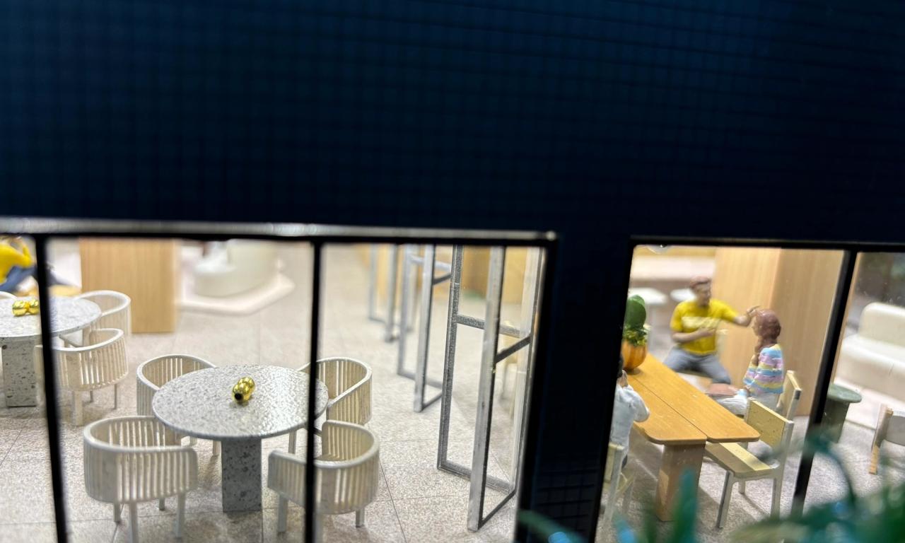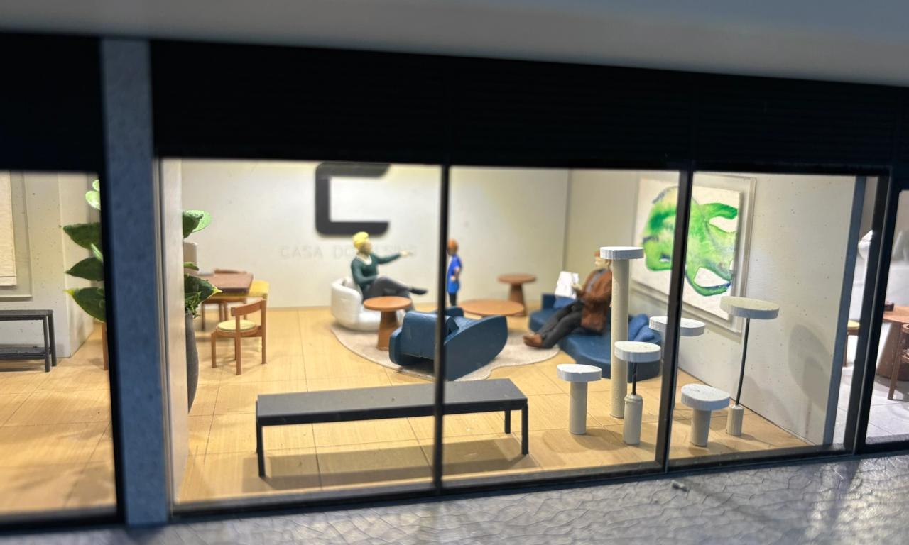 - Figuras Humanas e Obras de Arte: As figuras humanas, cuidadosamente criadas para cada ambiente, dão vida à maquete. Outro detalhe que se destaca são as obras de arte, com quadros desenvolvidos especialmente para o projeto.